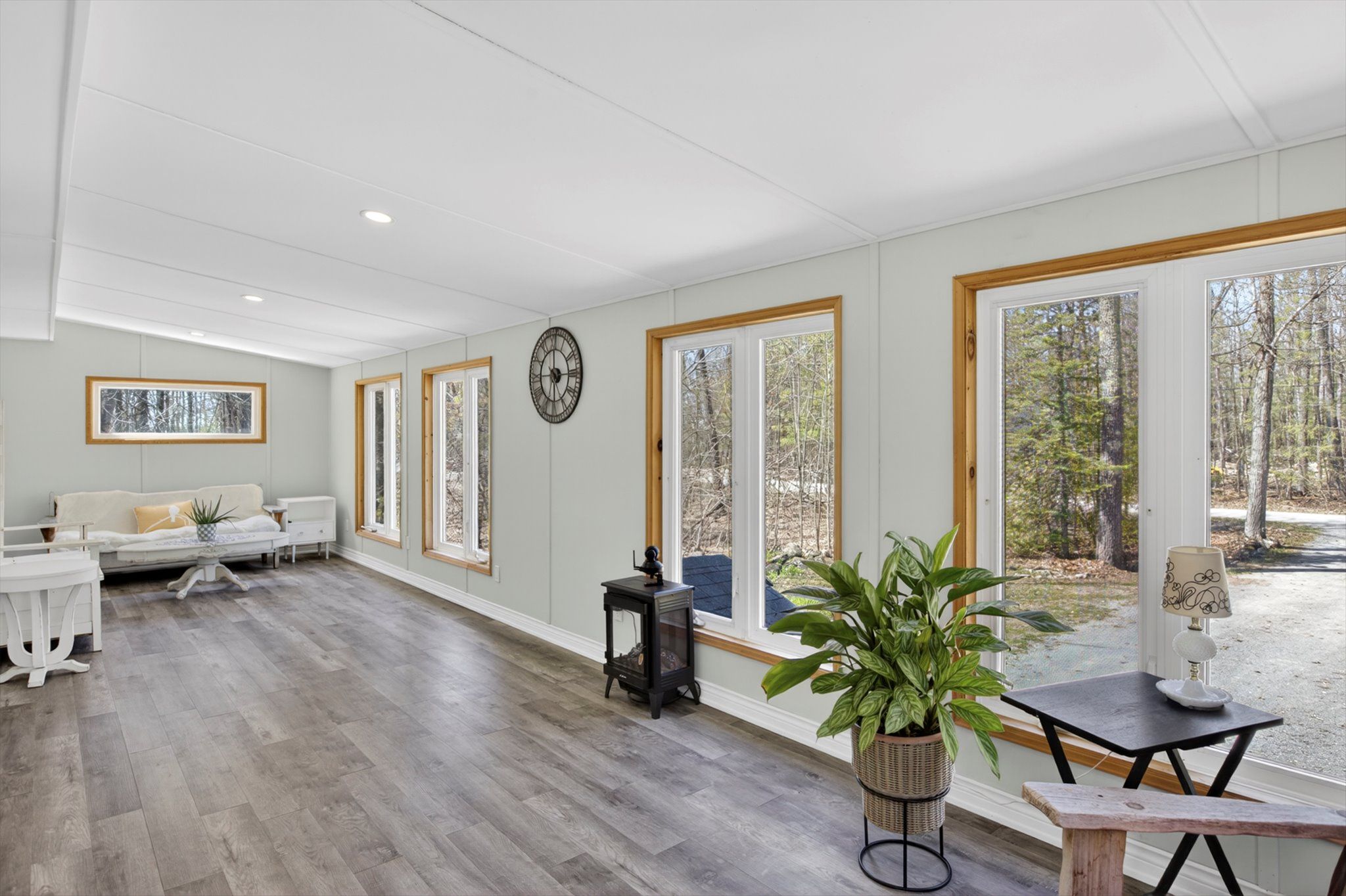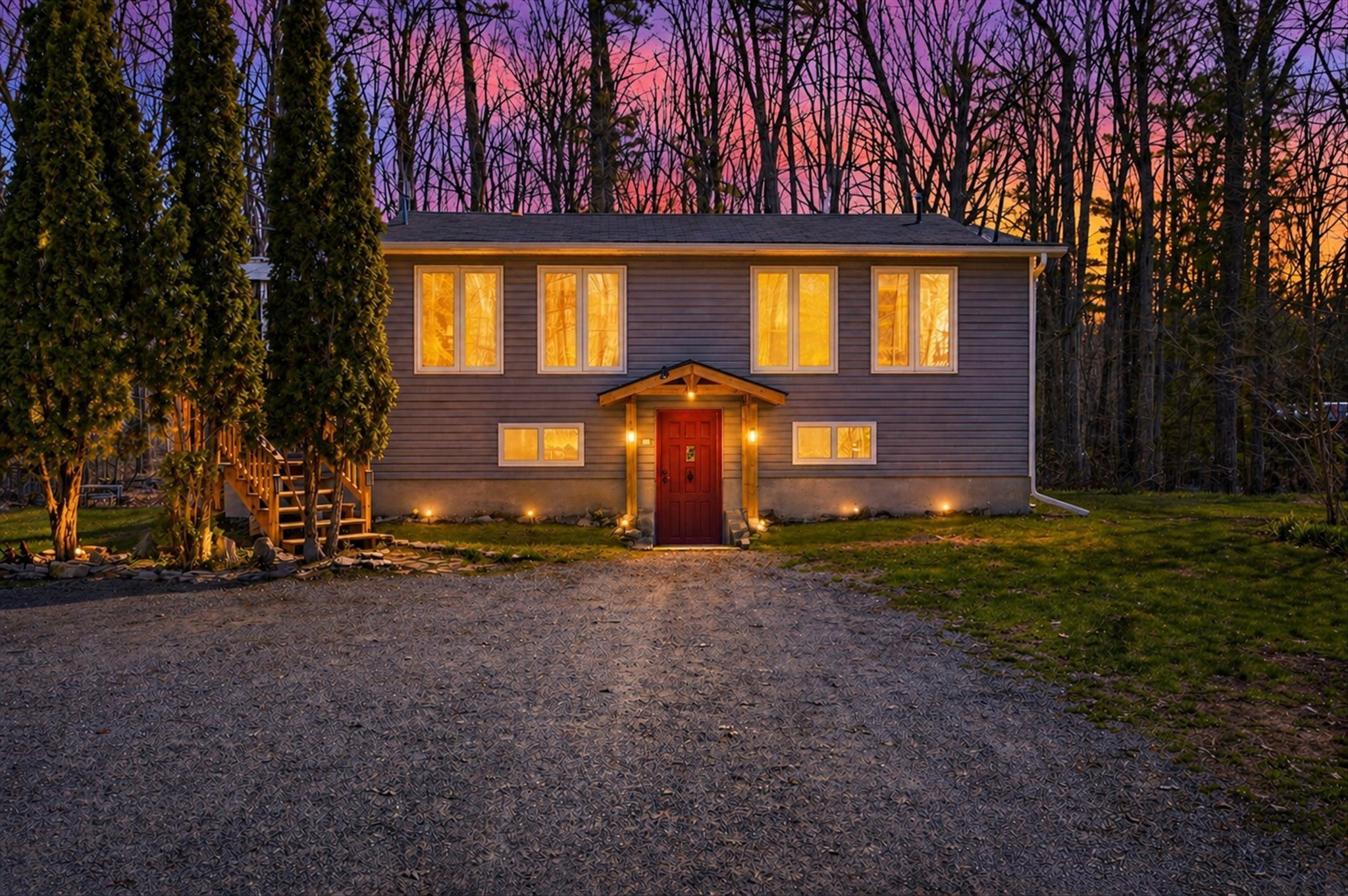 Turnkey country living in a sought-after waterfront community! Beautifully renovated 2+1 bedroom, 2 bath raised bungalow set on a private . 97-acre lot at the end of a quiet cul-de-sac featuring deeded access to pigeon lake via a path from the backyard! Completely updated inside and out, this home offers a bright open-concept main floor with vaulted ceilings, exposed beams, a modern kitchen, 2 bedrooms, and a 3-piece bath. Walk out from the living room to a spacious, insulated 3-season sunroom and large deck overlooking the peaceful, treed setting. The finished lower level includes a generous rec room, an additional bedroom, 4-piece bath, laundry, and walkout access to a covered, enclosed porch with excellent storage space. Detached garage, mature level lot with a fire pit and endless potential to create the outdoor oasis you dream of! Space to add a dock at the water's edge, inviting you to make the most of your summer boating on the trent-severn waterway! Nothing left to do but move in and enjoy. Located just minutes to lakehurst, buckhorn and 30 minutes to peterborough - ideal for year-round living, air bnb or your very own recreational retreat.