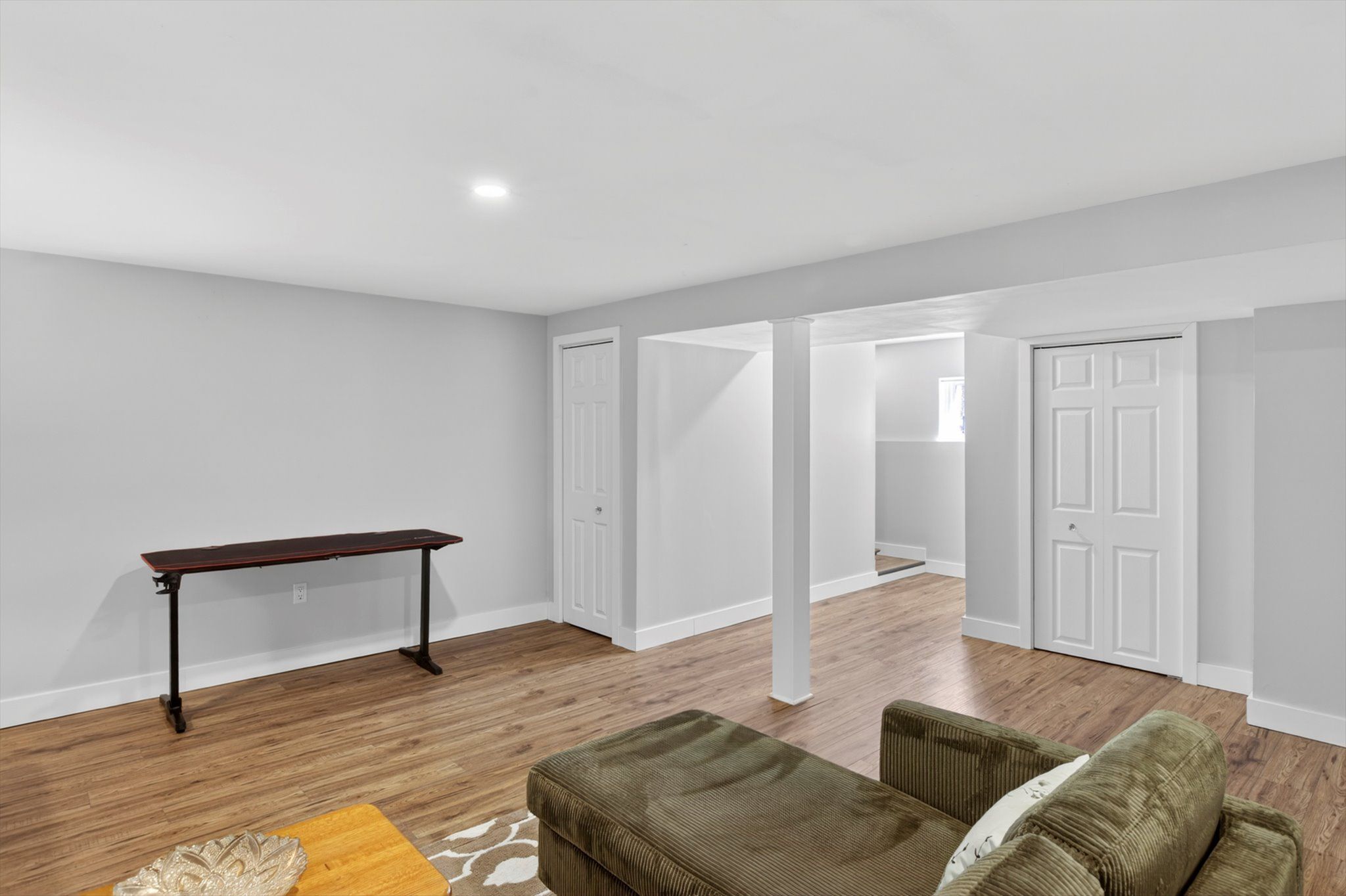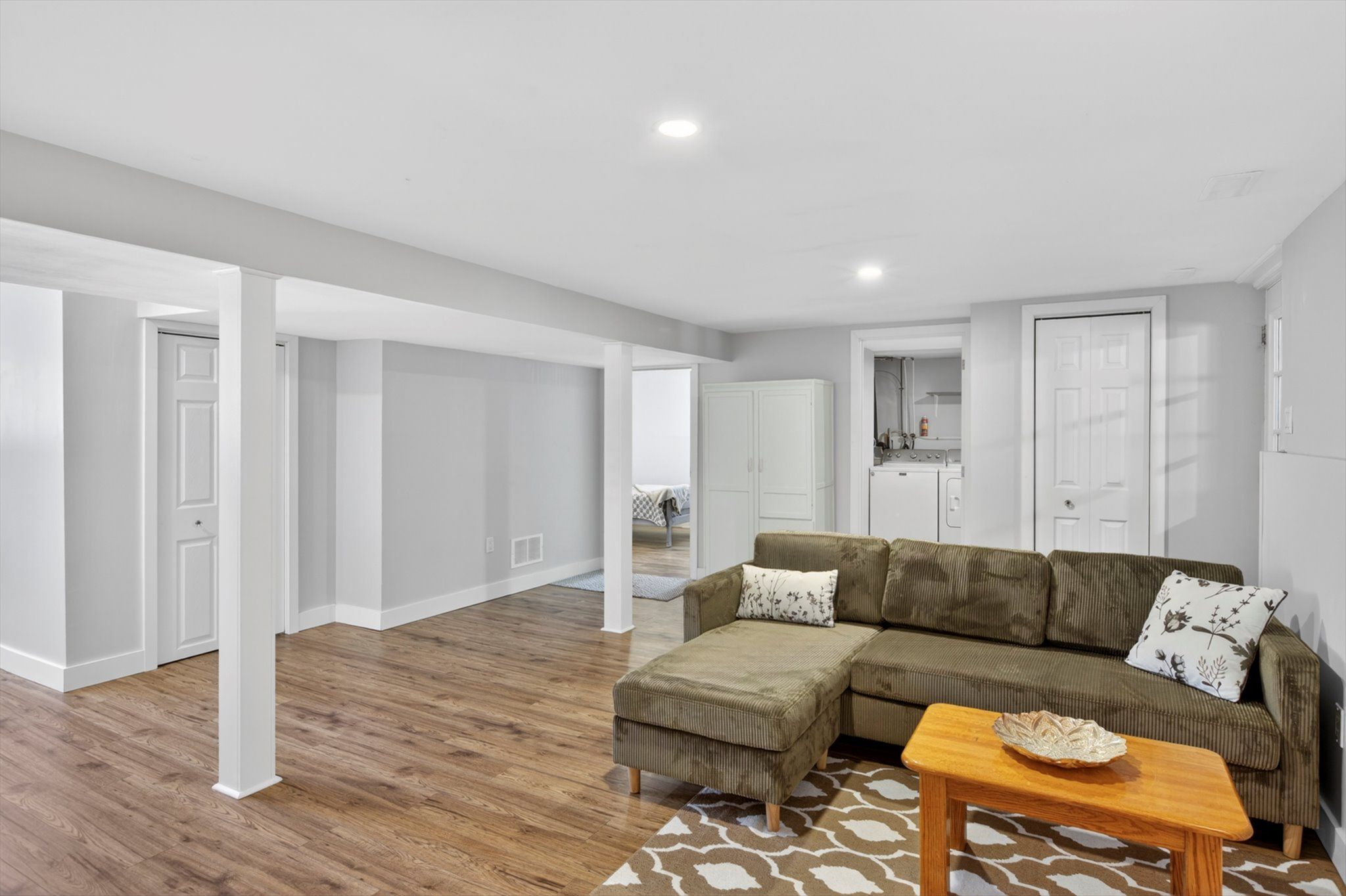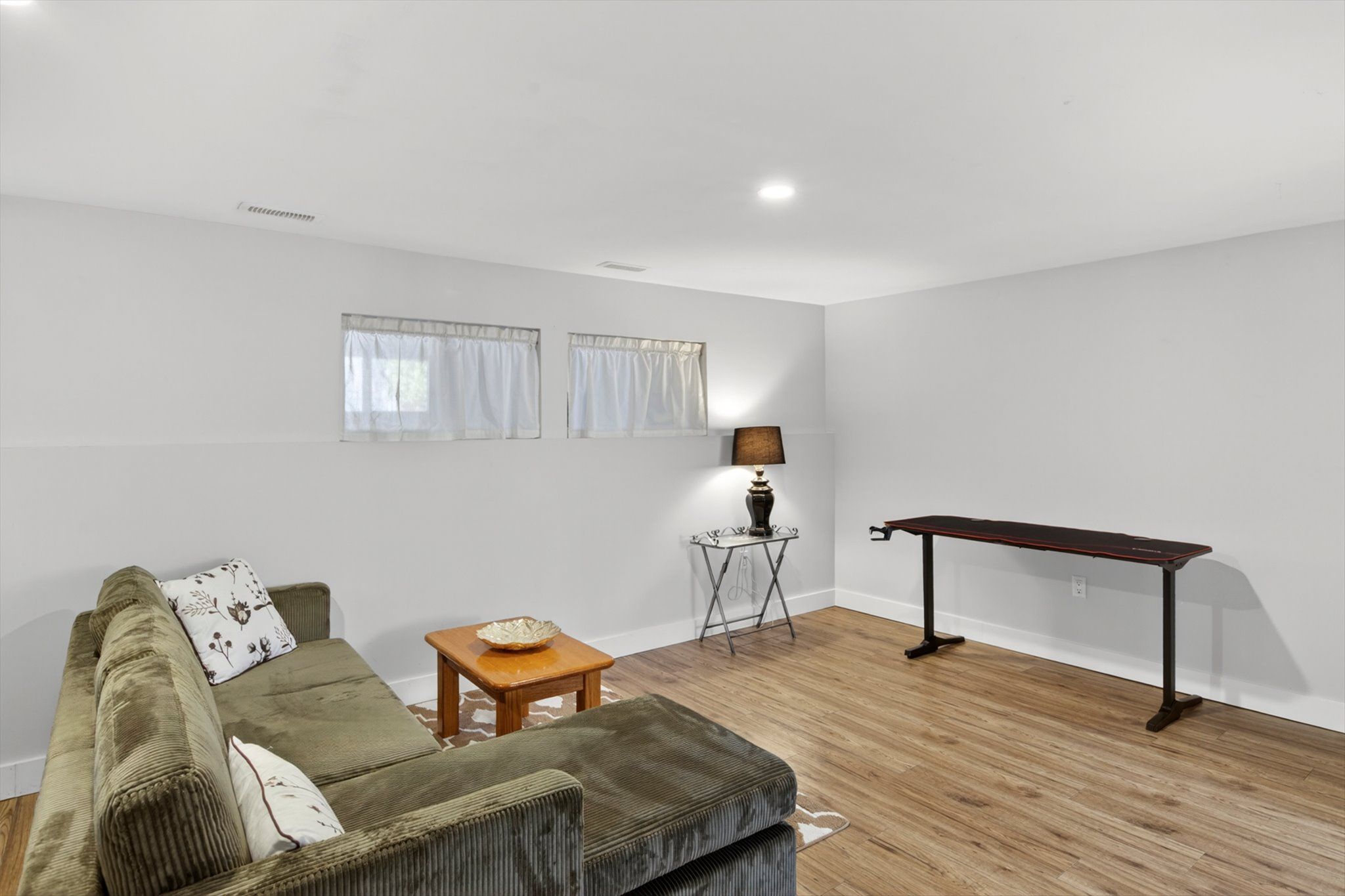 • Finished lower level includes a rec room, extra bedroom, and laundry space.