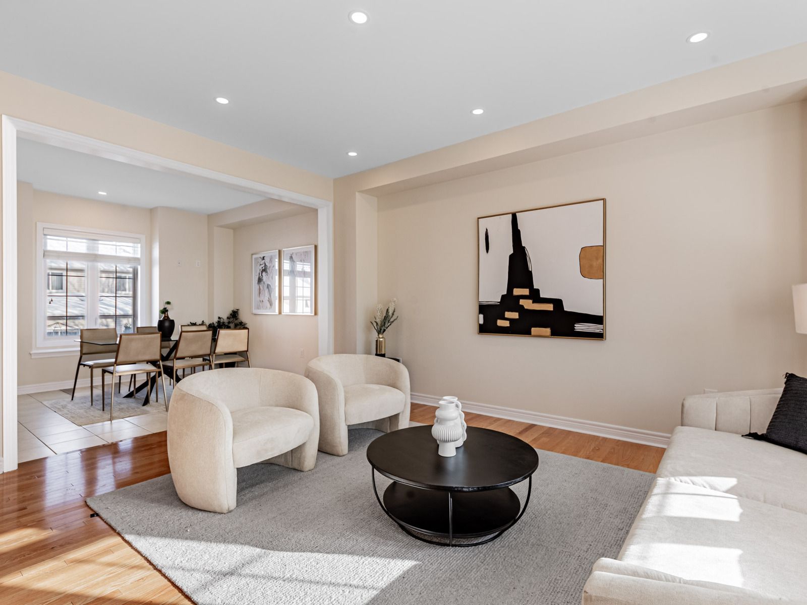 Beautifully maintained and recently upgraded end-unit three-storey townhouse on a rare pie-shaped lot, offering both a backyard and side yard-something most new three-storey townhomes typically don't have. The ground level features a versatile den or home office, a convenient 2-piece washroom, indoor access to the garage (a big plus during winter months), and walkout access to the backyard. The main level offers a bright, open-concept layout with a spacious family room finished with hardwood floors, new pot lights, and a sunny south-facing exposure that fills the home with natural light. The kitchen and dining area are combined and feature stainless steel appliances, quartz countertops, an undermount sink, ample cabinetry, and a large window-ideal for everyday living and entertaining. A second 2-piece washroom completes this level. The third floor includes three well-sized bedrooms, including a spacious primary bedroom with large south-facing windows, a generous closet, and a private 4-piece ensuite, along with a shared 4-piece washroom for the remaining bedrooms. Freshly painted throughout, this end-unit home feels more like a semi and is flooded with natural light on all levels. Located just steps to yonge street, transit, shopping, grocery stores, restaurants, oakridges moraine, parks, and scenic trails, and close to top-rated schools, hillcrest mall, viva transit, go station, and quick access to hwy 407. A rare opportunity to own a move-in-ready townhome with outdoor space in one of richmond hill's most convenient and scenic neighbourhoods.