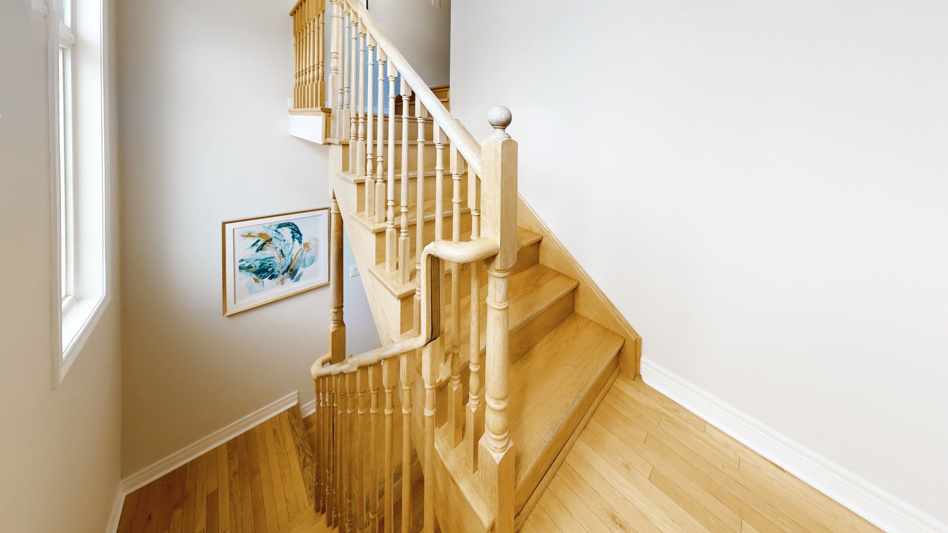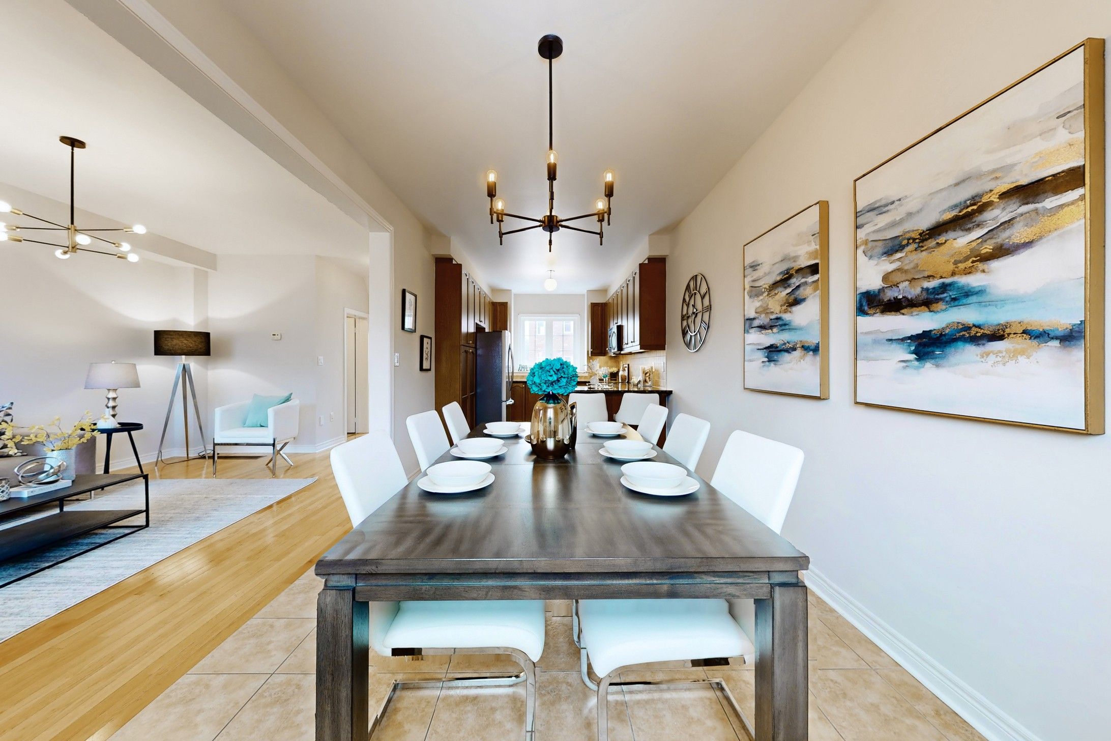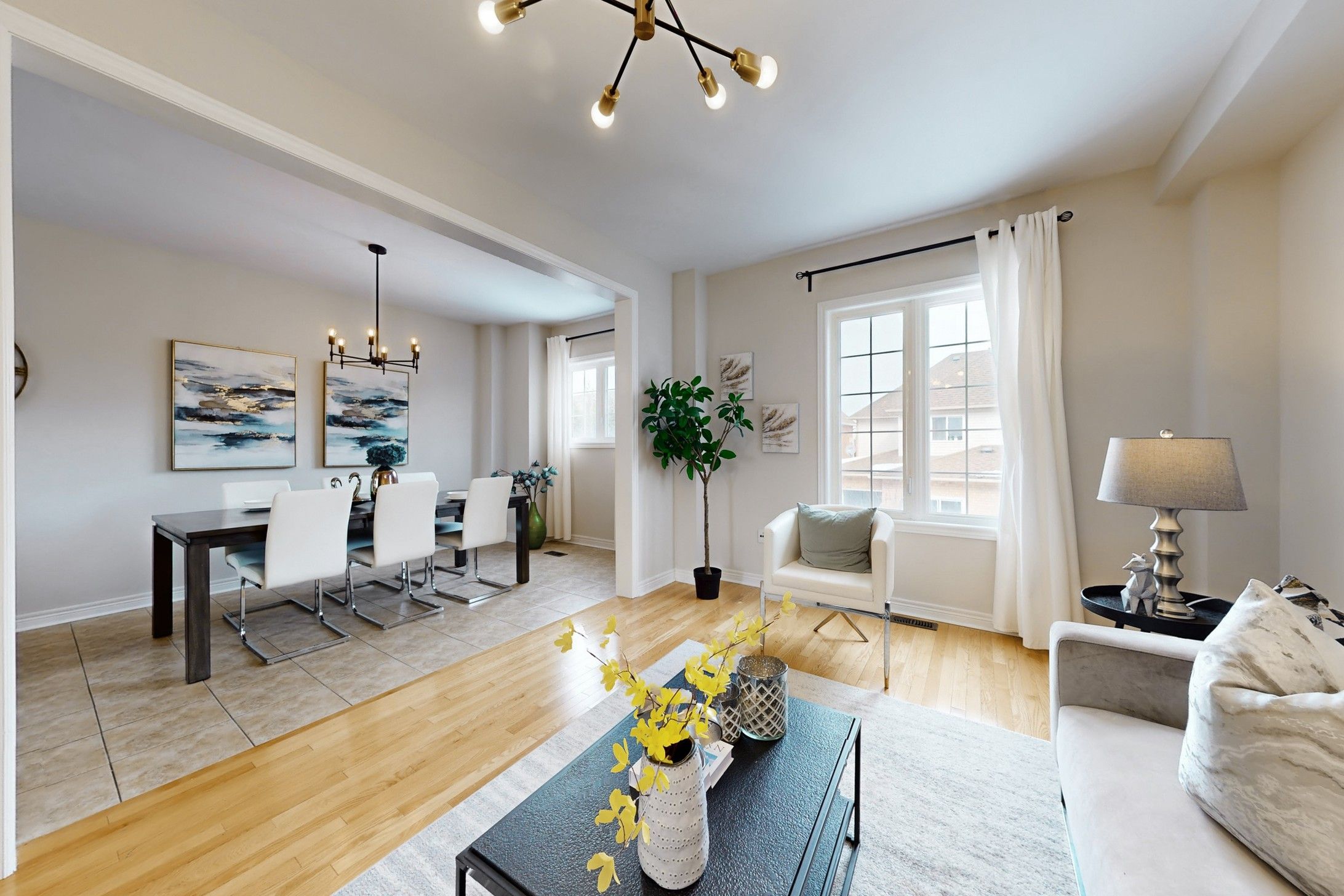 • Open concept living area with 9 ft ceilings and hardwood flooring.