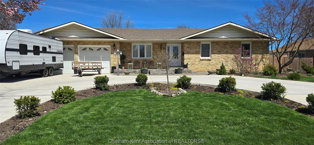 Welcome to this beautifully maintained solid brick rancher built in 1985, offering space, comfort, and peace of mind in a desirable chatham neighbourhood. This spacious home features 5 bedrooms and 3 full bathrooms, making it ideal for growing families or multi-generational living. The main level showcases updated flooring throughout, along with a bright, functional layout. The kitchen is finished with granite countertops, complemented by matching granite surfaces in the main level bathrooms. Enjoy the convenience of main floor laundry and custom window treatments that add both style and privacy. The fully finished lower level provides additional living space and was professionally waterproofed in 2021, offering added value and confidence for years to come. Step outside to your private backyard oasis featuring an inground pool with safety cover (2021) — perfect for summer entertaining and relaxing with family and friends. Additional updates & features: newer furnace and central a/c newer windows solid brick construction ample living space for family enjoyment concrete driveway 2023 this move-in ready ranch combines quality construction, thoughtful updates, and outdoor enjoyment — all in one exceptional property.
