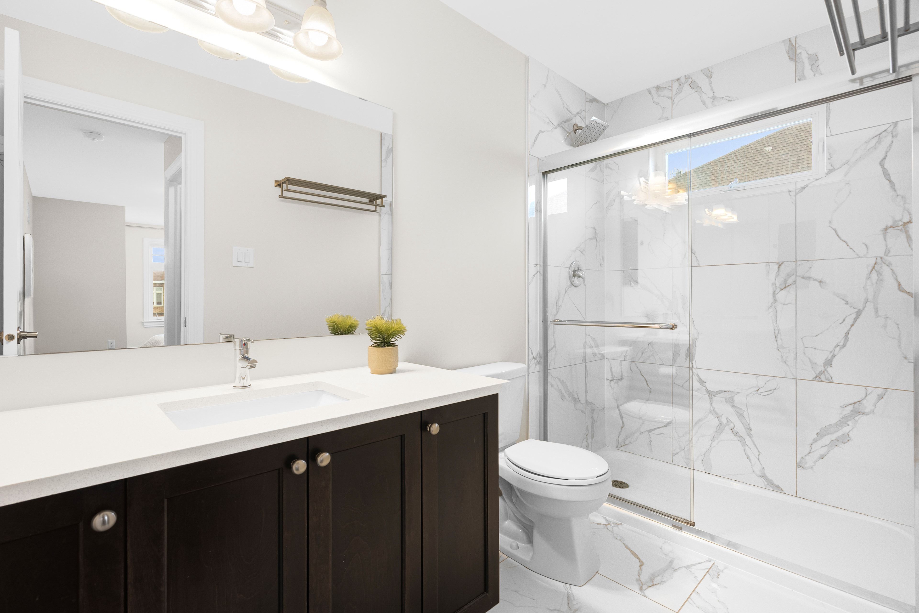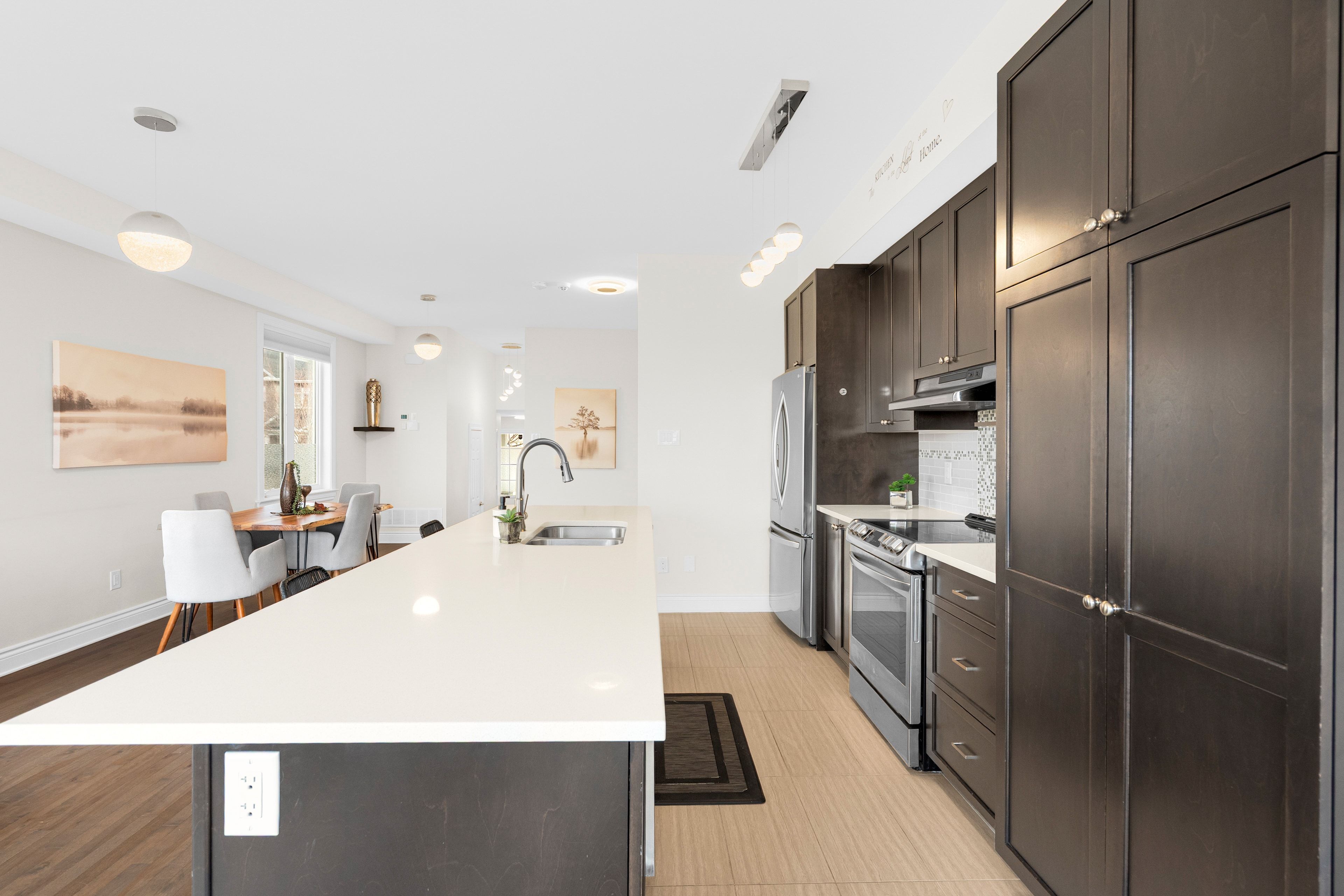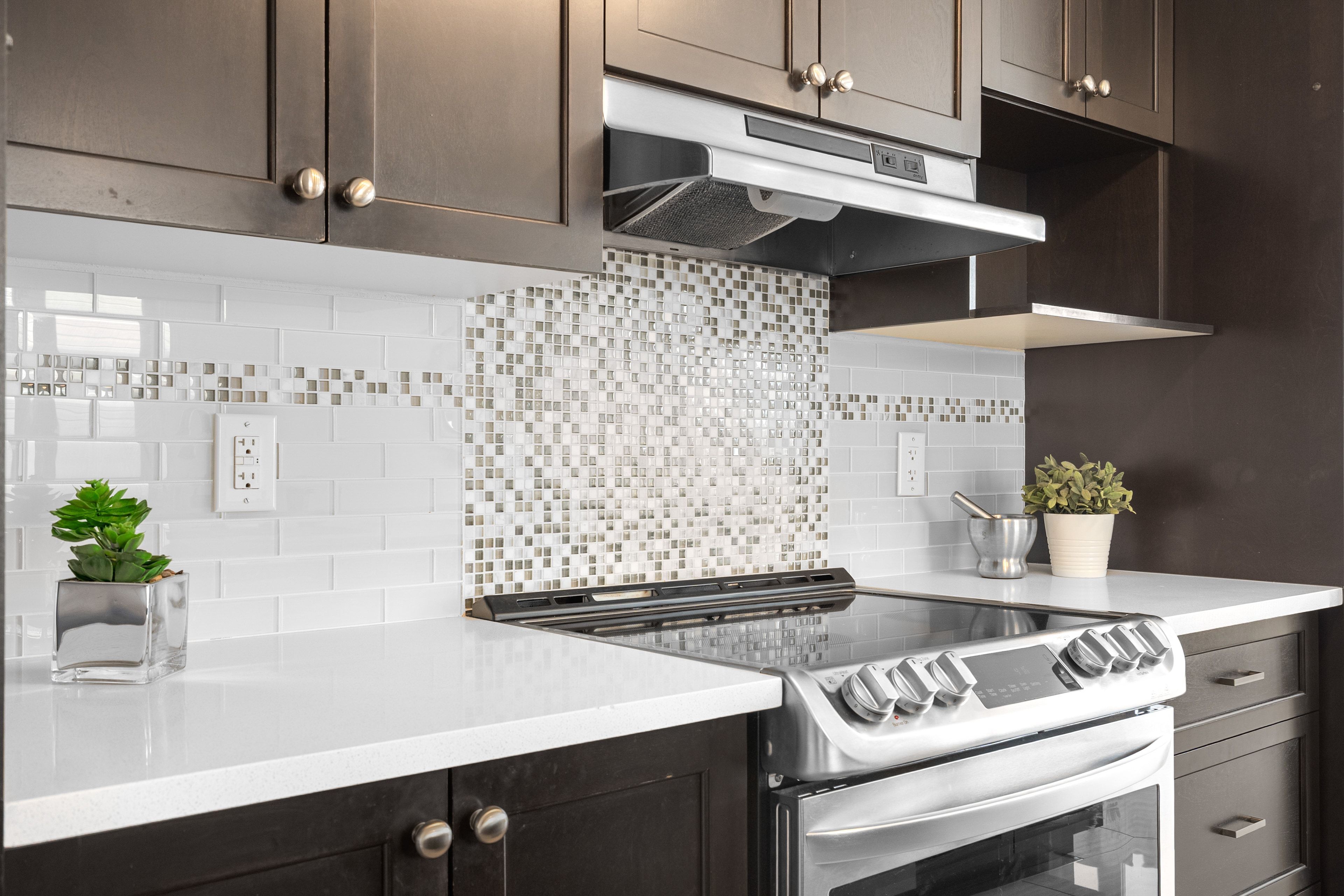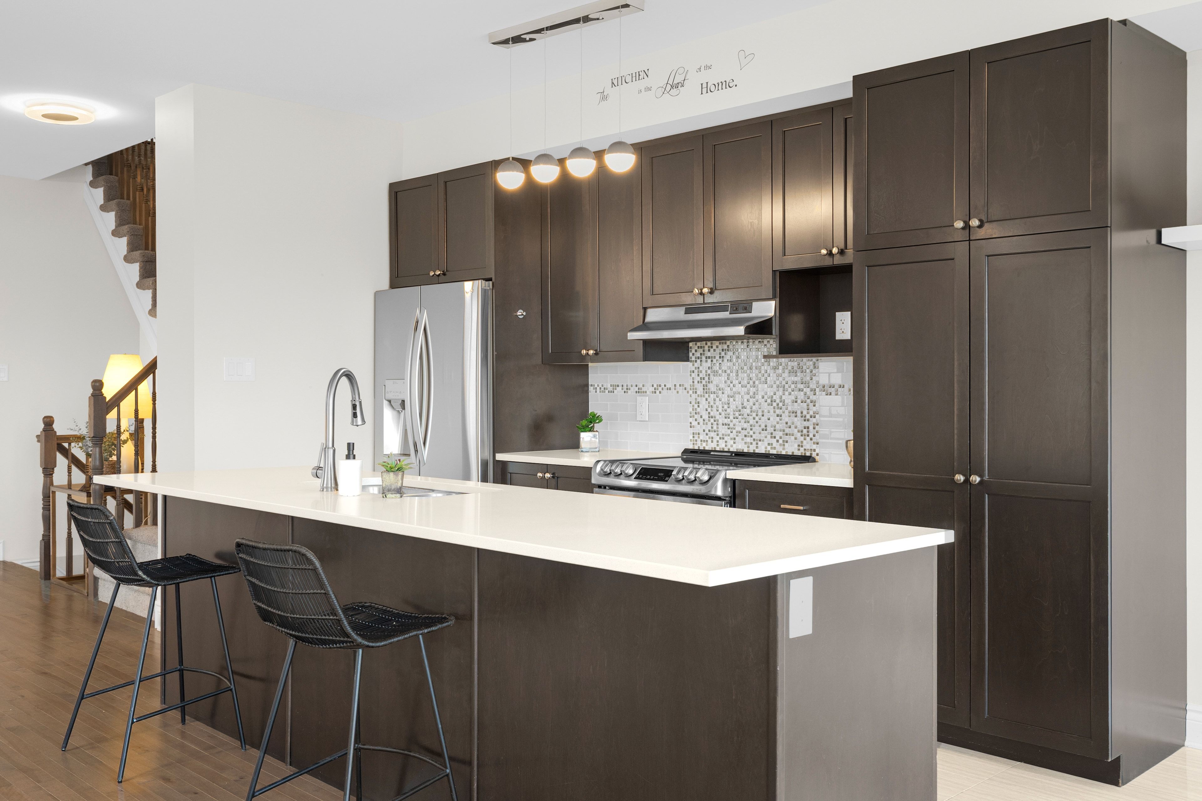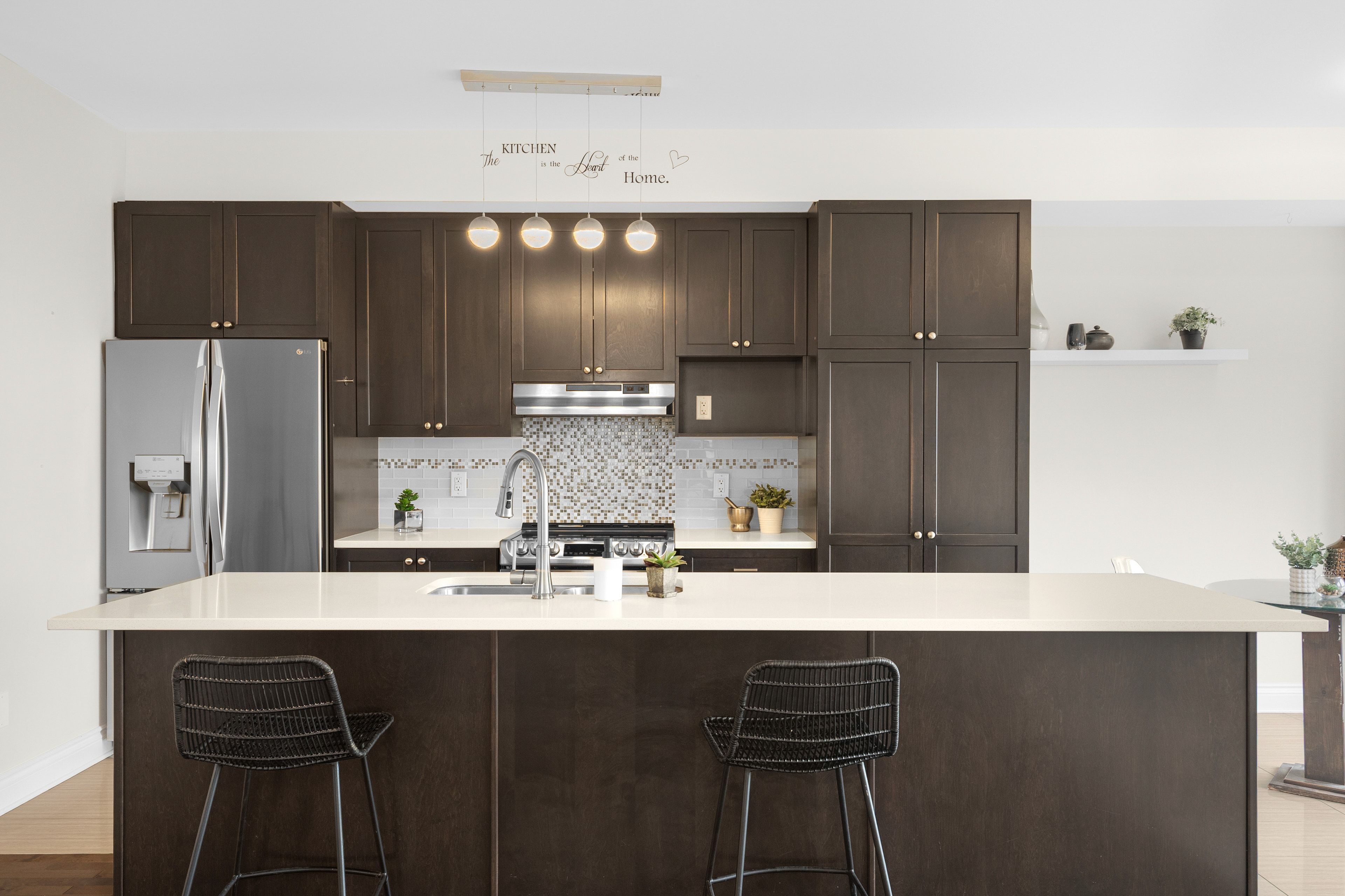 • Modern kitchen features quartz countertops and stainless steel appliances.