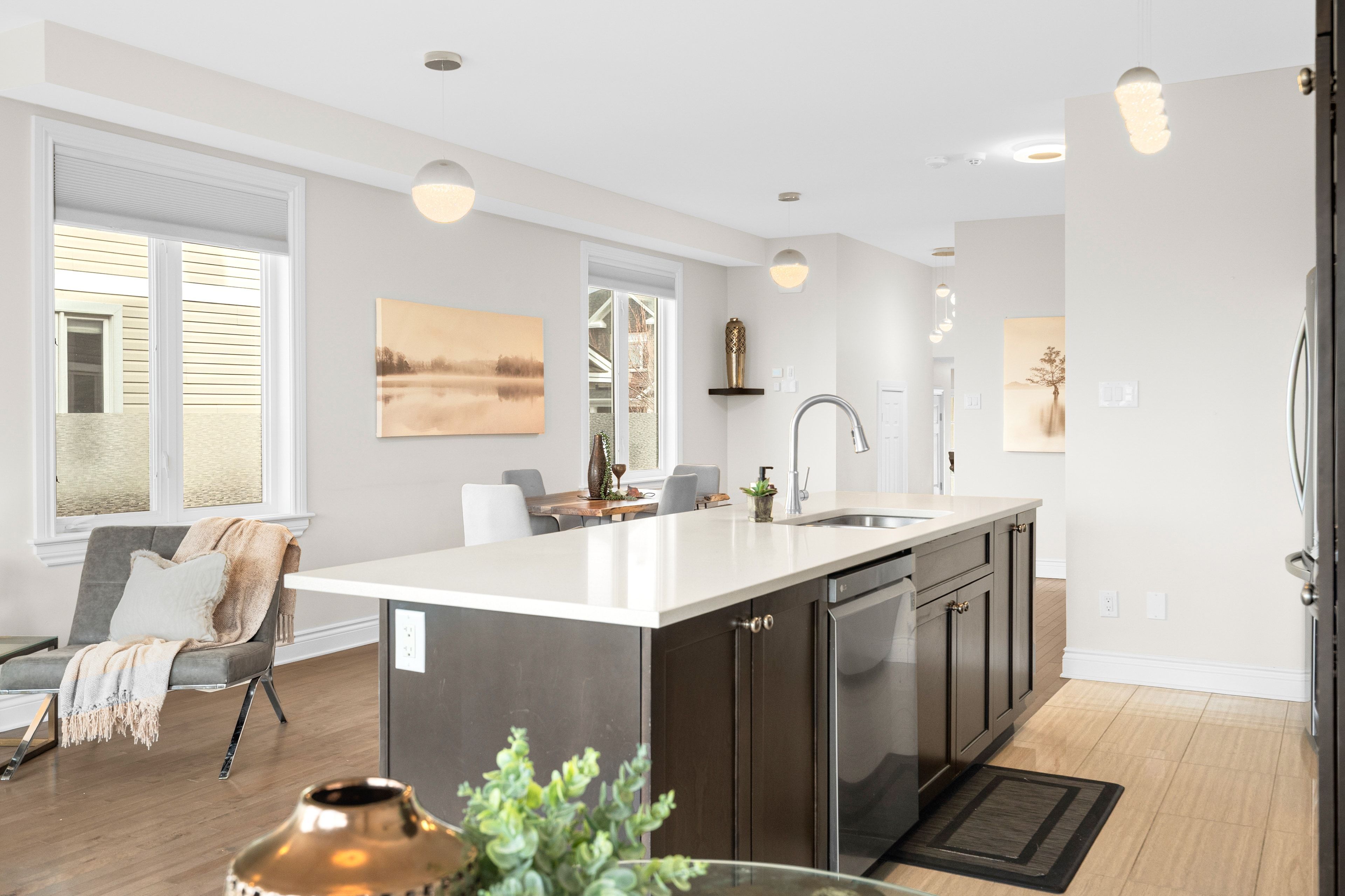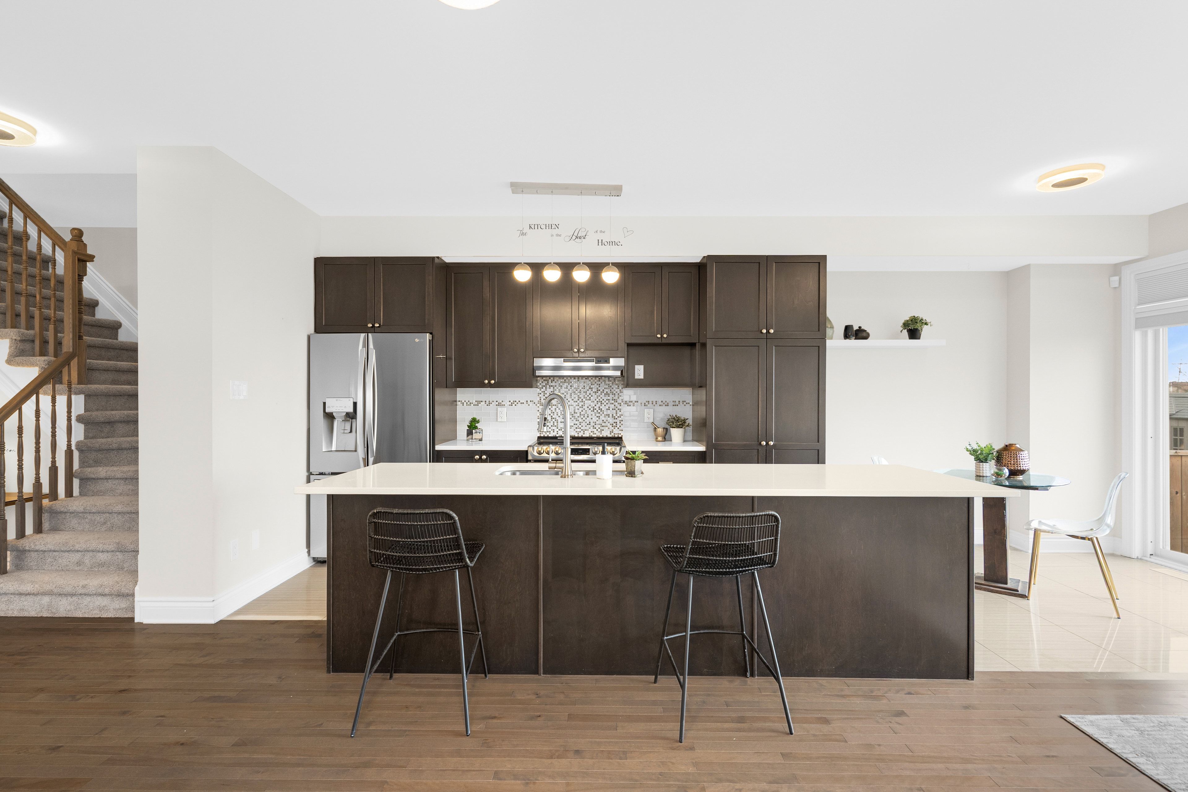 • Bright main floor with hardwood, tile, and stylish fixtures throughout.