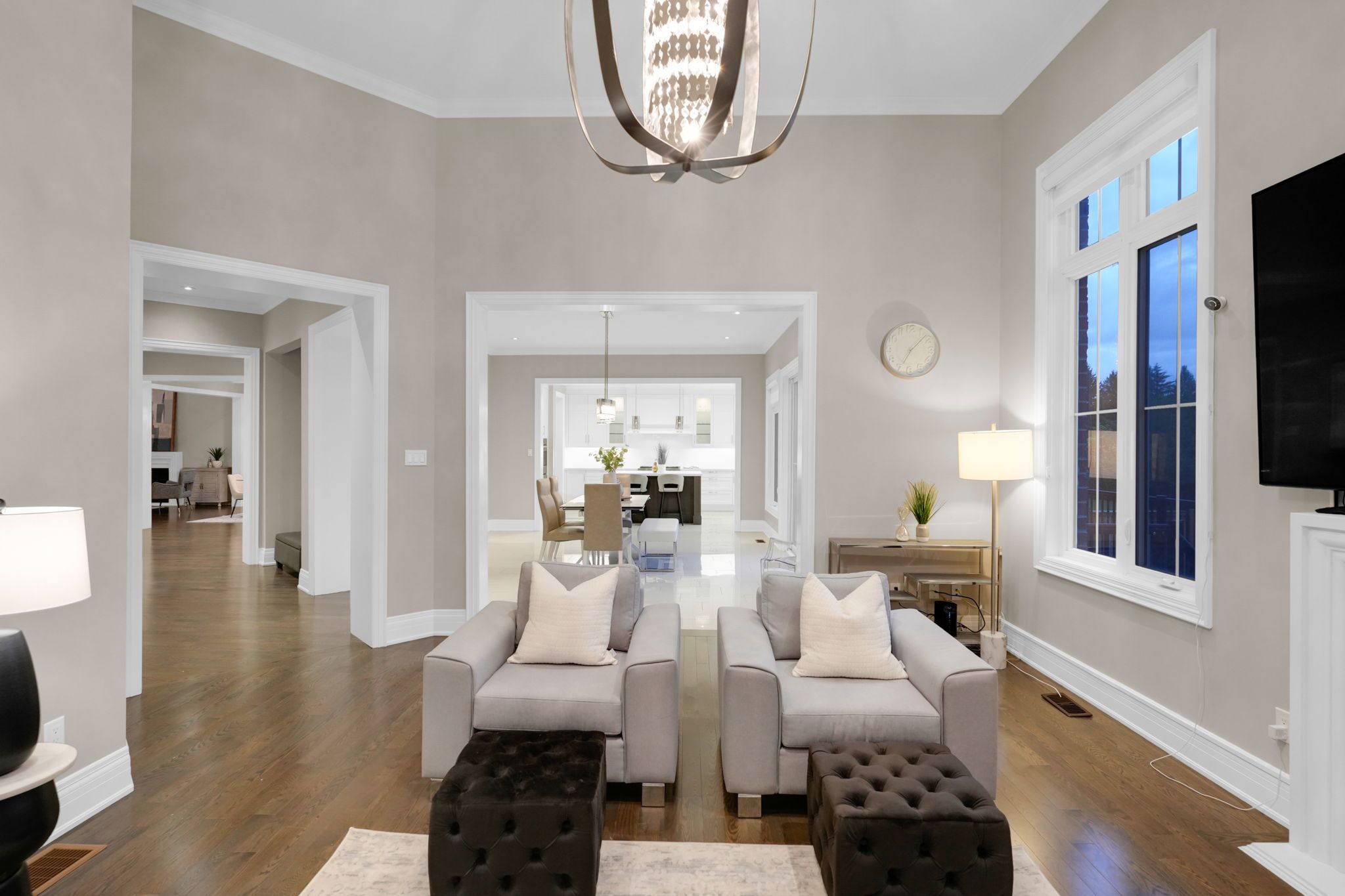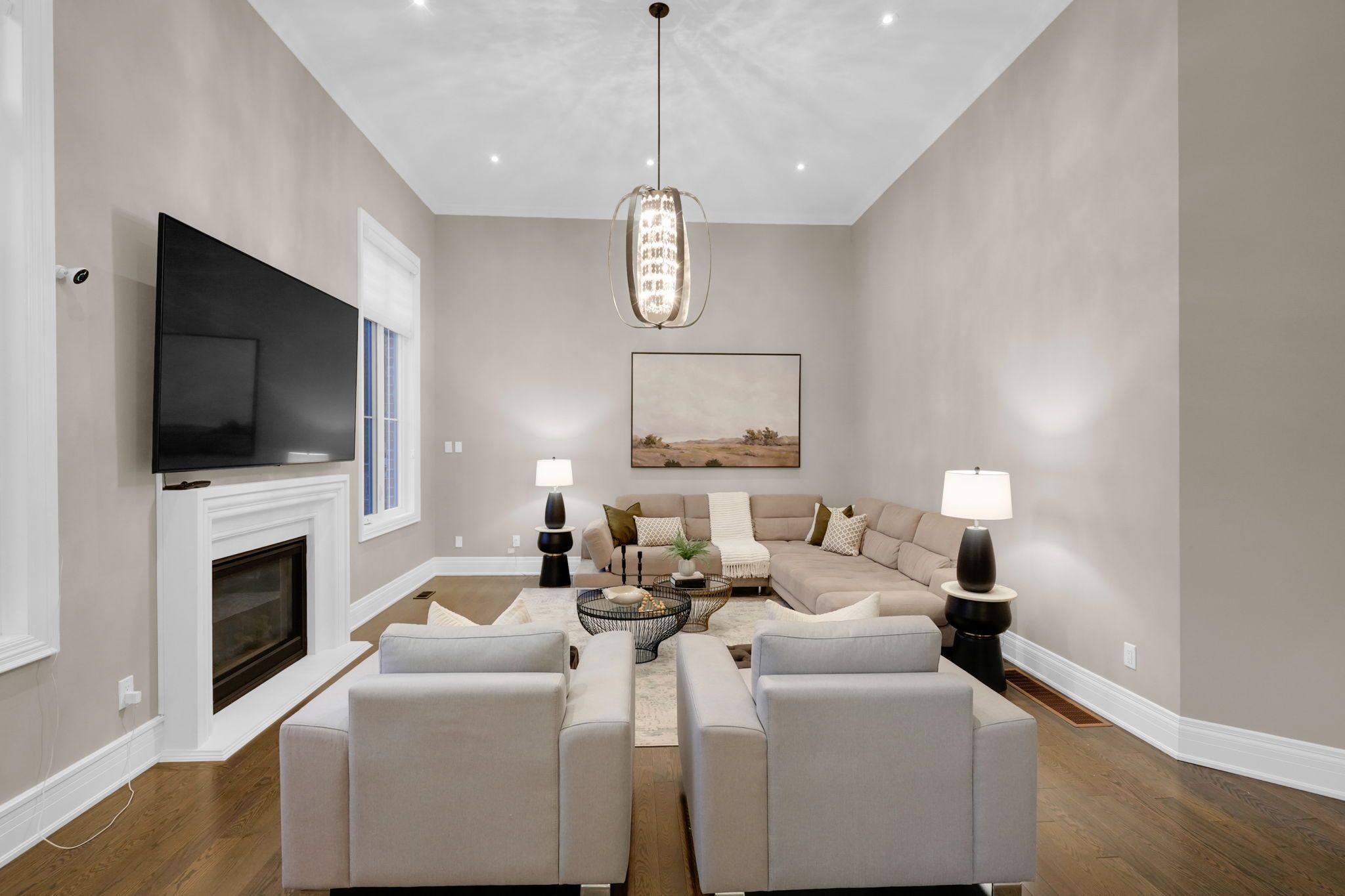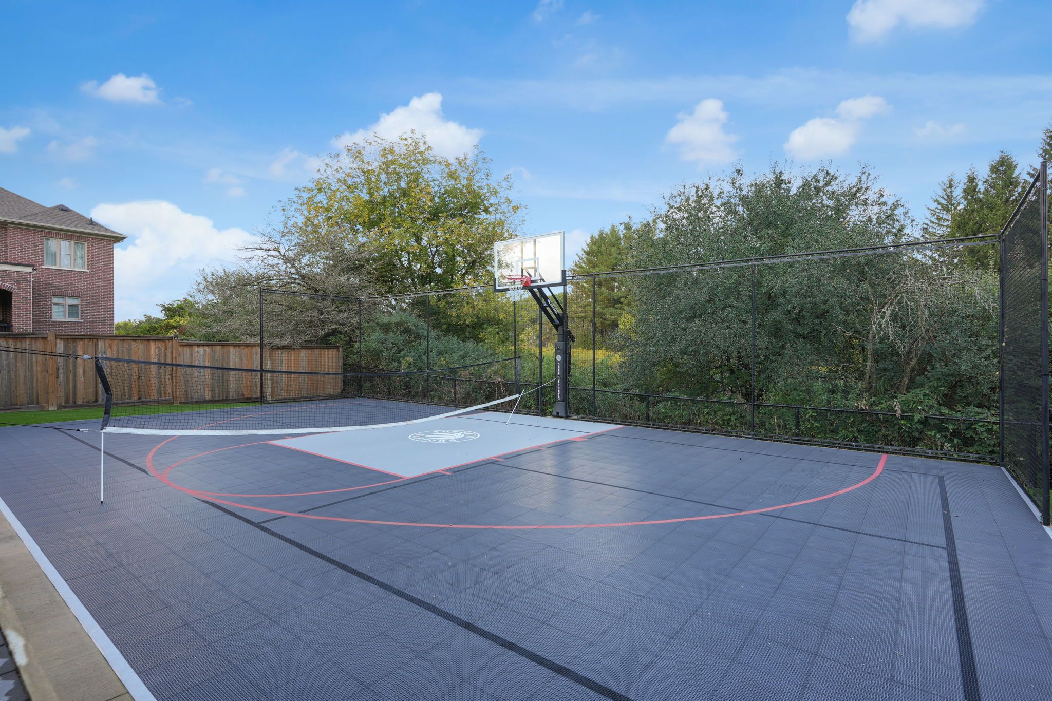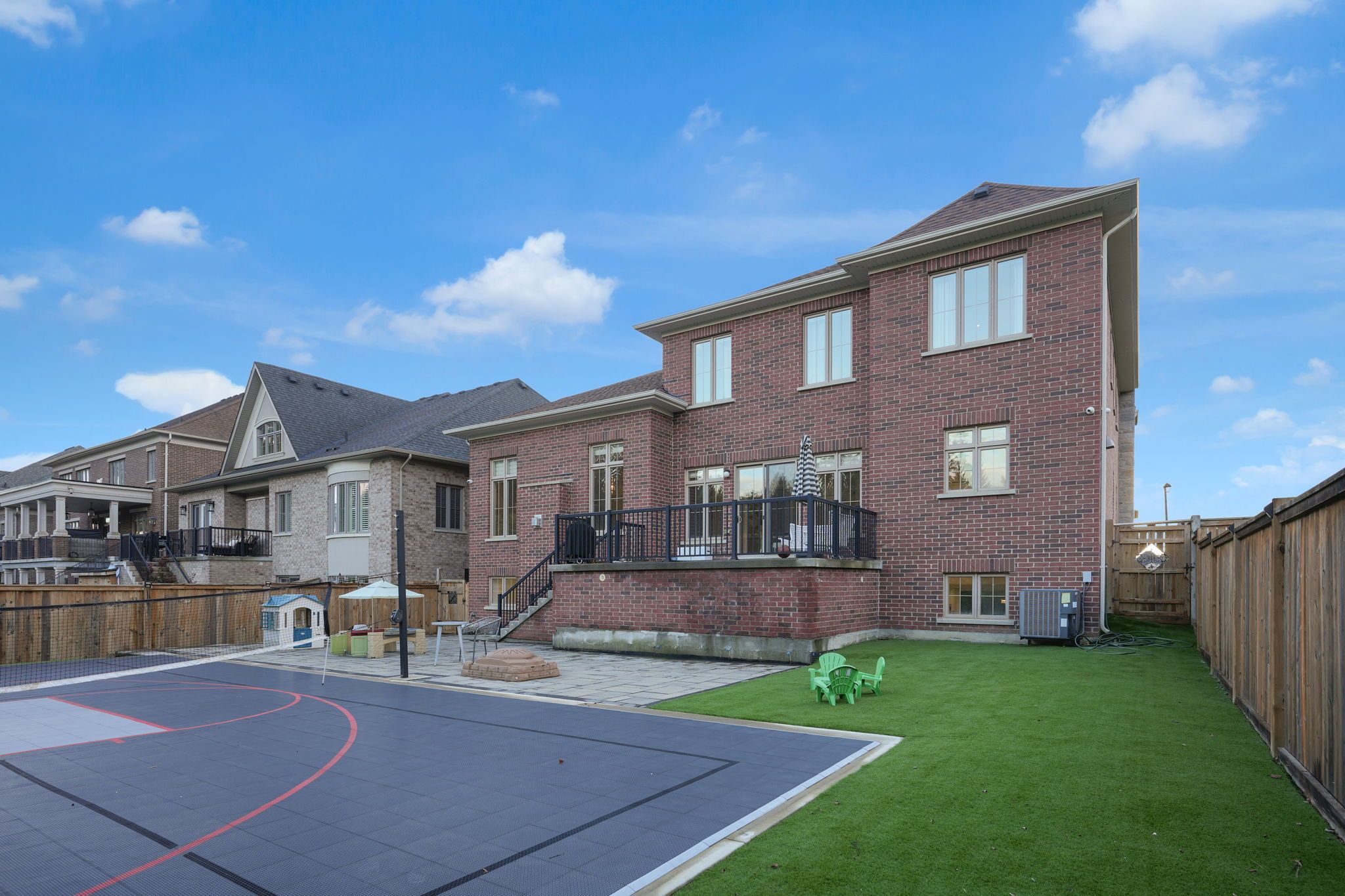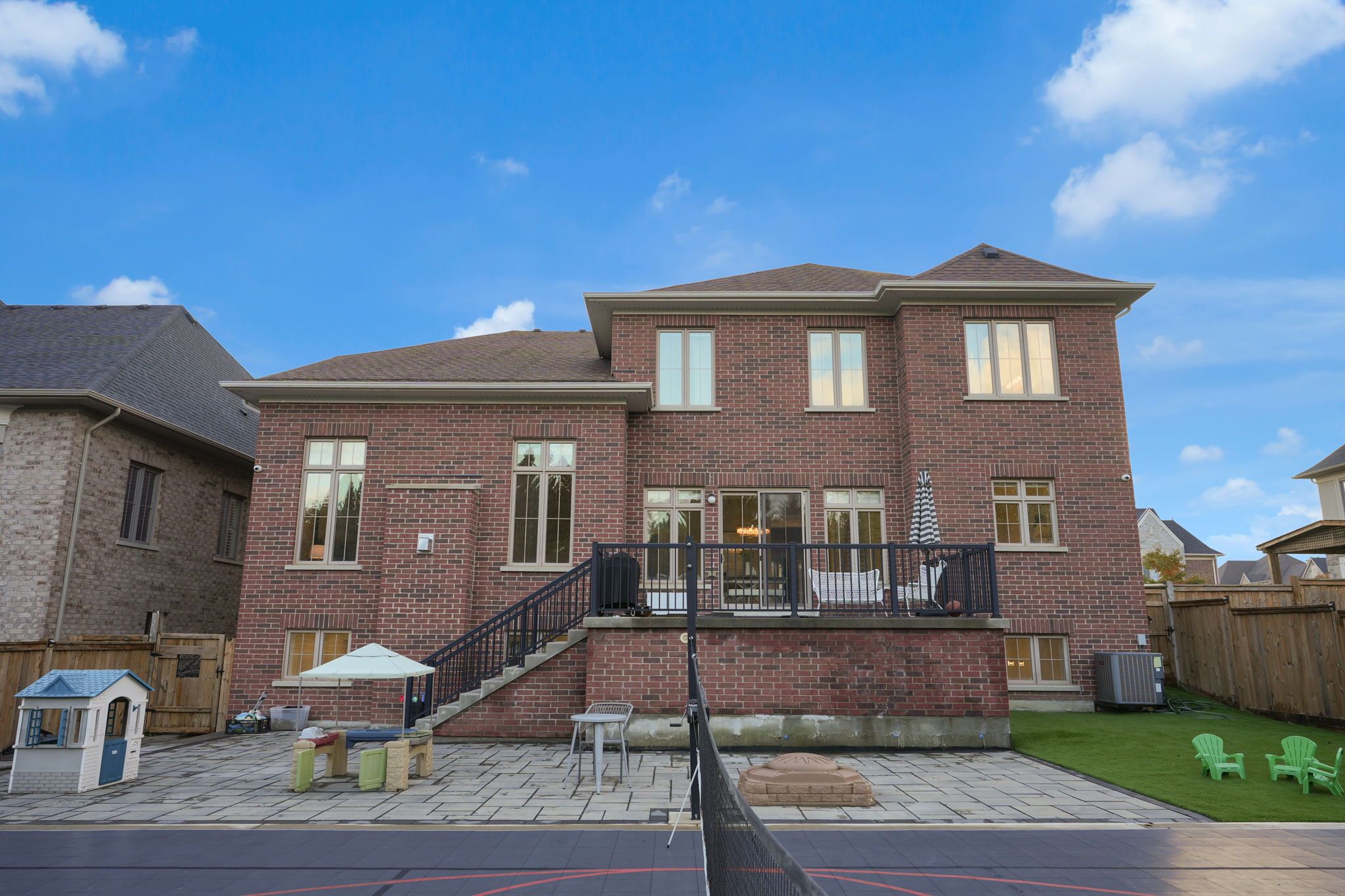 Magnificent kingsview manor estate! This breathtaking residence sits on a premium ravine lot with no rear neighbours, offering over 6,700 sq. Ft. Of total living space; nearly 4,500 sq. Ft. Above grade plus over 2,200 sq. Ft. Of fully finished basement living space. With soaring 20-foot ceilings in the main living and family areas, this home is designed to impress at every turn. The grand foyer with a sweeping half-round staircase opens to a two-storey family room drenched in natural light. A gourmet kitchen features custom cabinetry, centre island, walk-in pantry, and a convenient walk-through serveryfully outfitted with premium wolf and sub-zero appliances. The main floor also includes a dedicated office, as well as a functional mudroom and laundry for everyday convenience. Upstairs, every bedroom is thoughtfully designed with either a private ensuite or semi-ensuite bathroom, walk-in closets, and abundant storage. A den off one of the bedrooms offers a perfect retreat for an office or cozy reading nook. Throughout the upper level, you'll find countless storage closets that ensure the home is as practical as it is luxurious. The master retreat stands apart with a spa-like 5-piece ensuite and dual walk-in closets. The fully finished basement is complete with a wet bar offering full kitchen capability, dual staircases, two hidden cantinas, additional rooms, bathroom, and multiple storage spaces making it the ideal layout for an in-law suite with two private entrances. Outside, the professionally landscaped grounds provide year-round enjoyment with interlock, astro turf, and a basketball court. From hidden storage to luxury finishes, this home truly has it all.