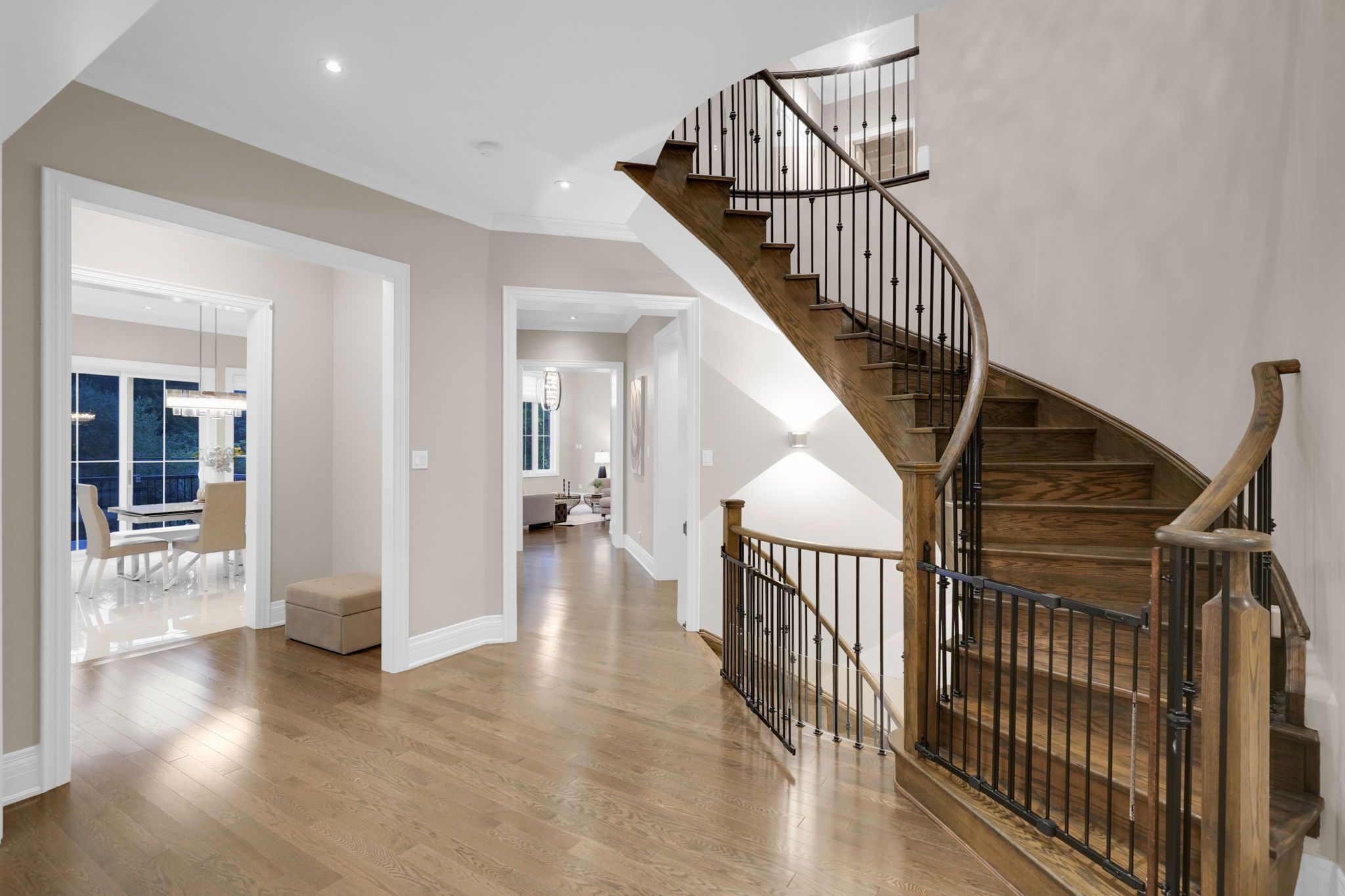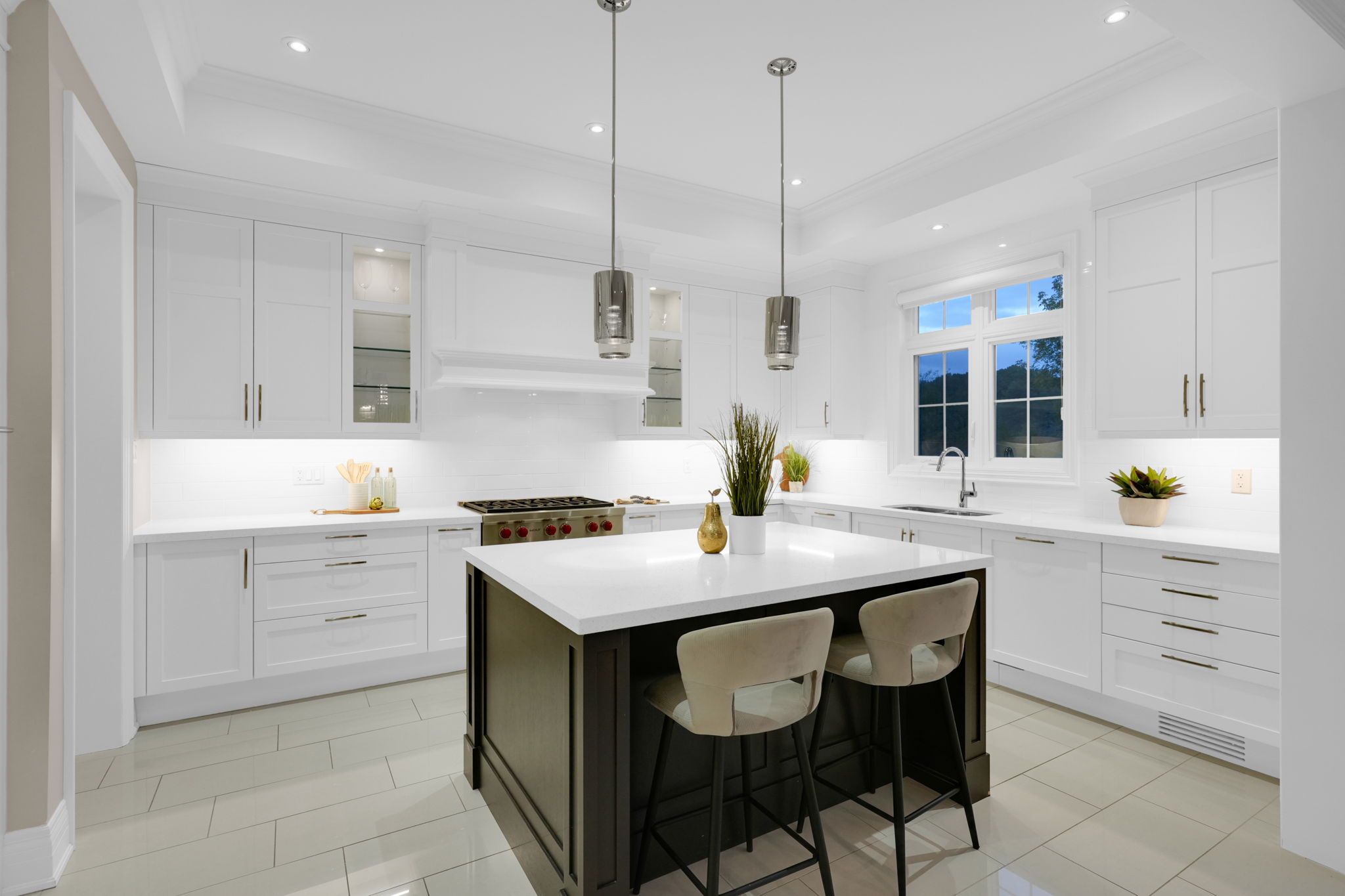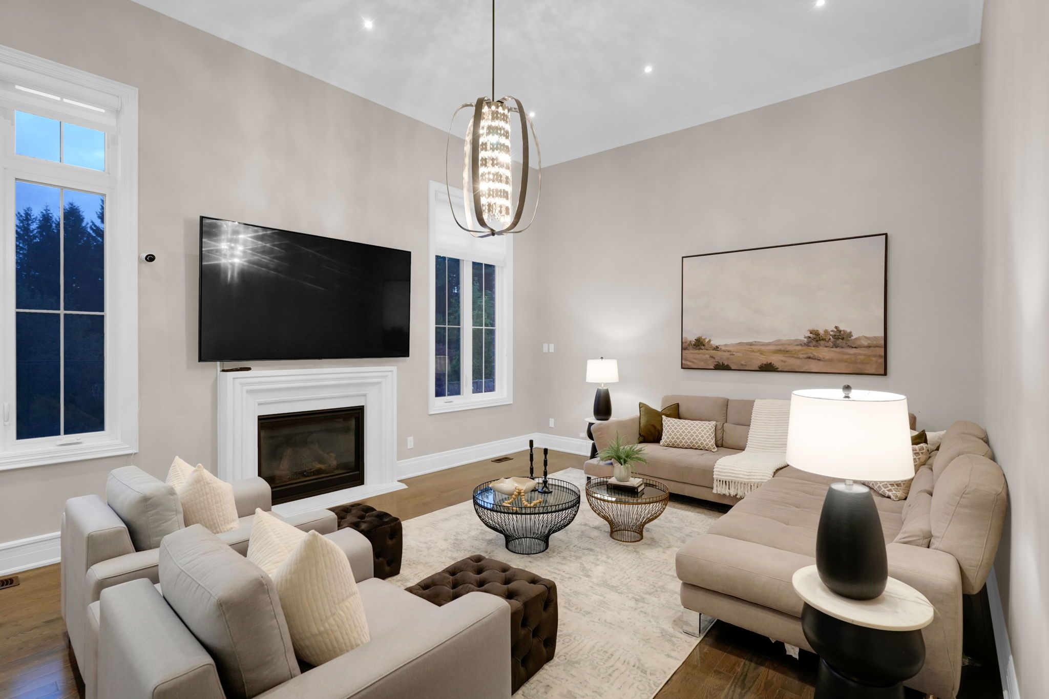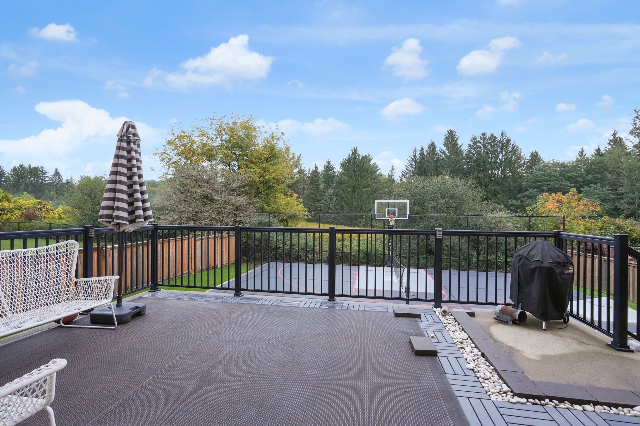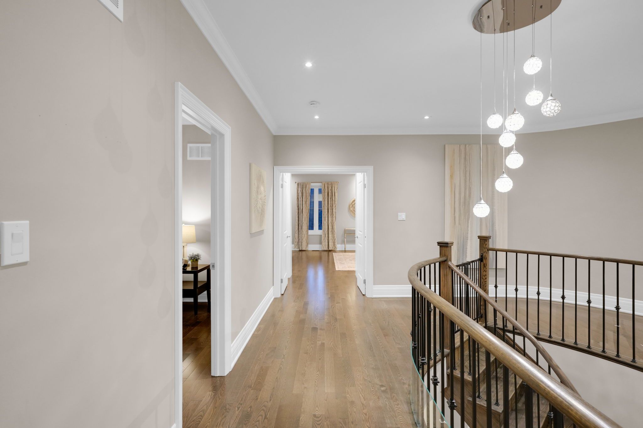 Magnificent kingsview manor estate! This breathtaking residence sits on a premium ravine lot with no rear neighbours, offering over 6,700 sq. Ft. Of total living space; nearly 4,500 sq. Ft. Above grade plus over 2,200 sq. Ft. Of fully finished basement living space. With soaring 20-foot ceilings in the main living and family areas, this home is designed to impress at every turn. The grand foyer with a sweeping half-round staircase opens to a two-storey family room drenched in natural light. A gourmet kitchen features custom cabinetry, centre island, walk-in pantry, and a convenient walk-through serveryfully outfitted with premium wolf and sub-zero appliances. The main floor also includes a dedicated office, as well as a functional mudroom and laundry for everyday convenience. Upstairs, every bedroom is thoughtfully designed with either a private ensuite or semi-ensuite bathroom, walk-in closets, and abundant storage. A den off one of the bedrooms offers a perfect retreat for an office or cozy reading nook. Throughout the upper level, you'll find countless storage closets that ensure the home is as practical as it is luxurious. The master retreat stands apart with a spa-like 5-piece ensuite and dual walk-in closets. The fully finished basement is complete with a wet bar offering full kitchen capability, dual staircases, two hidden cantinas, additional rooms, bathroom, and multiple storage spaces making it the ideal layout for an in-law suite with two private entrances. Outside, the professionally landscaped grounds provide year-round enjoyment with interlock, astro turf, and a basketball court. From hidden storage to luxury finishes, this home truly has it all.