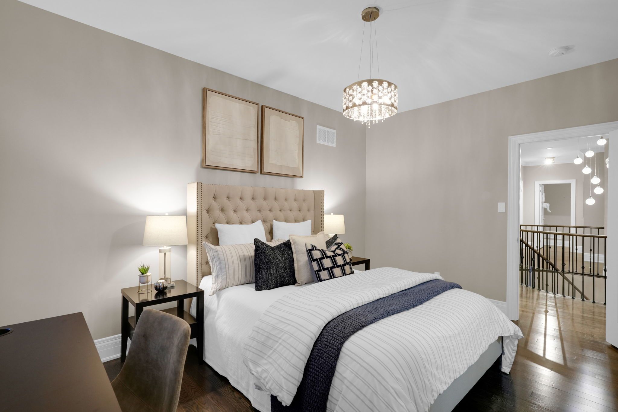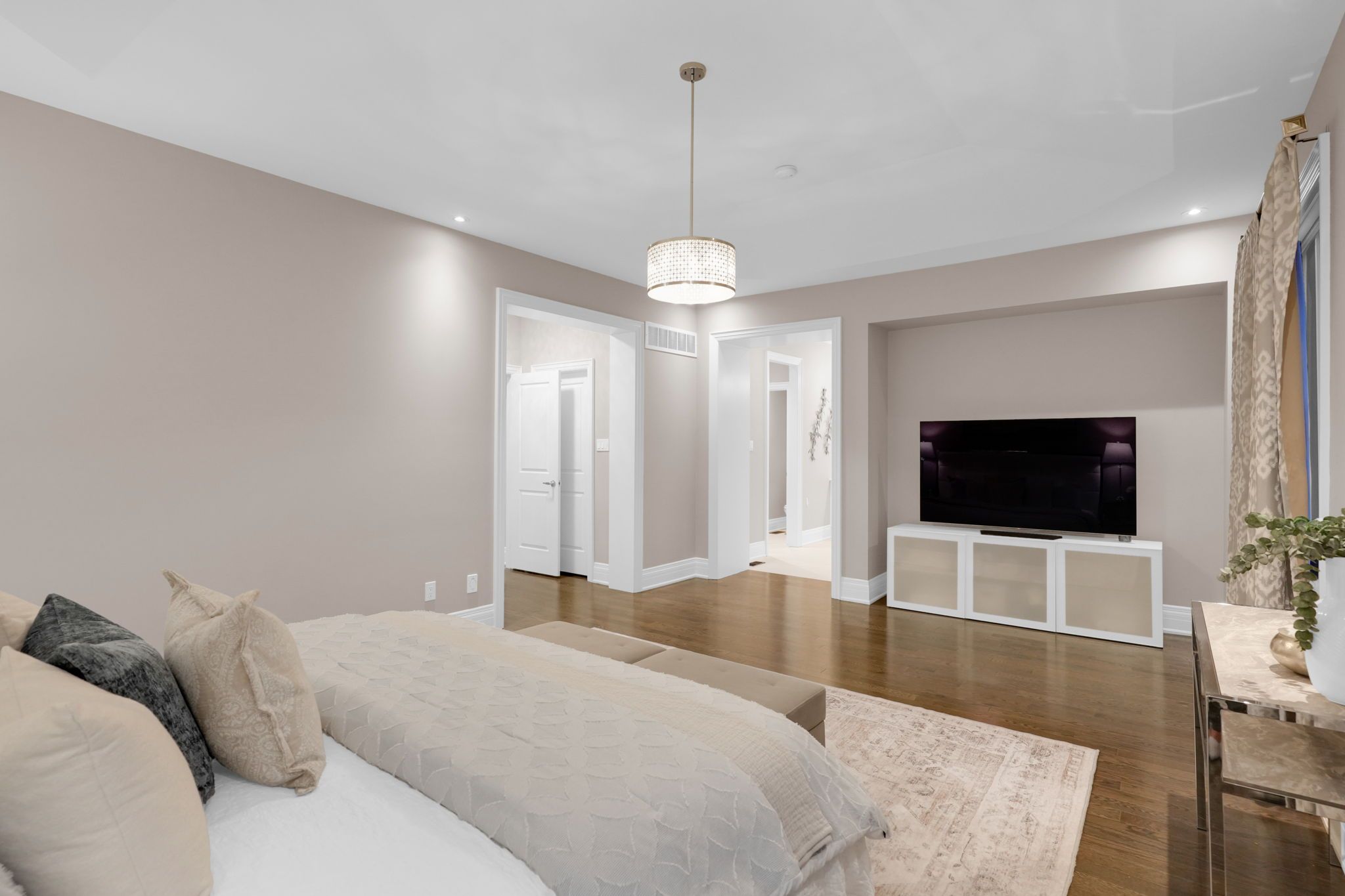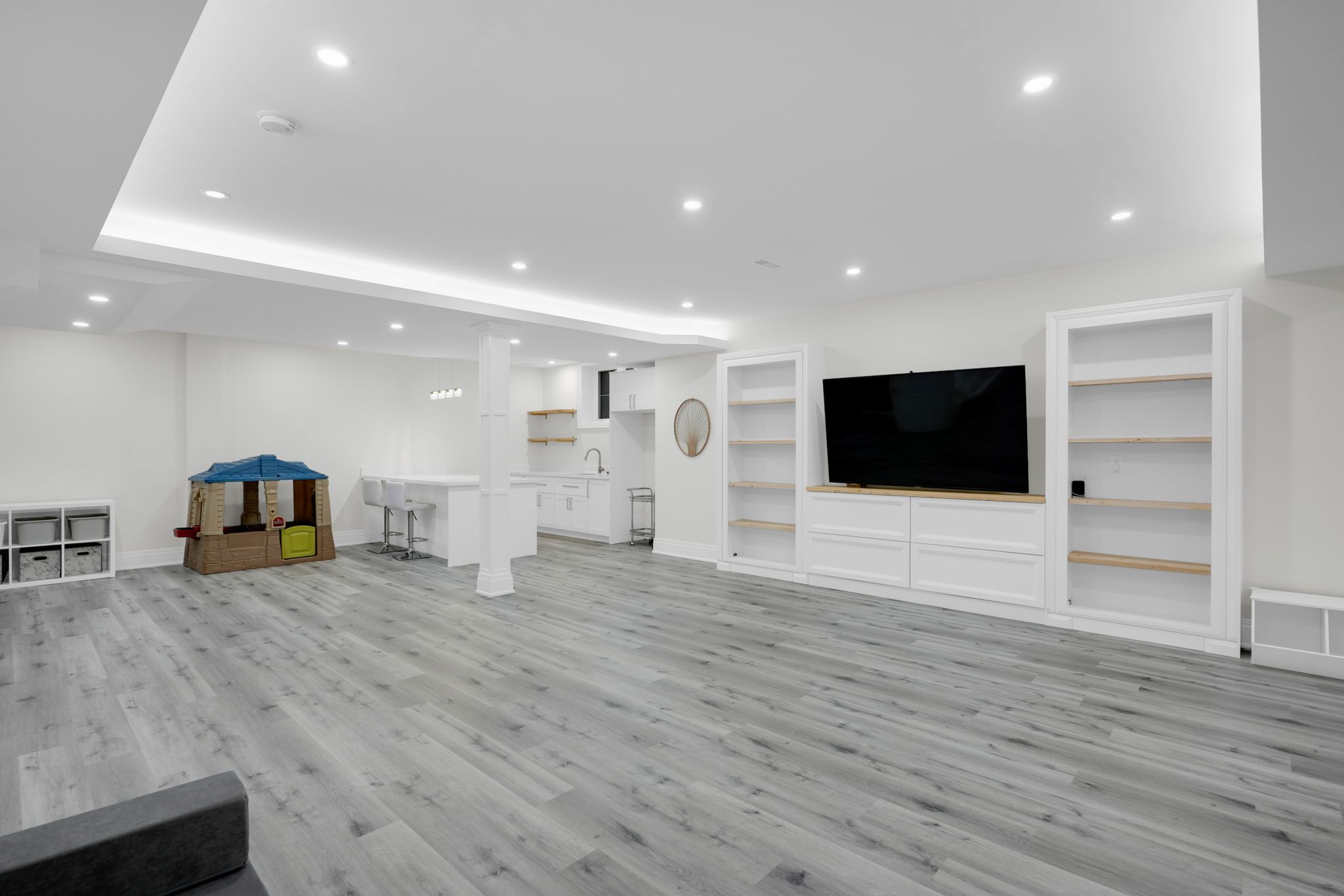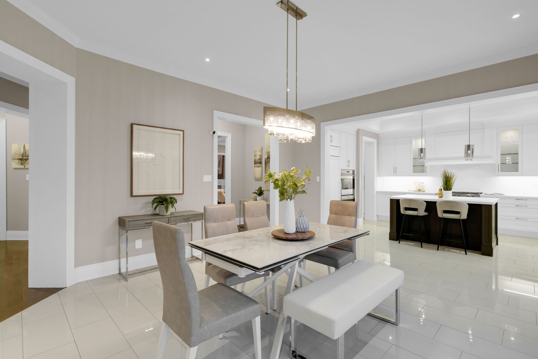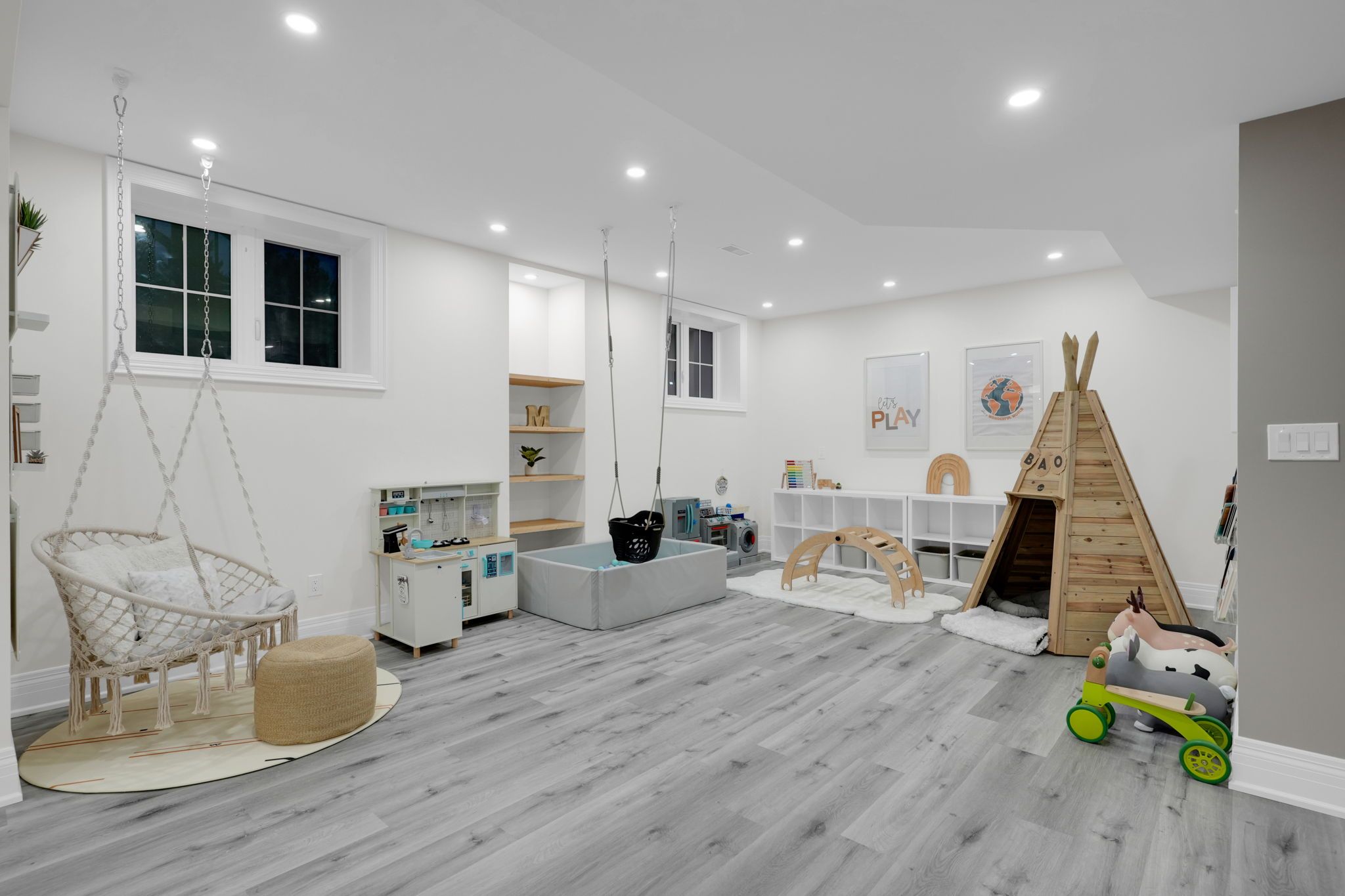 Magnificent kingsview manor estate! This breathtaking residence sits on a premium ravine lot with no rear neighbours, offering over 6,700 sq. Ft. Of total living space; nearly 4,500 sq. Ft. Above grade plus over 2,200 sq. Ft. Of fully finished basement living space. With soaring 20-foot ceilings in the main living and family areas, this home is designed to impress at every turn. The grand foyer with a sweeping half-round staircase opens to a two-storey family room drenched in natural light. A gourmet kitchen features custom cabinetry, centre island, walk-in pantry, and a convenient walk-through serveryfully outfitted with premium wolf and sub-zero appliances. The main floor also includes a dedicated office, as well as a functional mudroom and laundry for everyday convenience. Upstairs, every bedroom is thoughtfully designed with either a private ensuite or semi-ensuite bathroom, walk-in closets, and abundant storage. A den off one of the bedrooms offers a perfect retreat for an office or cozy reading nook. Throughout the upper level, you'll find countless storage closets that ensure the home is as practical as it is luxurious. The master retreat stands apart with a spa-like 5-piece ensuite and dual walk-in closets. The fully finished basement is complete with a wet bar offering full kitchen capability, dual staircases, two hidden cantinas, additional rooms, bathroom, and multiple storage spaces making it the ideal layout for an in-law suite with two private entrances. Outside, the professionally landscaped grounds provide year-round enjoyment with interlock, astro turf, and a basketball court. From hidden storage to luxury finishes, this home truly has it all.