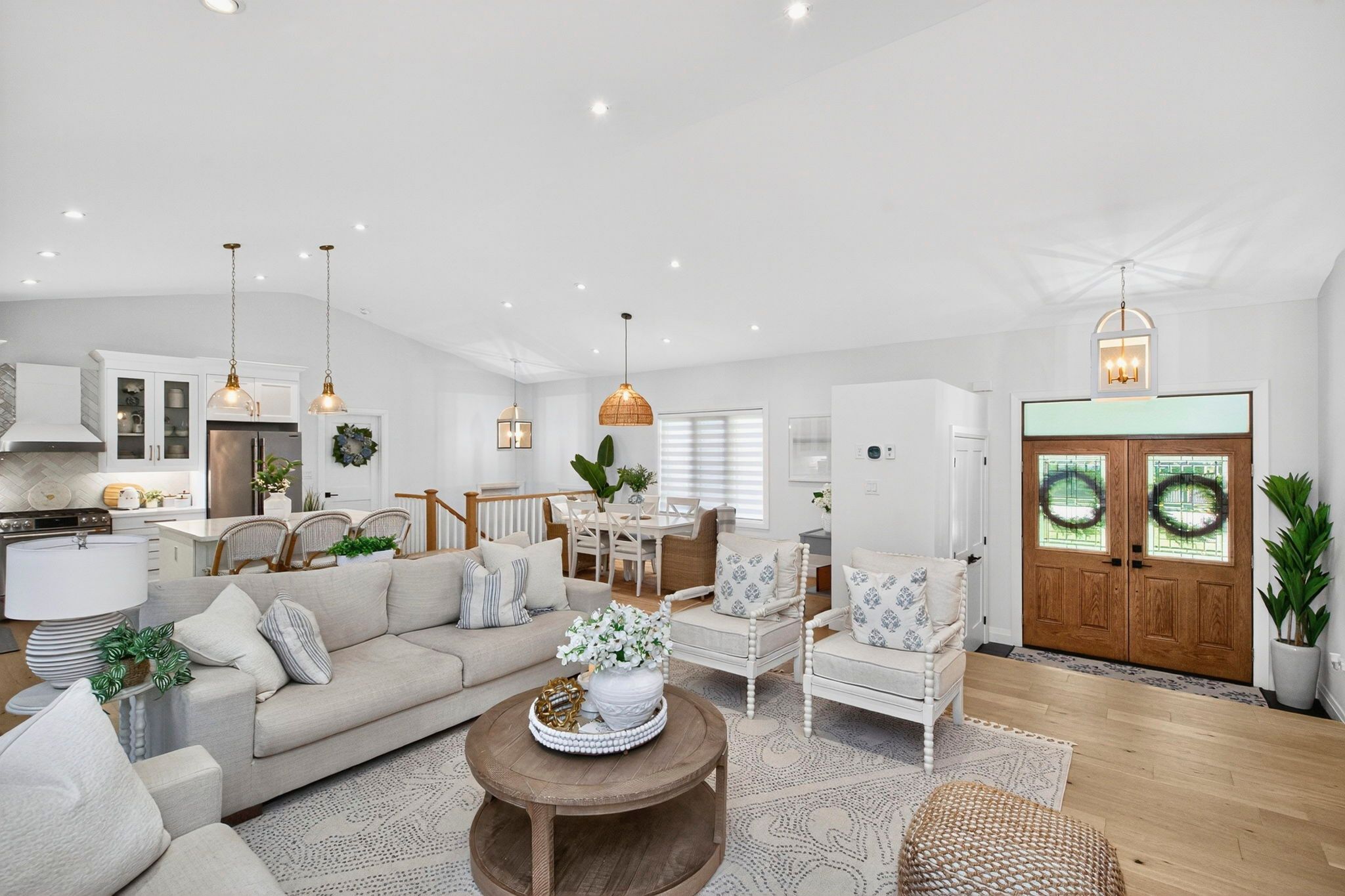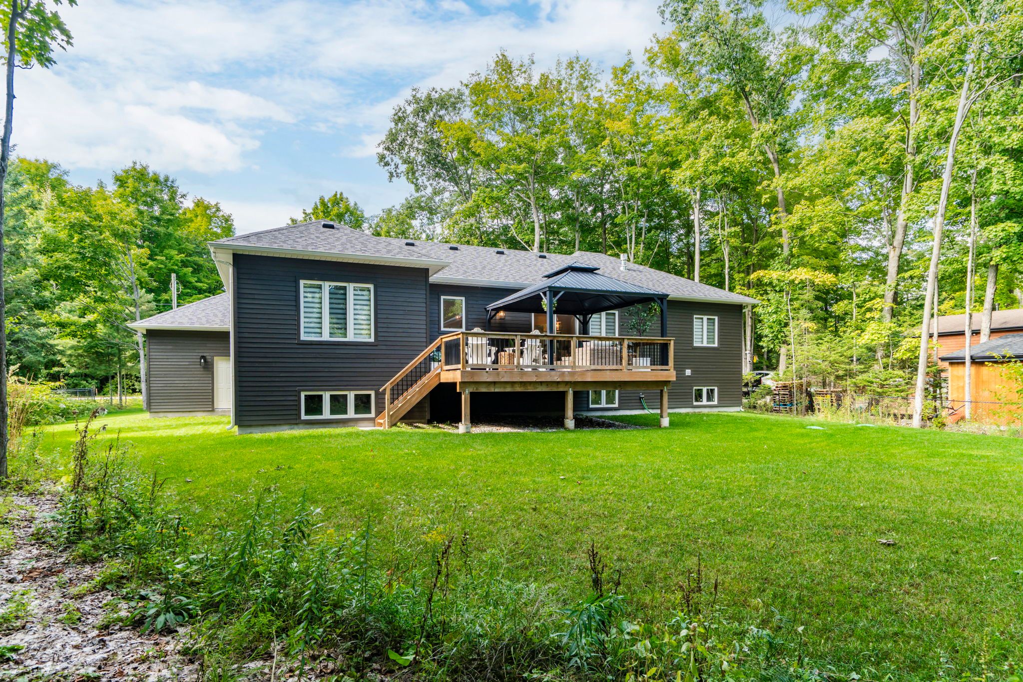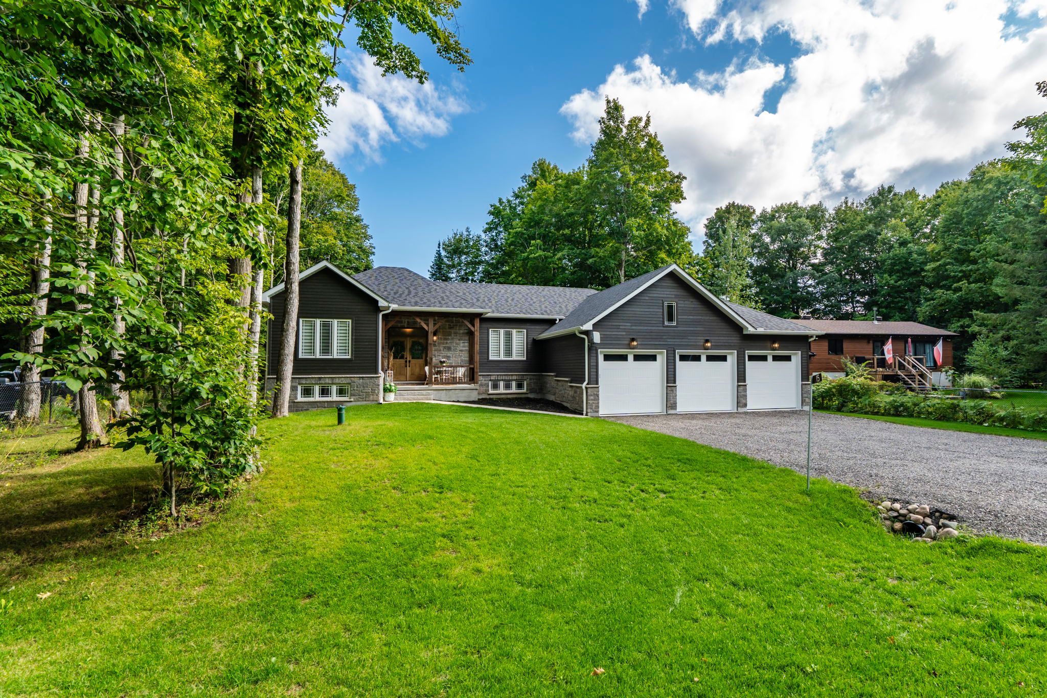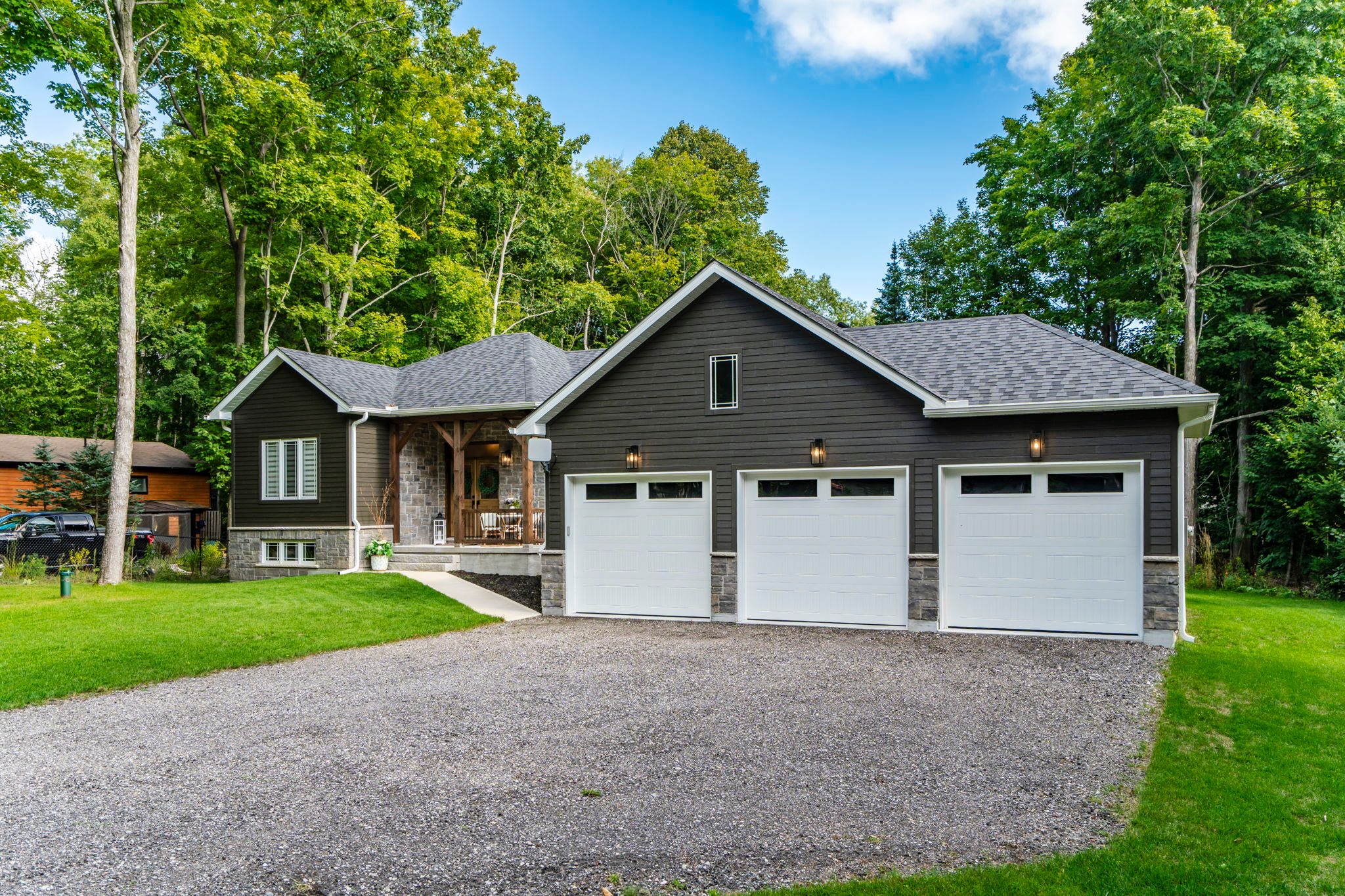 Welcome to pinecone ave, a quiet picturesque street in tiny- where refined living meets the relaxed pace of life by georgian bay. This exceptional bungalow offers the perfect combination of modern craftsmanship, timeless style & practical design, making it an ideal choice for those seeking either a full-time residence or a peaceful retreat just minutes from the water. From the moment you step inside, you'll notice the attention to detail & quality finishes that set this home apart. Wide plank engineered hardwood floors extend across the open-concept main living space, creating a sense of warmth & continuity. At the heart of the home is a custom-designed kitchen featuring sleek quartz countertops, an oversized island with abundant storage & thoughtful design elements that make both everyday cooking & entertaining effortless. The kitchen seamlessly flows into the dining/living areas, where tall windows welcome natural light & a dramatic floor-to-ceiling fireplace serves as the inviting focal point of the room. Step outside to your tranquil backyard. The spacious deck is complemented by a large metal gazebo, offering the perfect spot for summer gatherings. The 3-car garage provides plenty of room for all your toys, while the full-height unfinished basement offers endless potential to design the space you've always imagined. & of course it's icf construction. This property is more than just a house, it's a lifestyle. Located minutes from sandy beaches, scenic trails & peaceful parks, you'll have endless opportunities to enjoy the outdoors. Imagine days spent swimming, kayaking, or paddleboarding on the bay, followed by evenings gathered around the fireplace or relaxing on the deck under the stars. With its seamless blend of modern comfort, low-maintenance living & proximity to everything that makes tiny such a beloved community, this bungalow is a rare find. This coastal vibe bungalow is waiting for its next owner to enjoy all that georgian bay living has to offer!!