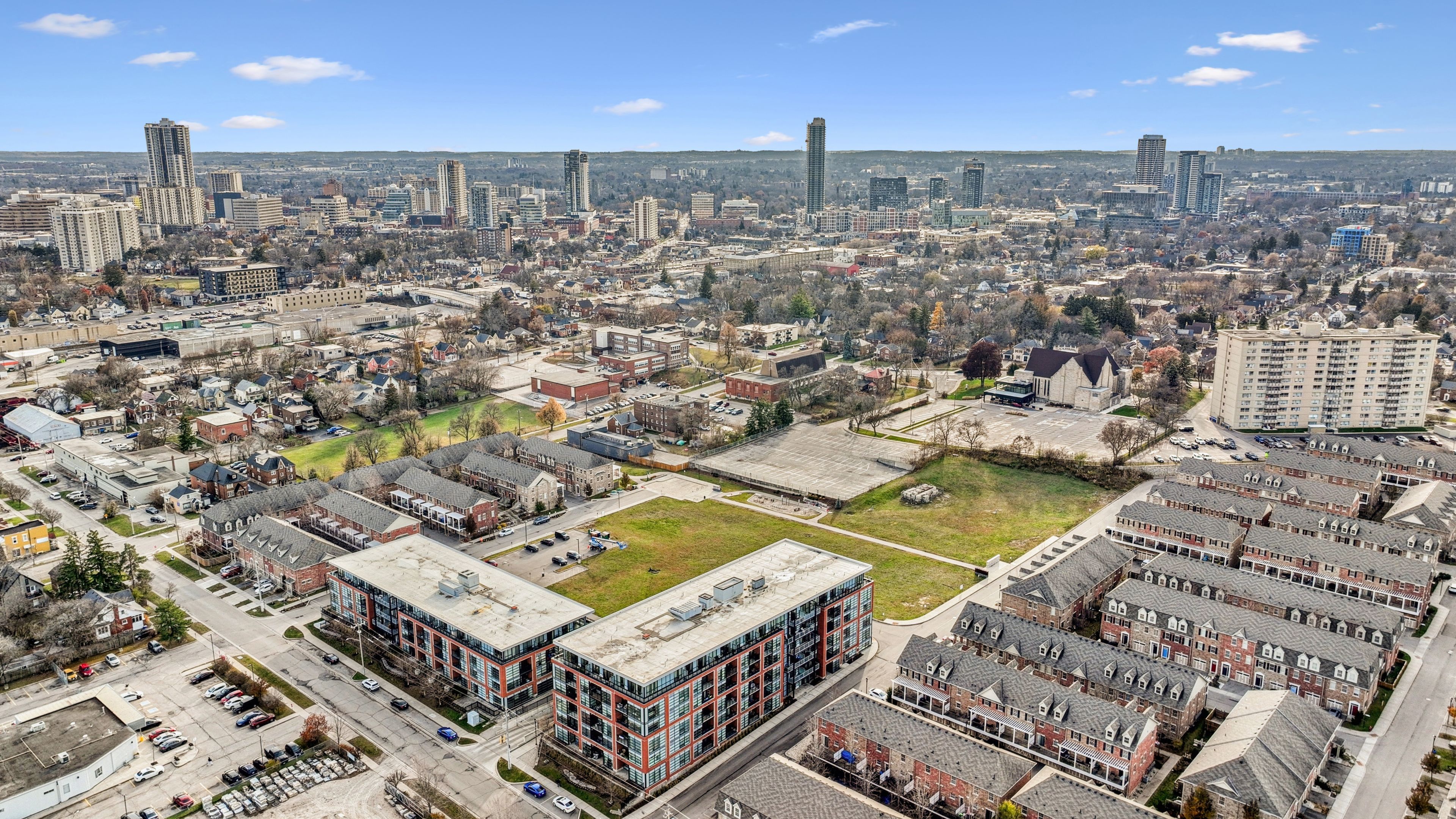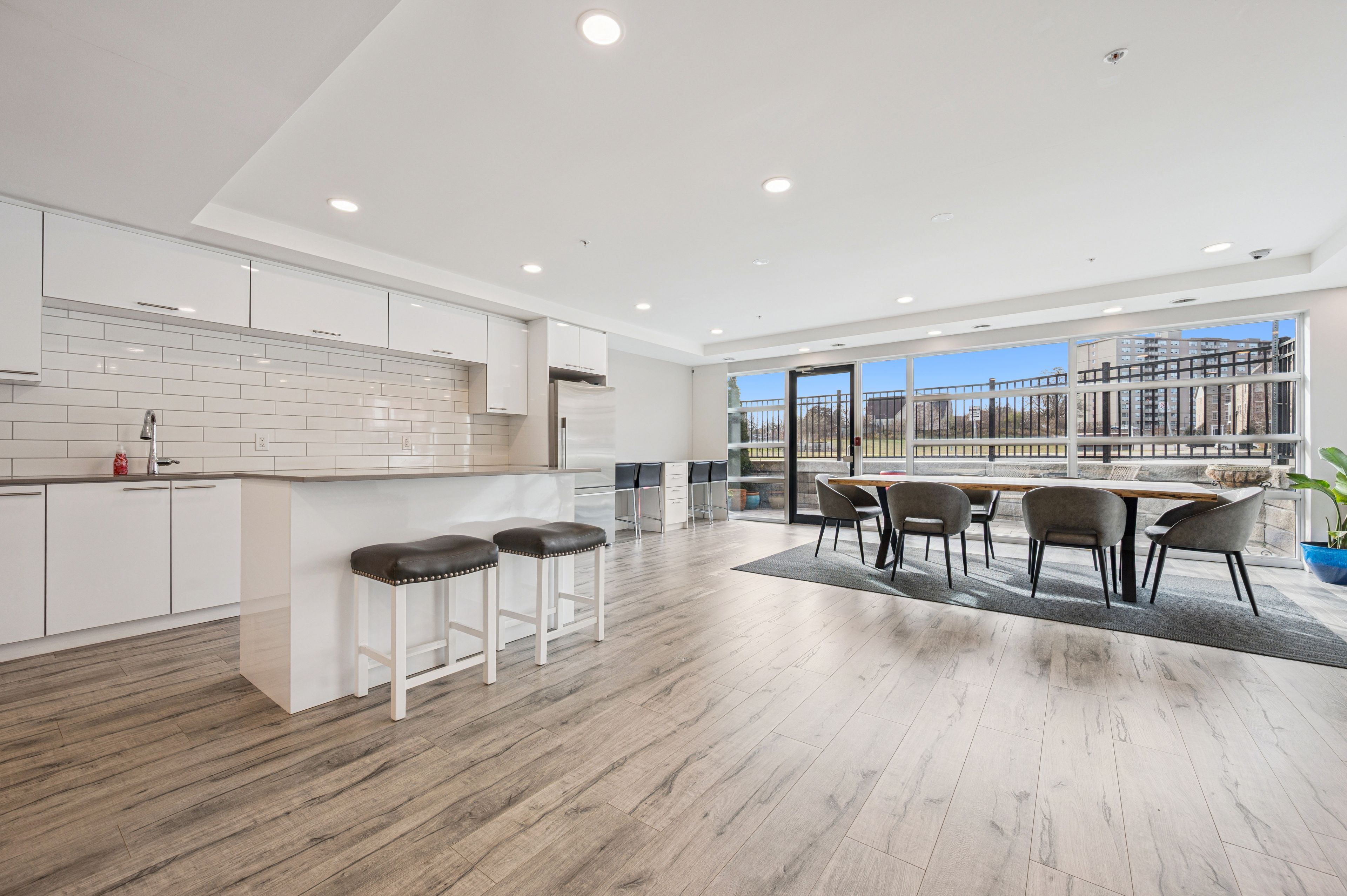 Welcome to 15 prince albert blvd unit 104-a stylish and modern 1 bedroom + den condo offering exceptional comfort, and convenience. Located on the main floor, this unit provides easy access along with an open concept, contemporary living space you'll love coming home to. Inside, enjoy 2 full bathrooms, including a 3-piece ensuite with a sleek glass shower enclosure, plus a separate 4-piece second bathroom-perfect for guests or a roommate. The spacious den features a barn door enclosure and a full closet, making it ideal as an office or guest space. The modern kitchen is designed to impress, featuring white cabinetry, a grey tile backsplash, quartz countertops, and stainless appliances. In-suite laundry adds everyday convenience. Enjoy your own private patio, perfect for relaxing. The building offers a fitness centre and party room right outside your door on the main floor. With geothermal heating and cooling, each unit is separately metered for energy-efficient, cost-effective living. 1 underground parking spot and a storage locker are included. Enjoy a prime location steps from parks, the google office, uw's school of pharmacy, and the lively amenities of downtown kitchener and a short commute to uptown waterloo along with the via rail train station nearby for easy commuting. Move-in ready and beautifully appointed, unit 104 is the perfect blend of style, function, and location. Don't miss your chance to make it yours!