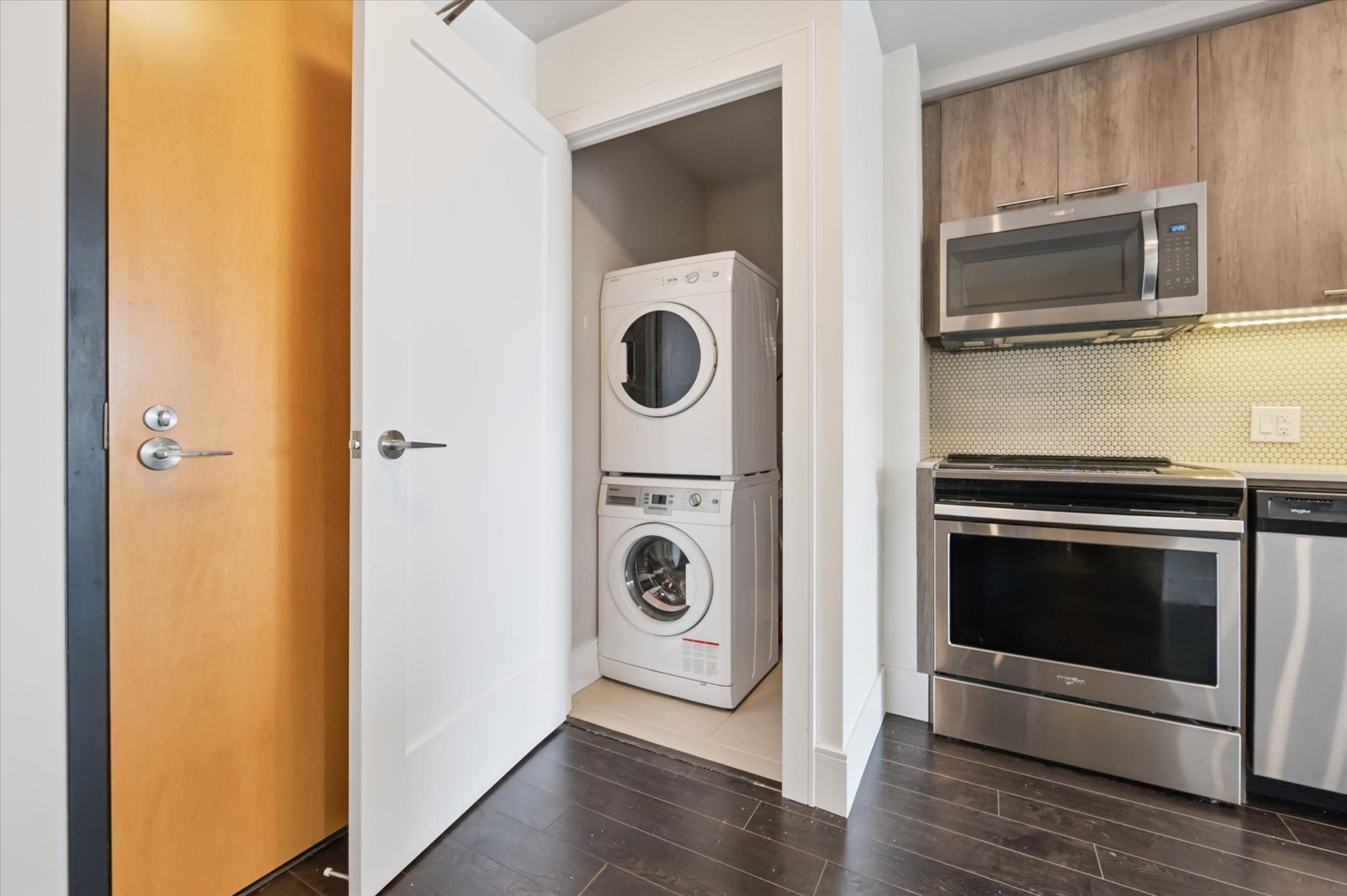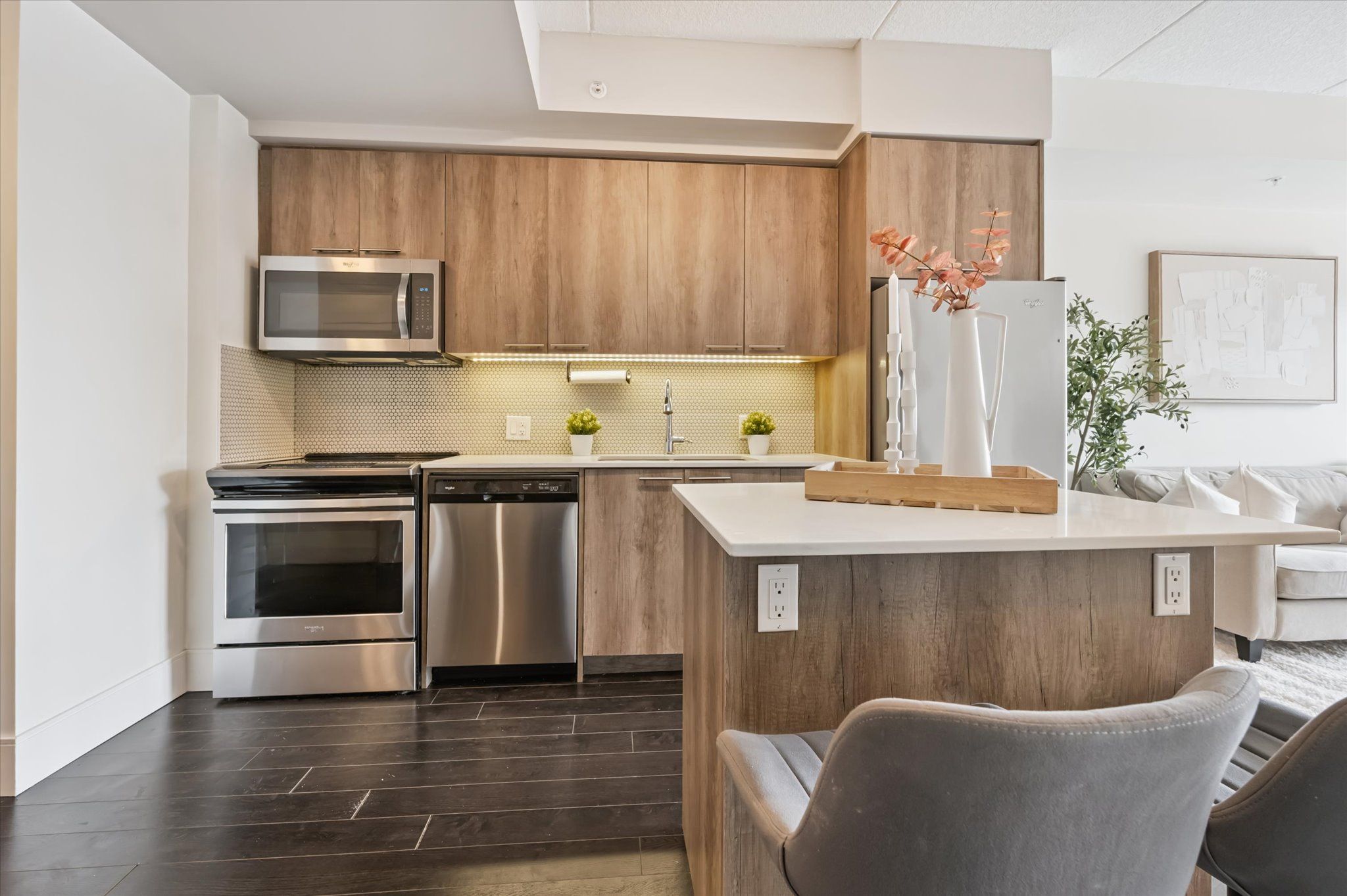 • Stylish kitchen featuring quartz countertops and stainless steel appliances.