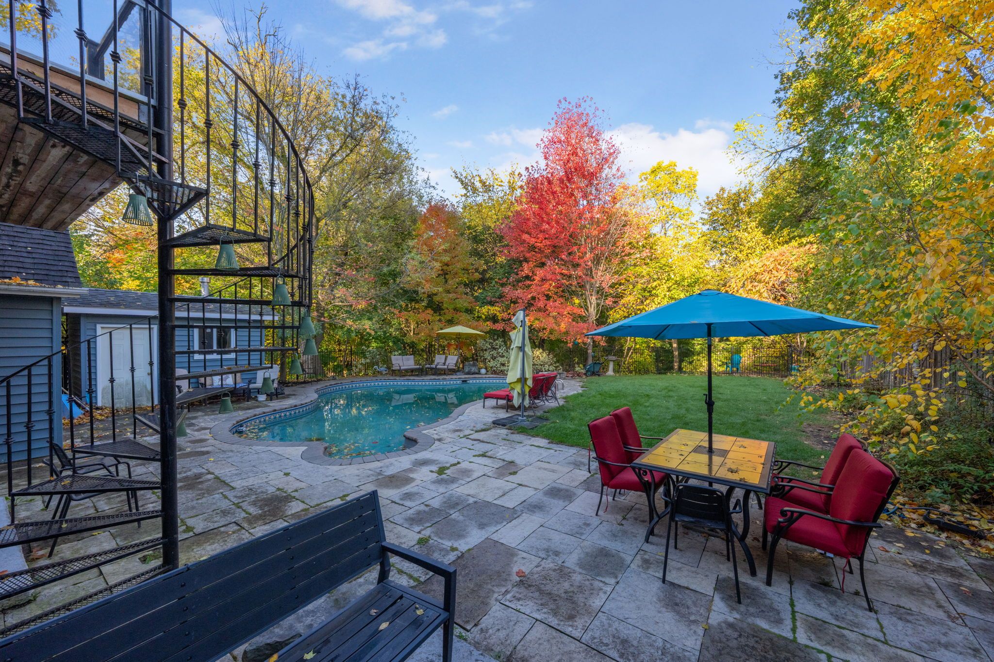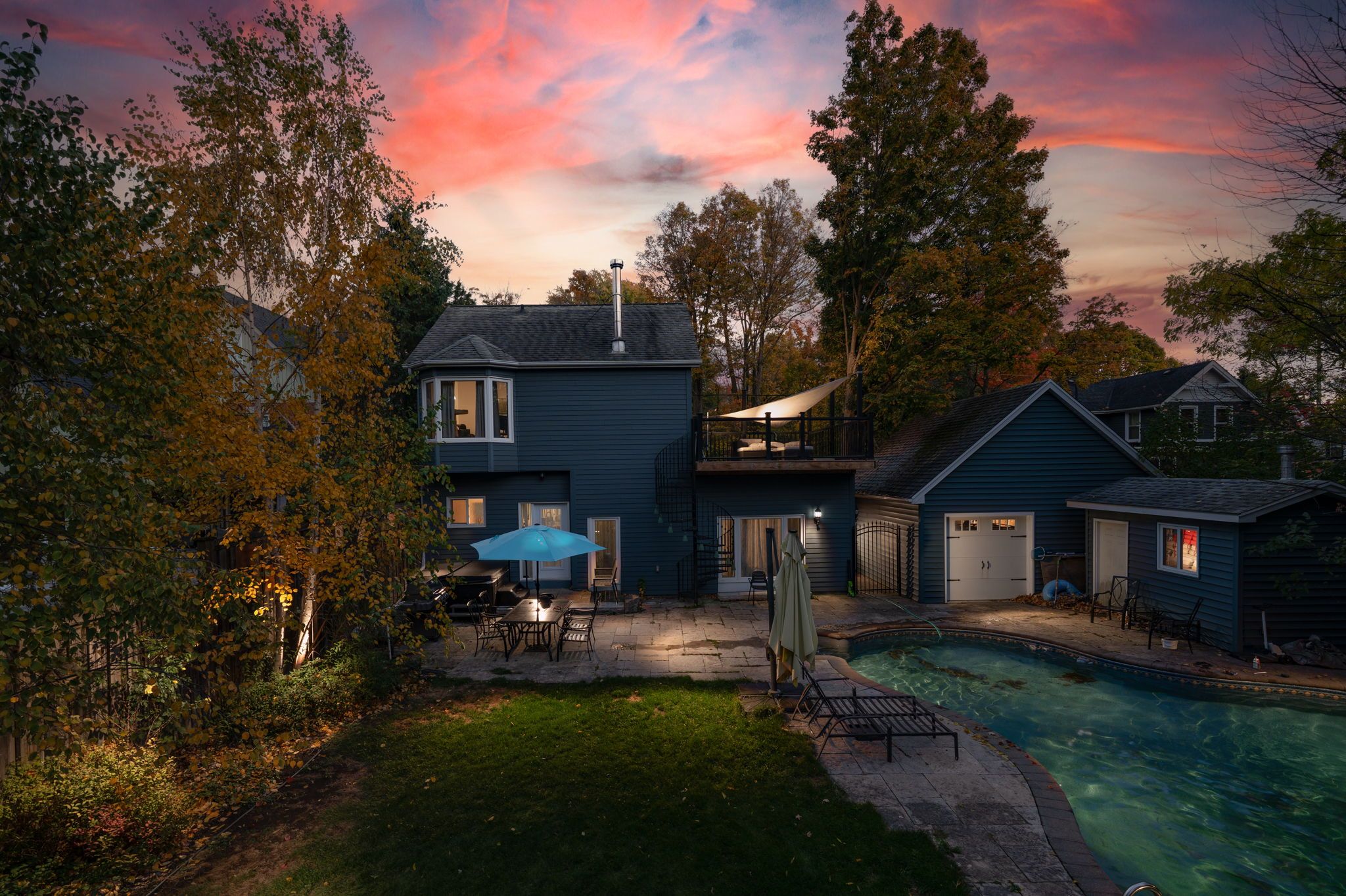 Set on a huge, mature lot backing onto a picturesque ravine, this exceptional property offers impressive outdoor living complete with a heated, saltwater in-ground pool, hot tub and beautifully landscaped grounds. A premium hardie board exterior (fibre cement product) - prized for its durability and timeless appeal and large covered front porch set the stage for this charming, heritage-designated, 4-bedroom, 3-bathroom century home, thoughtfully updated for today's lifestyle. An eye-catching exterior circular wrought-iron staircase leads to a private upper balcony with direct access to the primary suite - an architectural feature that adds both character and charm. Inside, the stunning kitchen features a large island, quartz countertops, stainless steel appliances, and multiple walkouts to separate decks. Formal living and dining rooms showcase crown molding, built-in cabinetry and pocket doors while the cozy family room offers a gas fireplace flanked by custom built-in cabinetry. An office nook and powder room complete this level. The upper level offers four bedrooms, including the primary retreat with walk-in closet, 3-piece ensuite and walkout to balcony. A main 4-piece bathroom serves the remaining bedrooms, all featuring an abundance of character. Second-floor laundry adds everyday convenience. Ideally located just steps to the go station and within a short walk to schools, downtown shops, library, cultural centre, hospital, and more, with easy highway access for commuters.
