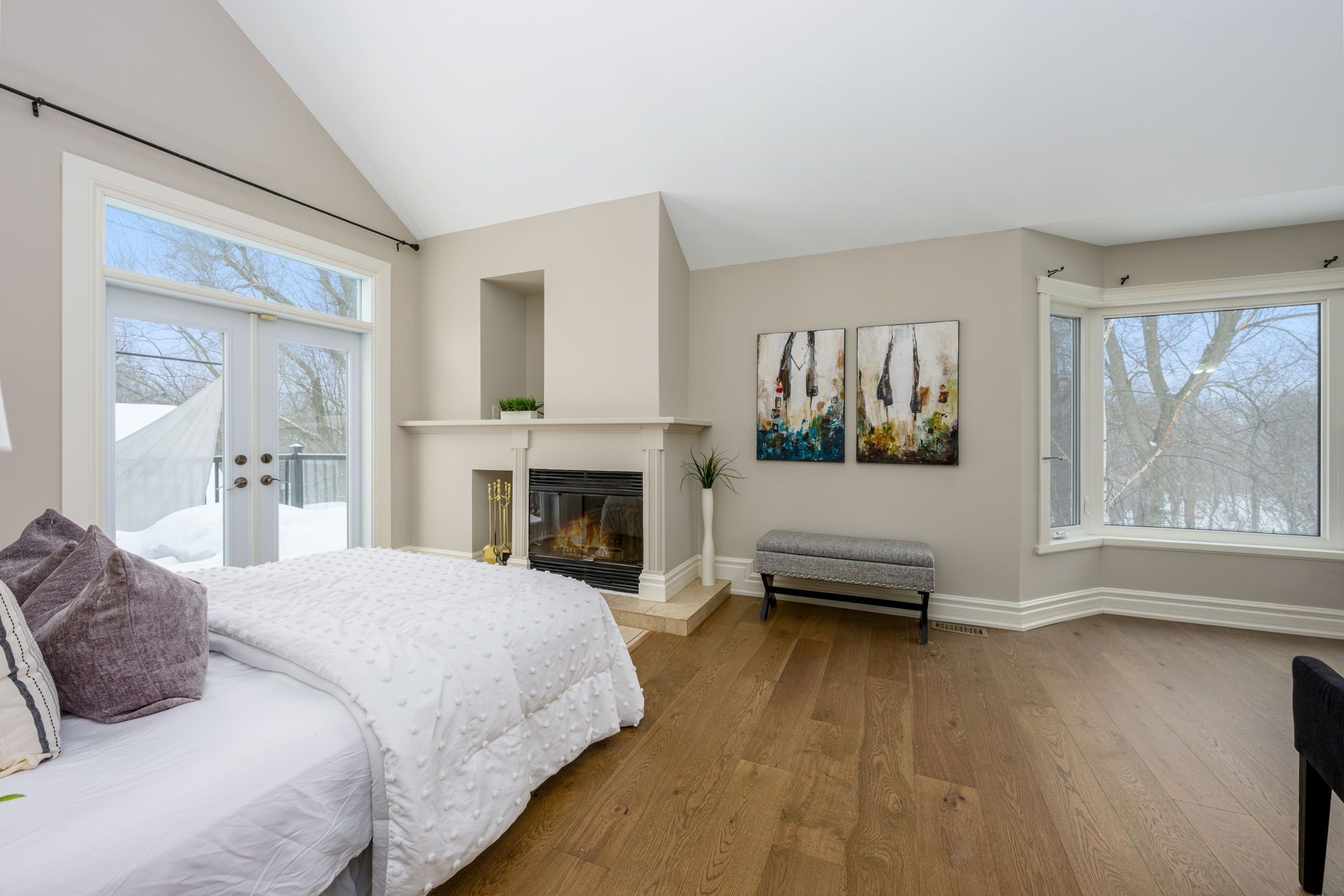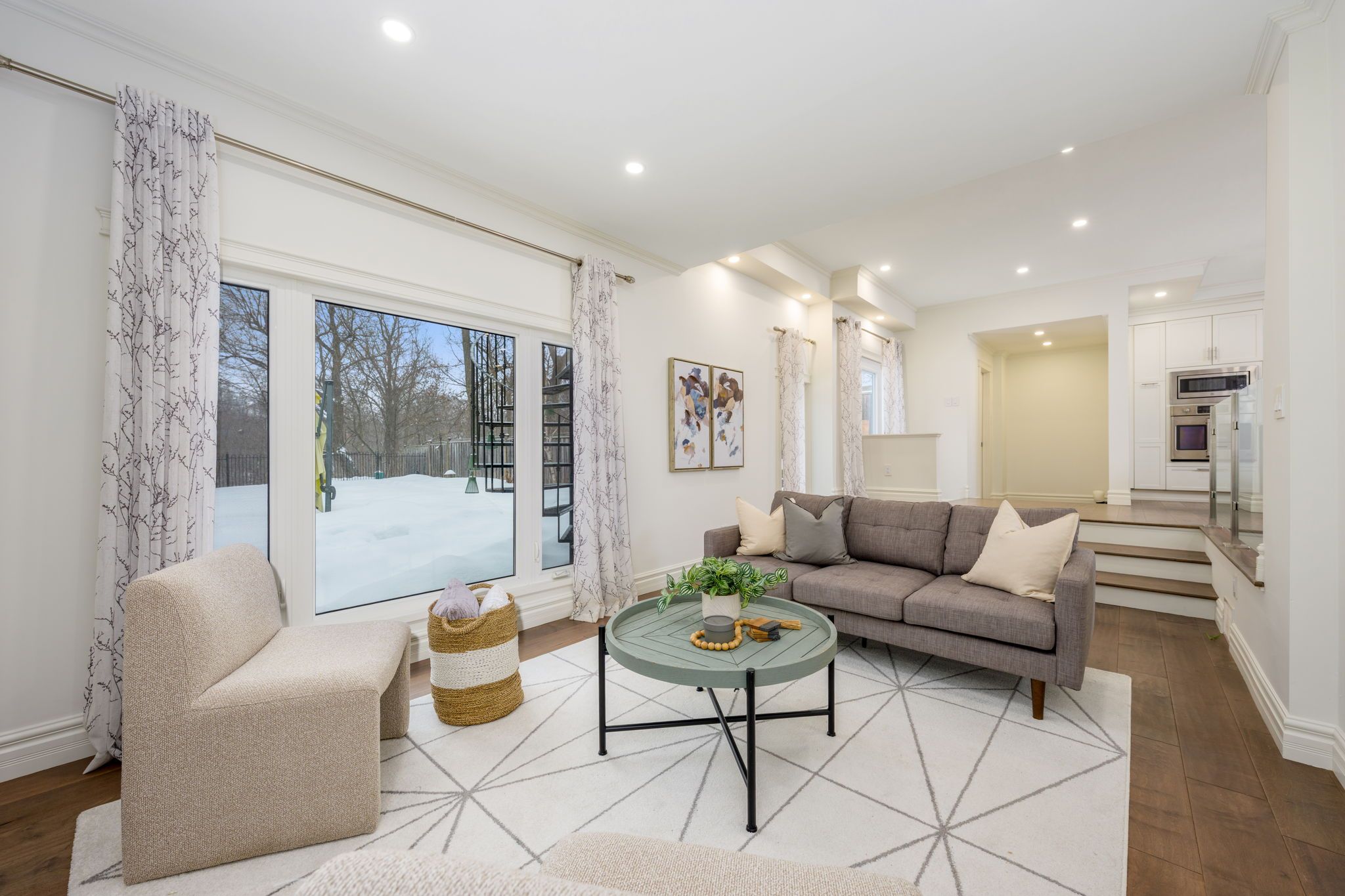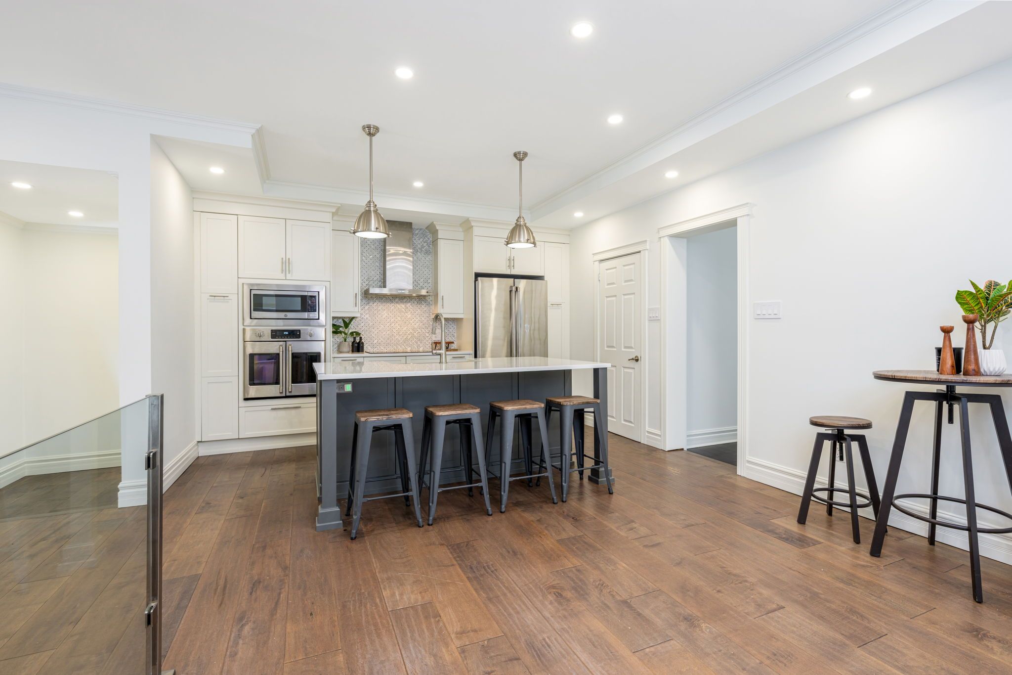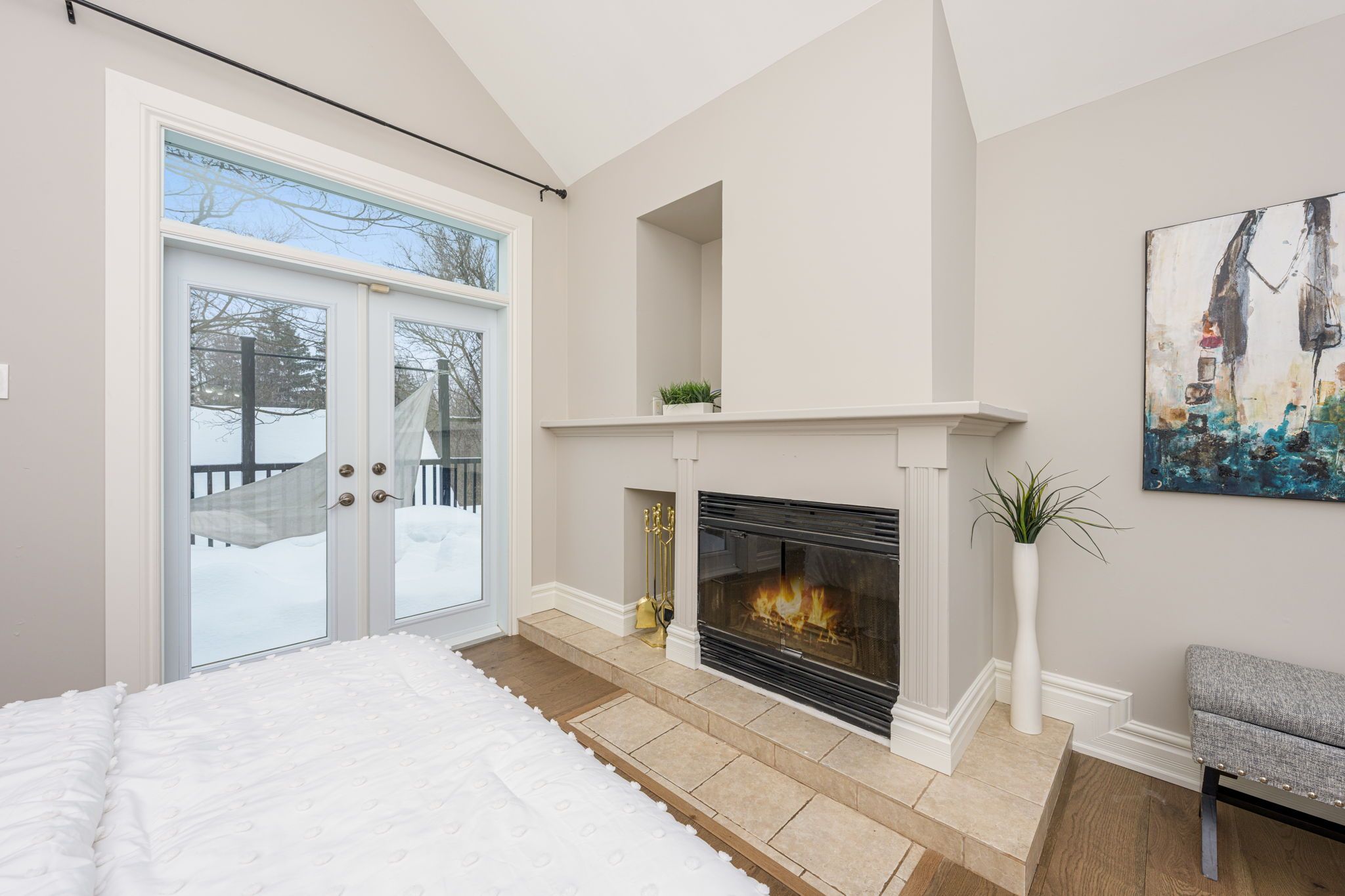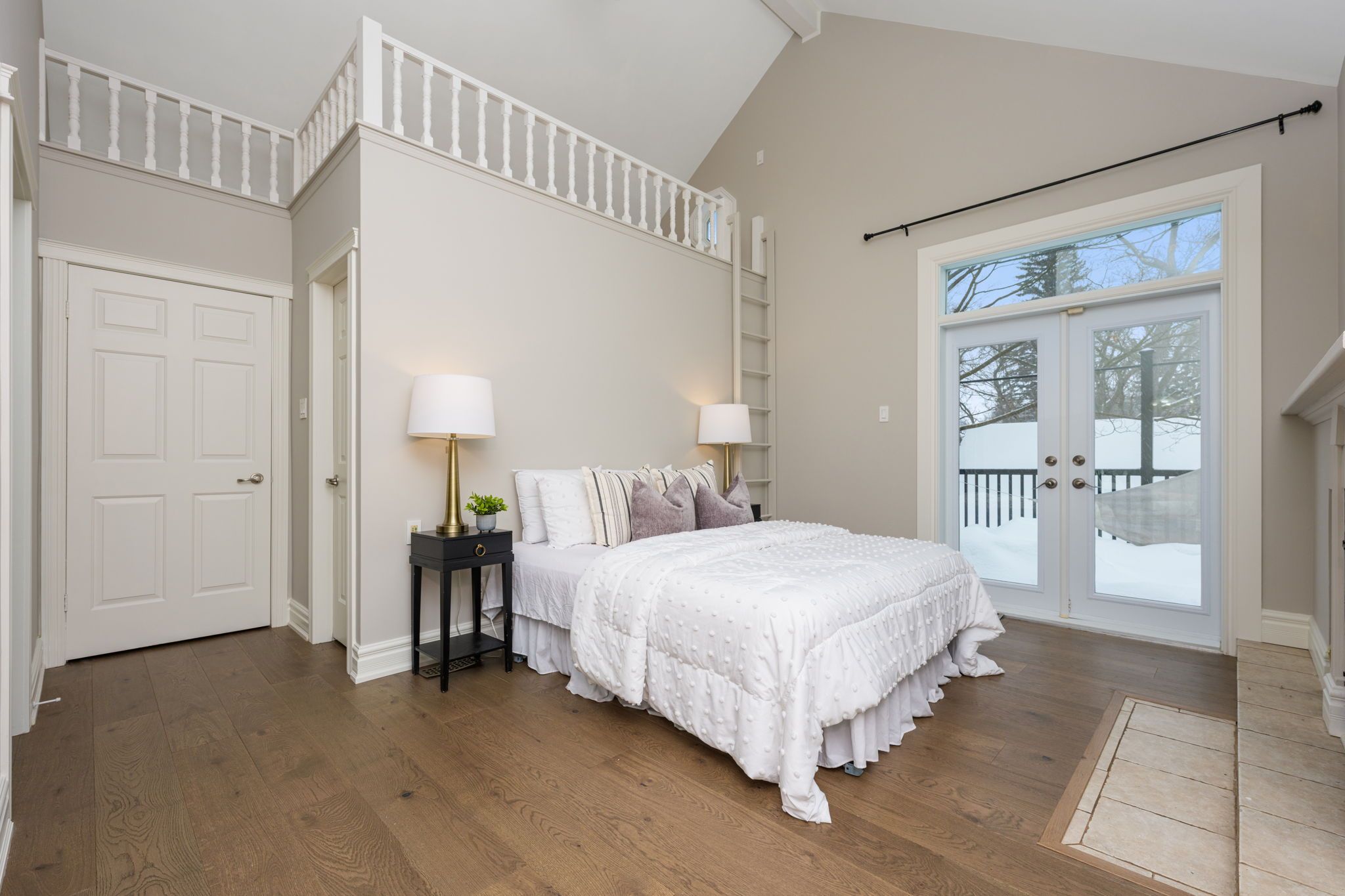 • Upper balcony access from primary suite with unique circular staircase feature.