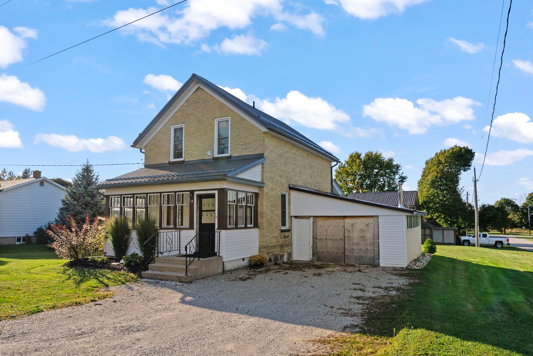 Stop! Don't click away. You have officially arrived at the one! The one you have been scouring the internet for. Don't believe me? Then let's get you booked in with your realtor to view it in person! In the meantime, we can dream about this beautifully renovated storey and half home that boasts character and top tier workmanship from years gone by while benefitting from updates like a brand new kitchen, main floor bathroom, second level laundry, stunning flooring and a massive double lot. Are you looking for a home office or home salon? The main floor bedroom can easily be converted to a home salon with existing plumbing in the next door bathroom and back home entrance from the attached garage, or simply soak in the sights out the window of your spacious backyard. The massive primary suite is located on the second level and has enough space for your walk in closet, california king bed, a reading nook and cartwheels. Outside, enjoy the attached garage and generous double lot offering plenty of outdoor space and potential for future severance. Living here you will be conveniently located less than a block from the ball diamonds, soccer fields, pavilion, arena, community centre, library and medical centre, as well as walking distance to shopping and dining downtown. If you haven't done so already, reach out to your realtor to view your new move-in ready home that is full of contemporary charm and lot severance potential at 15 queen st e, clifford.