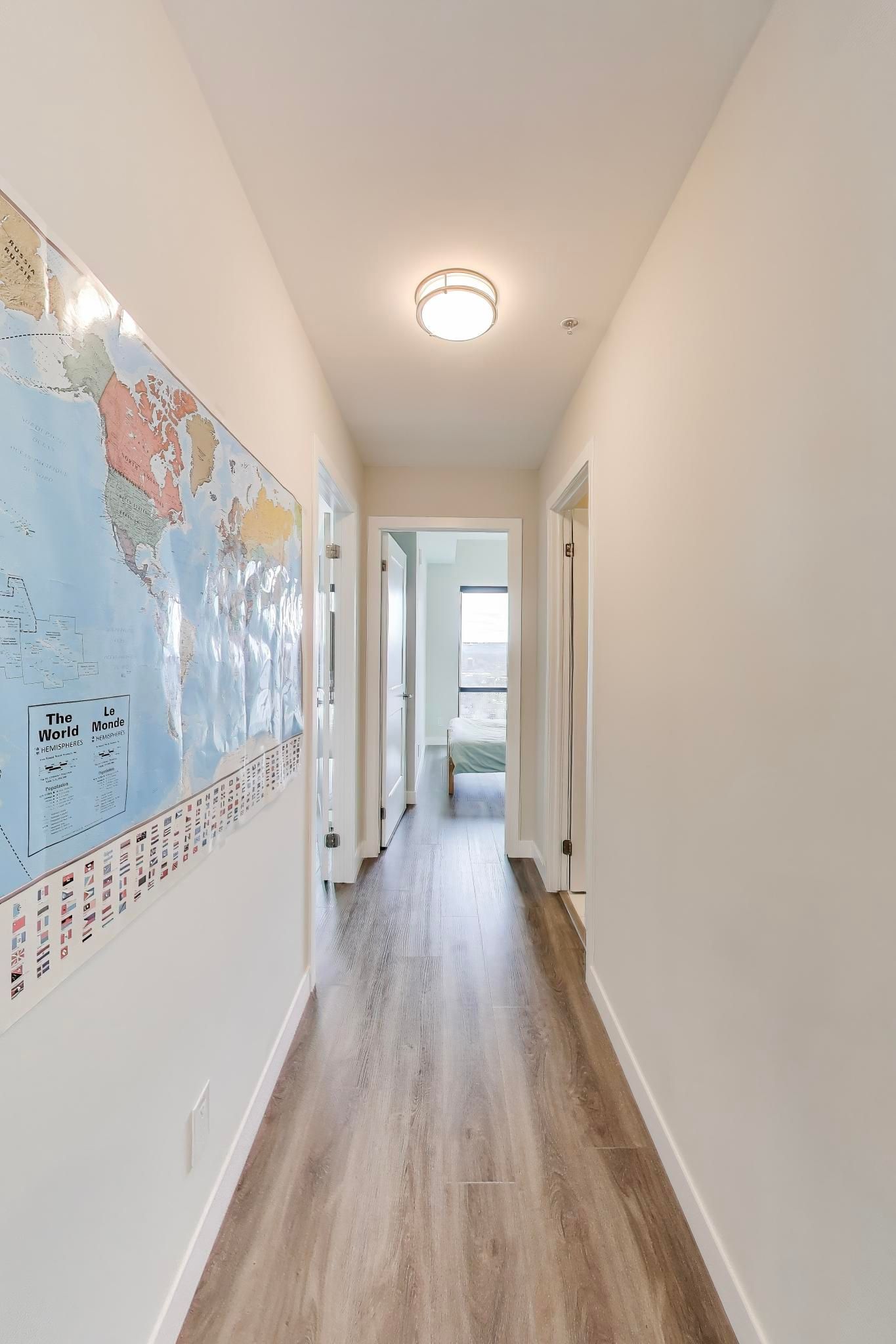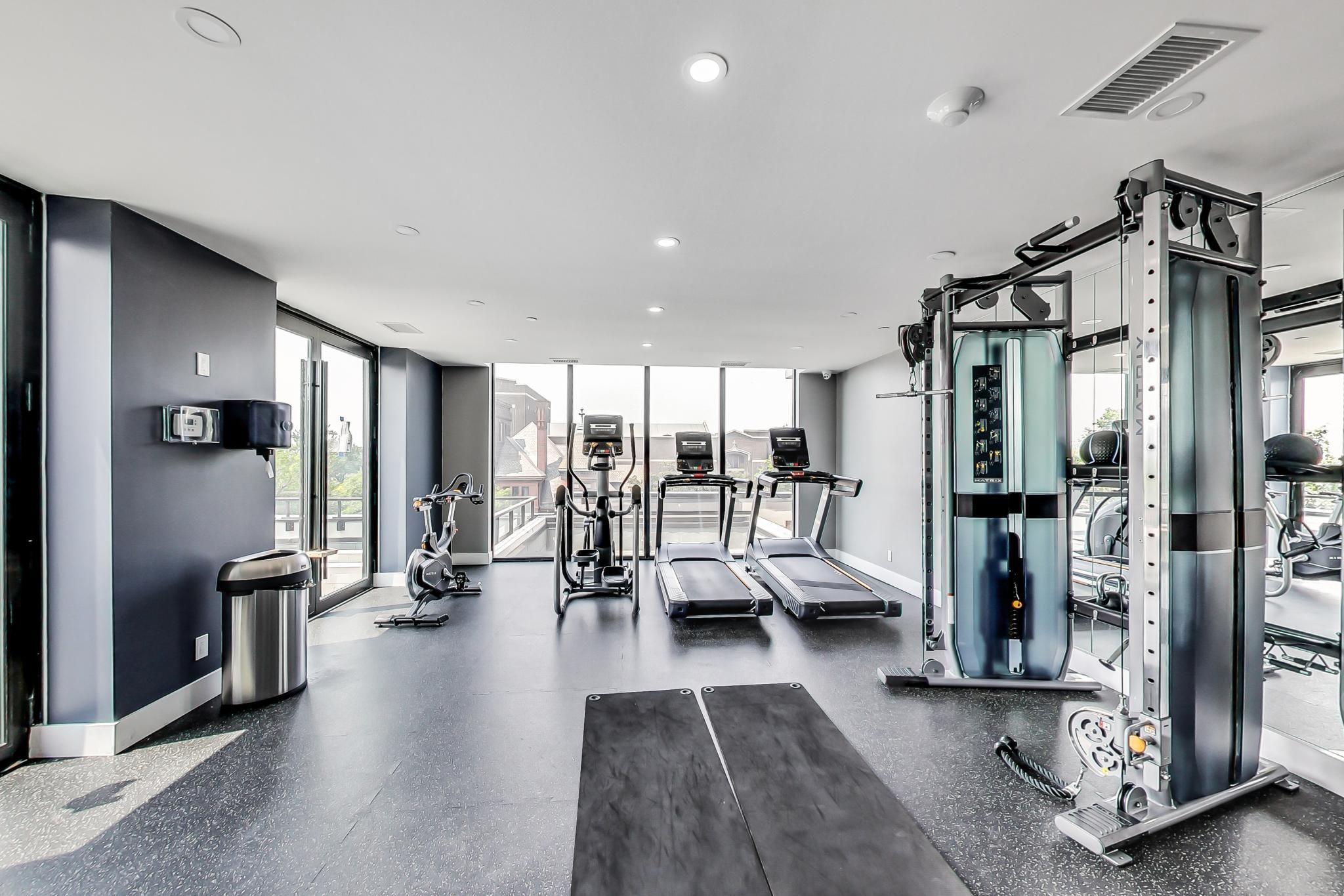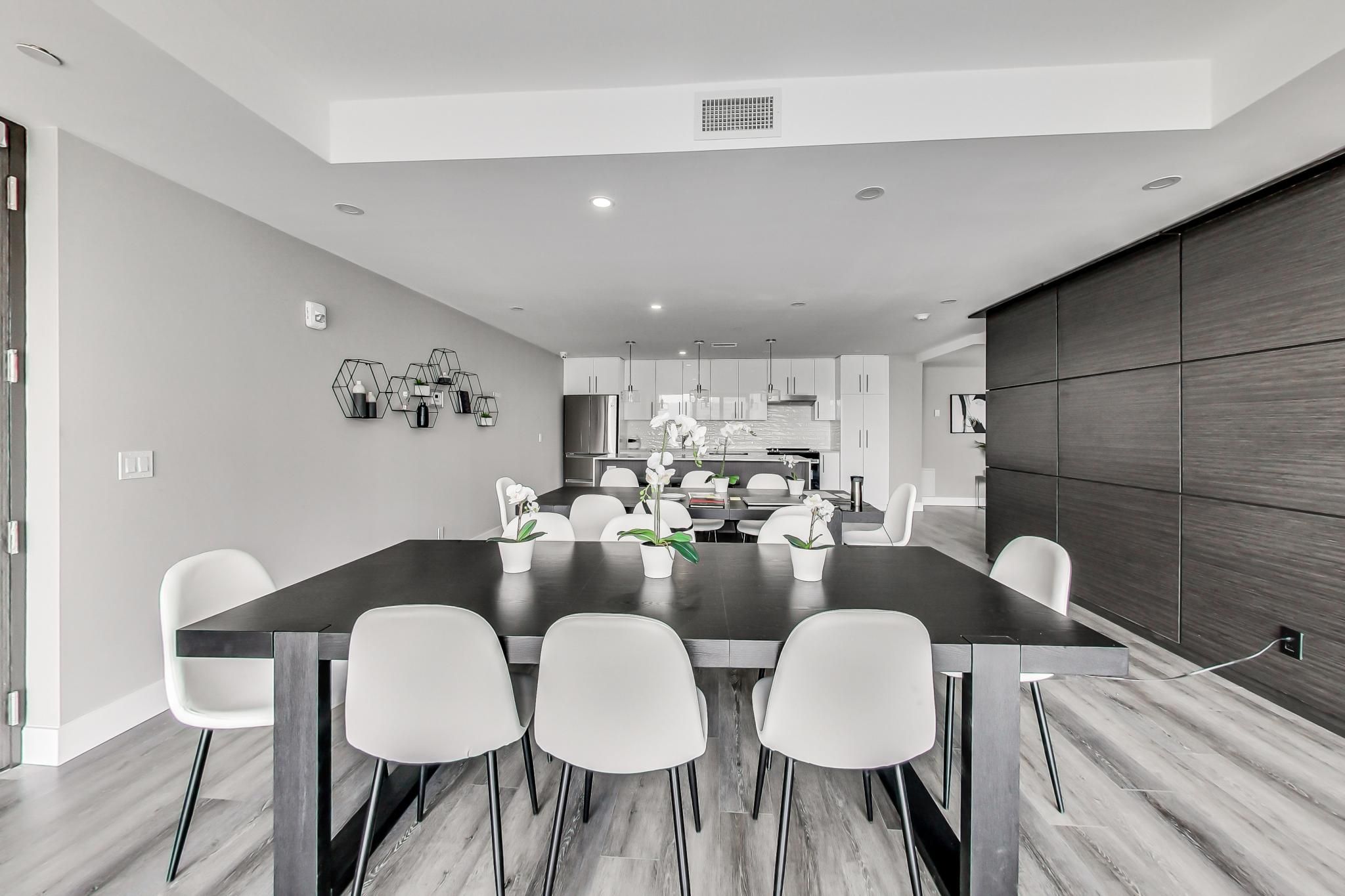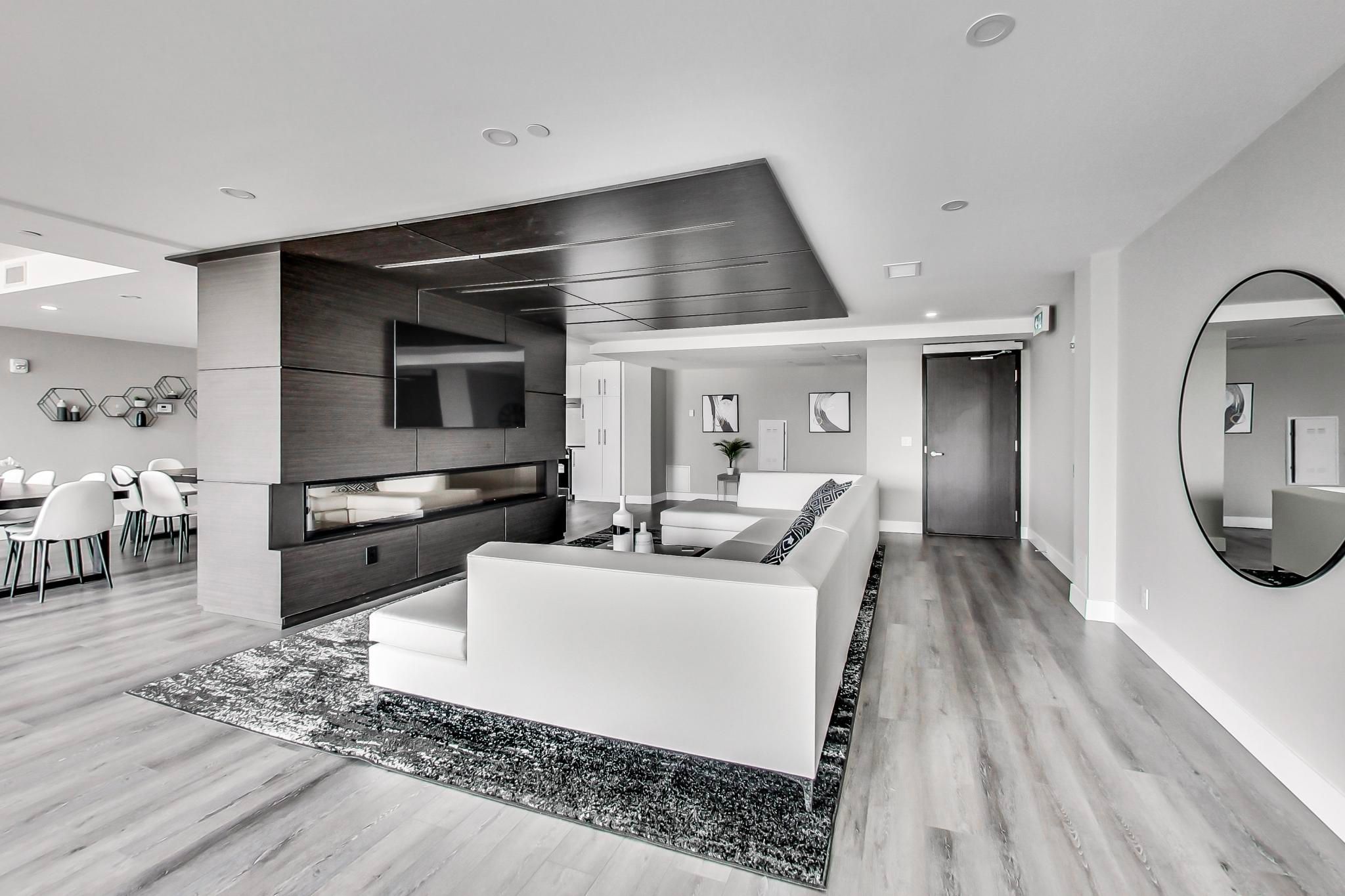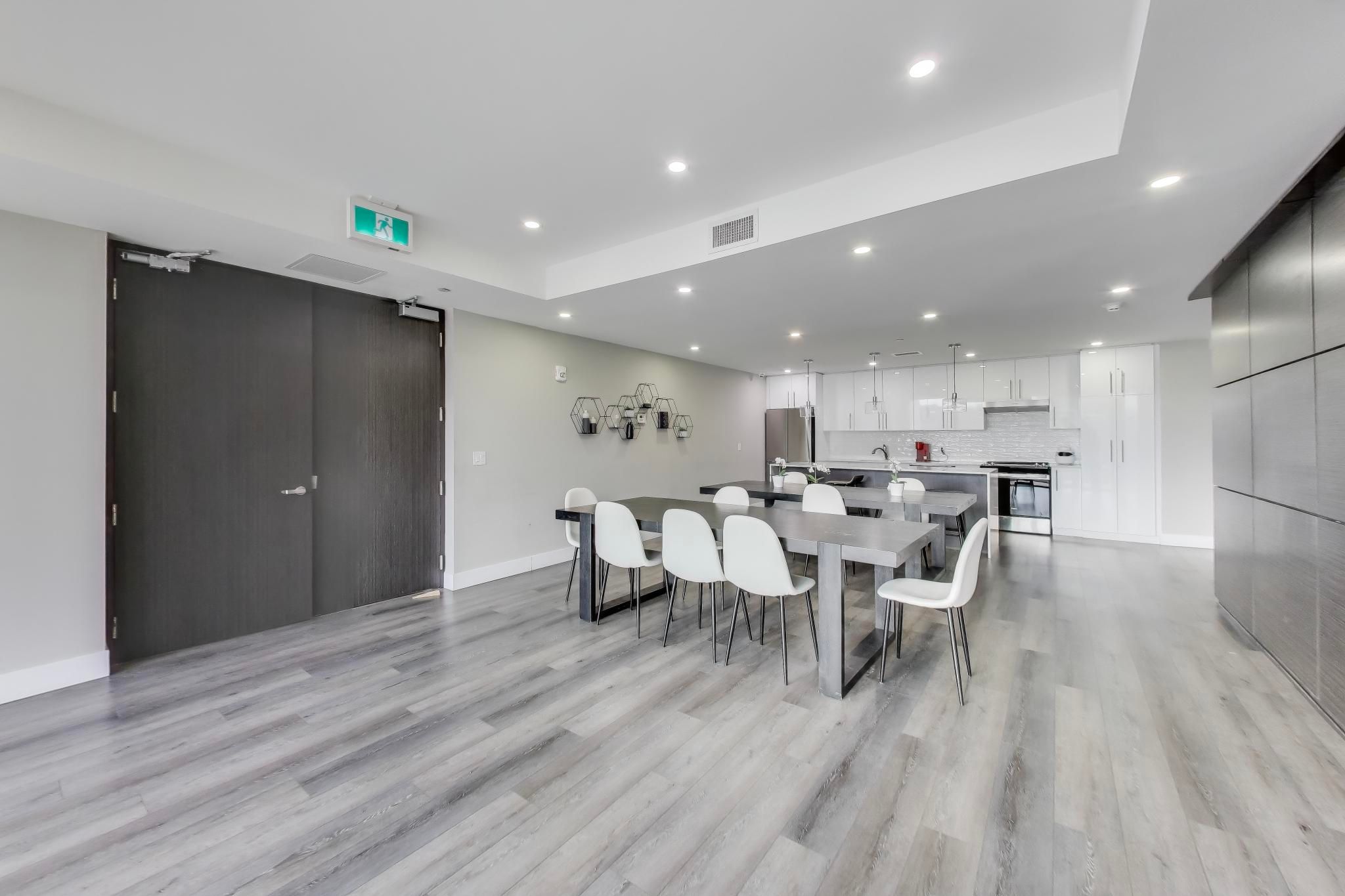 • Stylish open-concept layout with 9-foot ceilings and laminate flooring throughout.