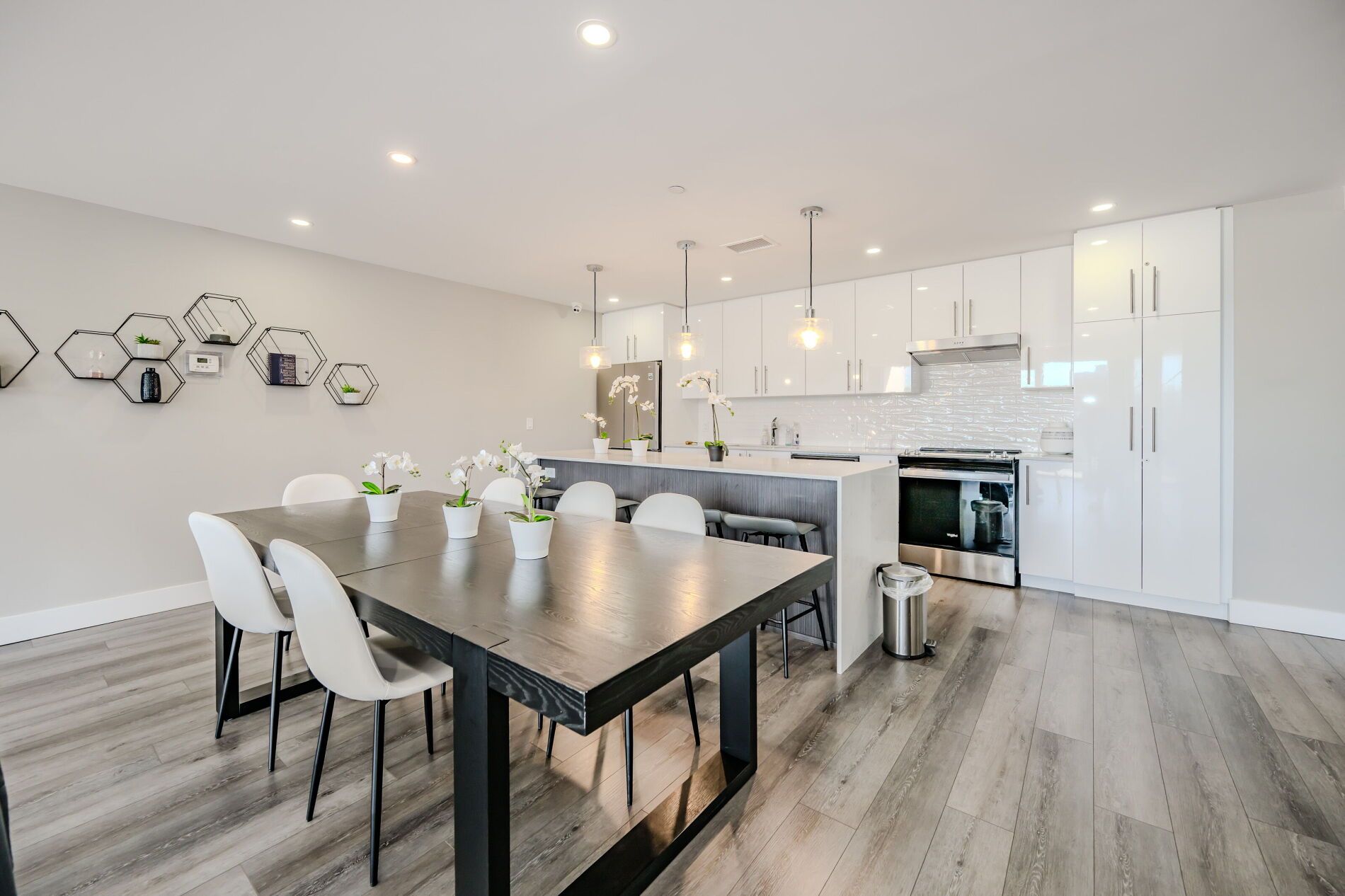 • Durable vinyl flooring and stainless steel appliances included.