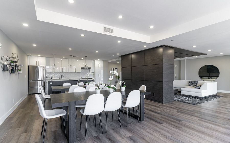 • Upgraded kitchen with stainless steel appliances and high ceilings.