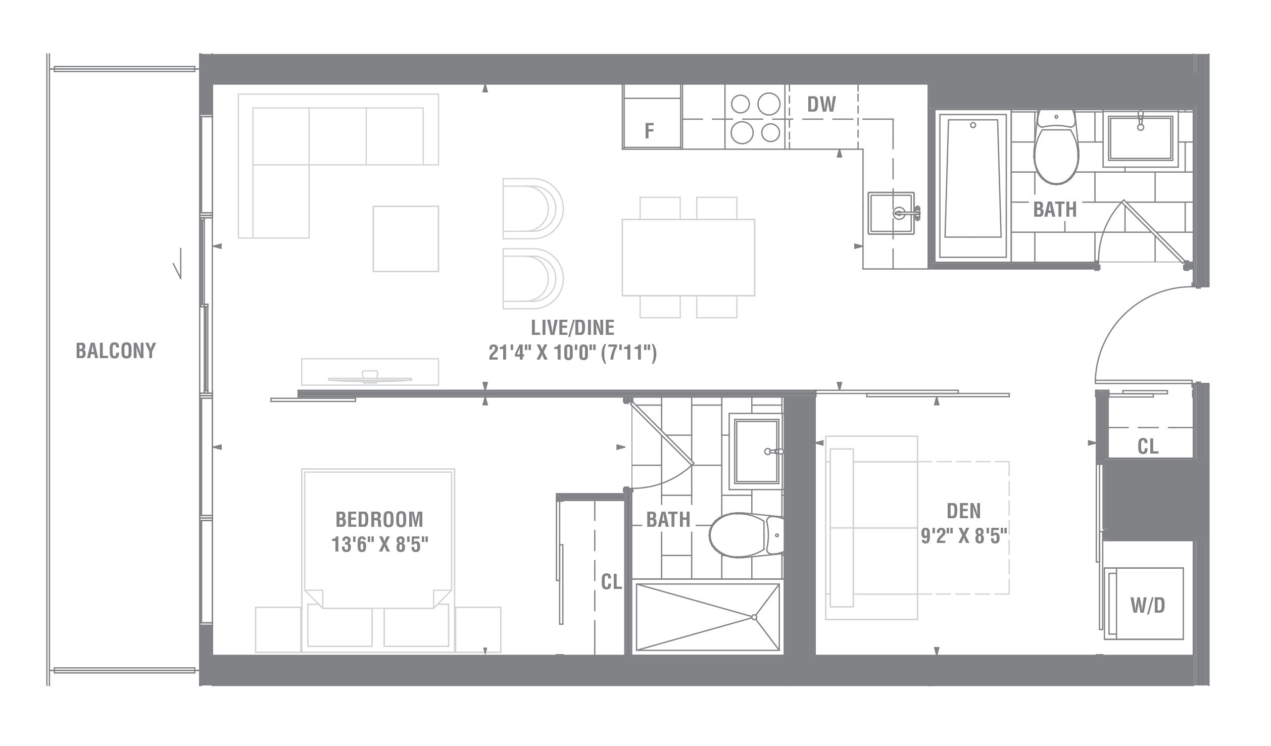 • Stylish 1 bedroom plus den with 2 full baths.