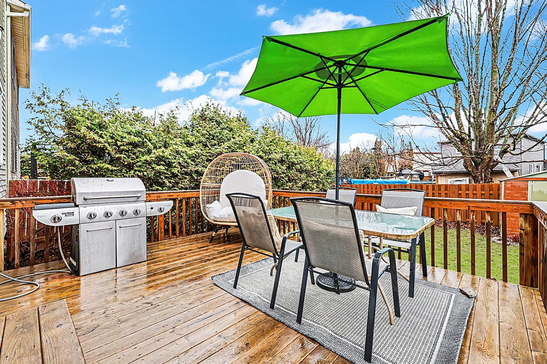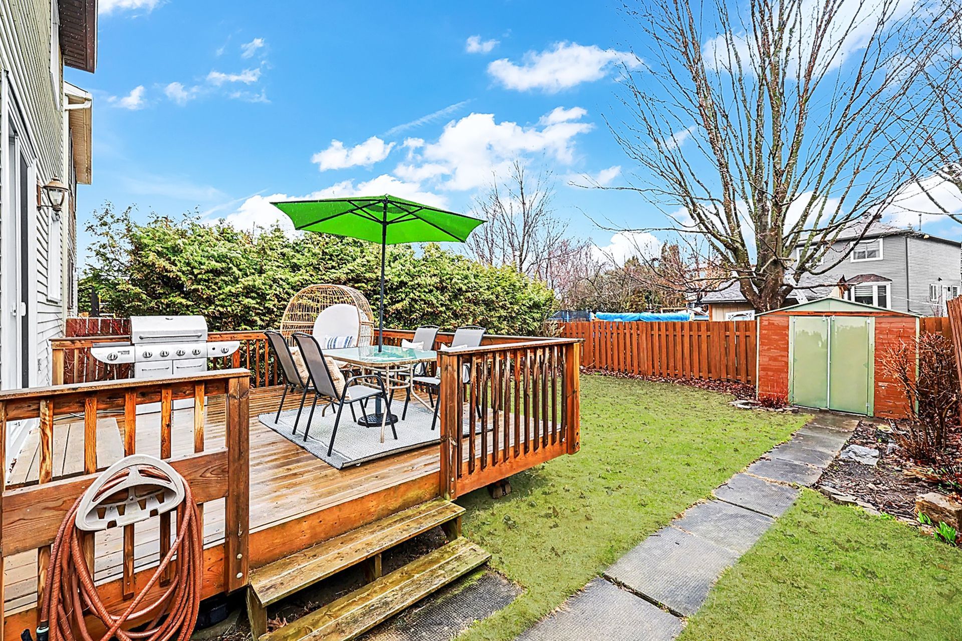 • Large raised backyard deck ideal for relaxing evenings and gatherings.