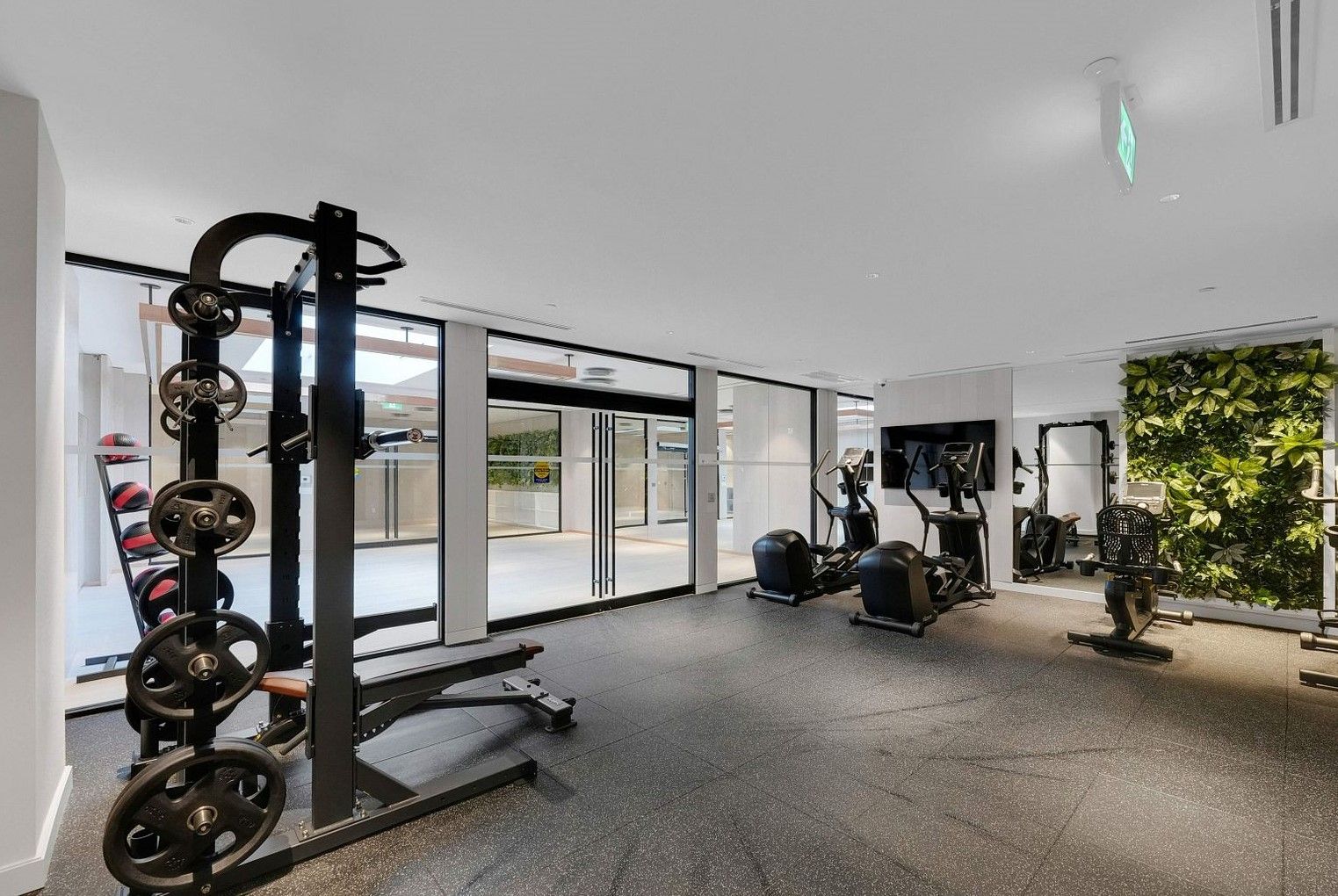 • Modern amenities include fitness center, party room, and outdoor BBQ courtyard.