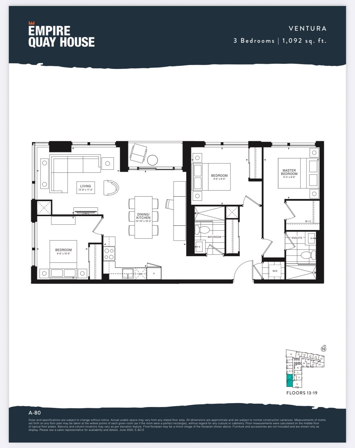 Experience the best of waterfront living - be the first to live in this brand new, sun-filled, one of the largest 3 bed corner unit (1092sq. Ft) with parking and locker included. Enjoy beautiful south-west lake views directly overlooking lake ontario. Featuring floor-to-ceiling windows and laminate flooring throughout, this bright and airy home is flooded with natural light, creating an inviting atmosphere from morning to evening. This premium corner unit offers a spacious, functional layout with separate living and kitchen/dining areas for added comfort and versatility, notably larger than other 3 bed units in the building, ideal for professionals or families seeking waterfront living. Located just moments from to sugar beach, distillery district, st. Lawrence market, union station, george brown waterfront campus and scotiabank arena. Amenities to be completed: fitness center, party room with a stylish bar and catering kitchen, outdoor courtyard, bbq stations and more.