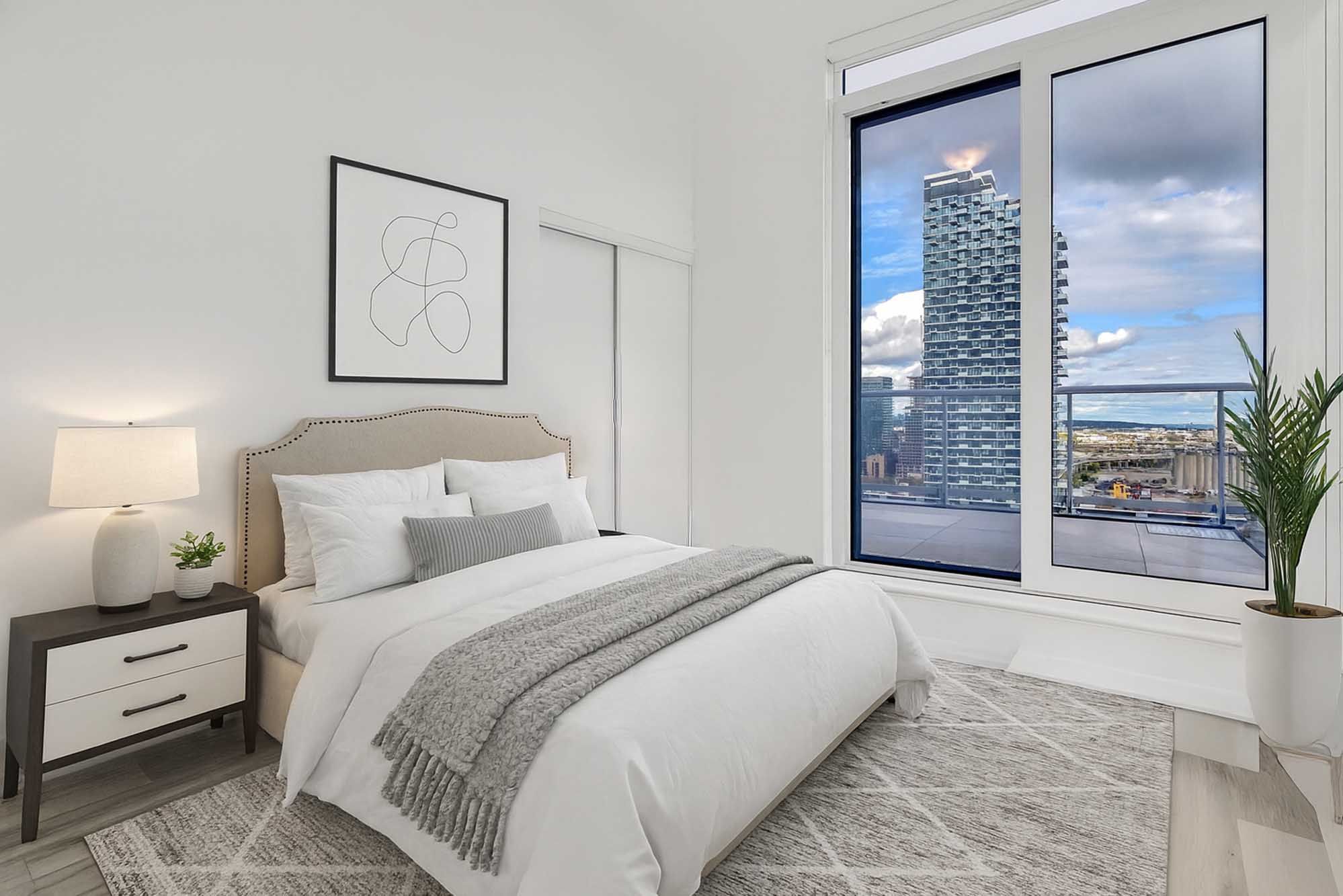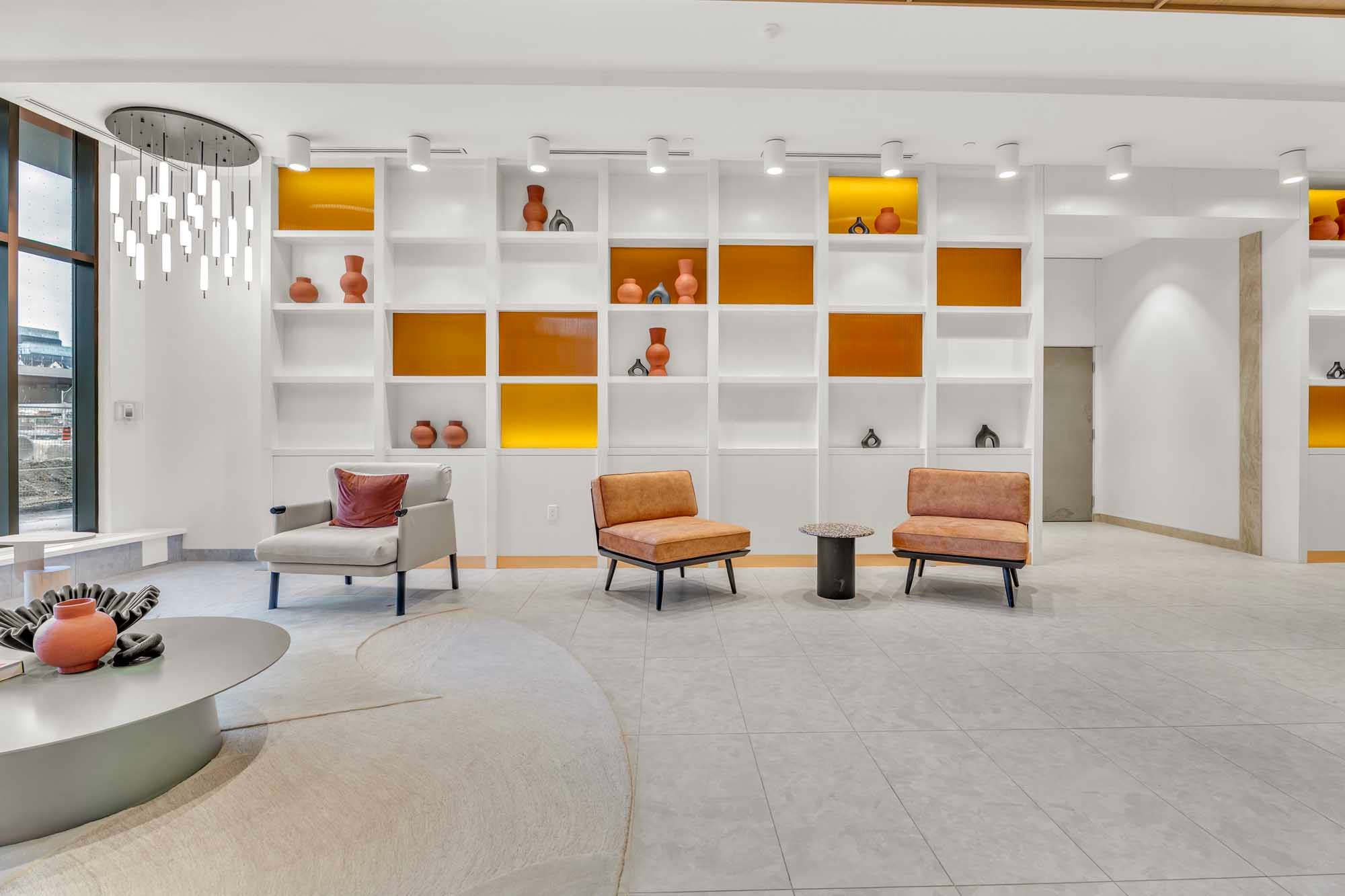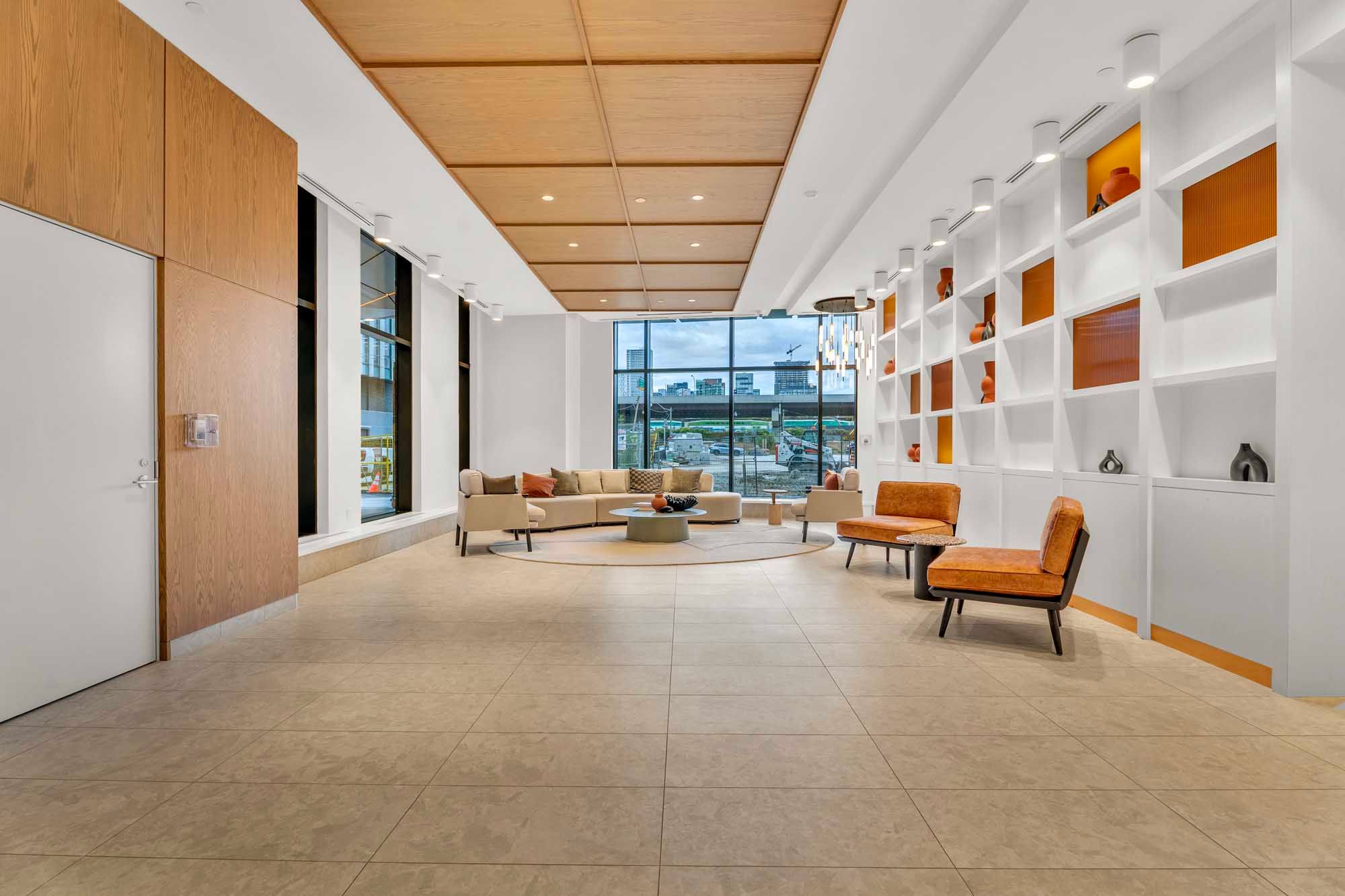 • Bright interiors with 10-foot ceilings and floor-to-ceiling windows.