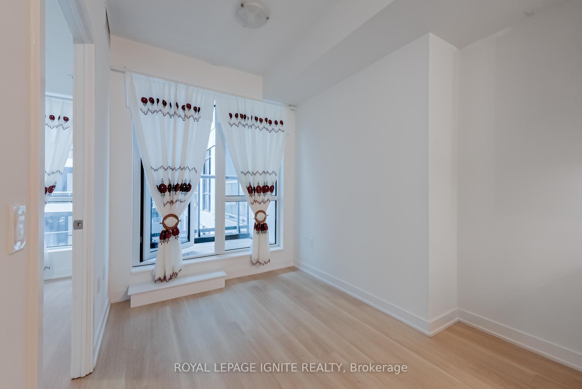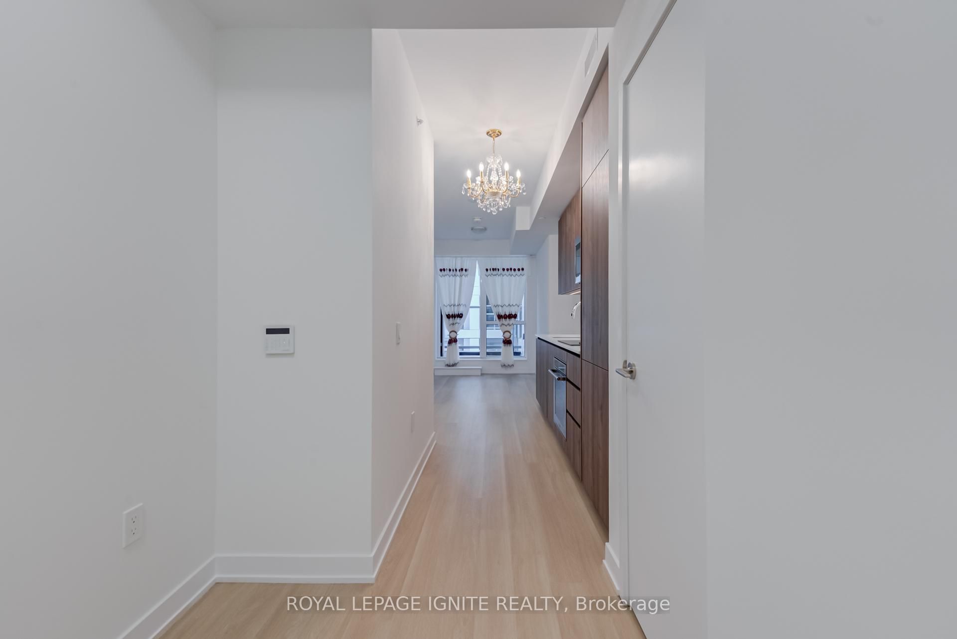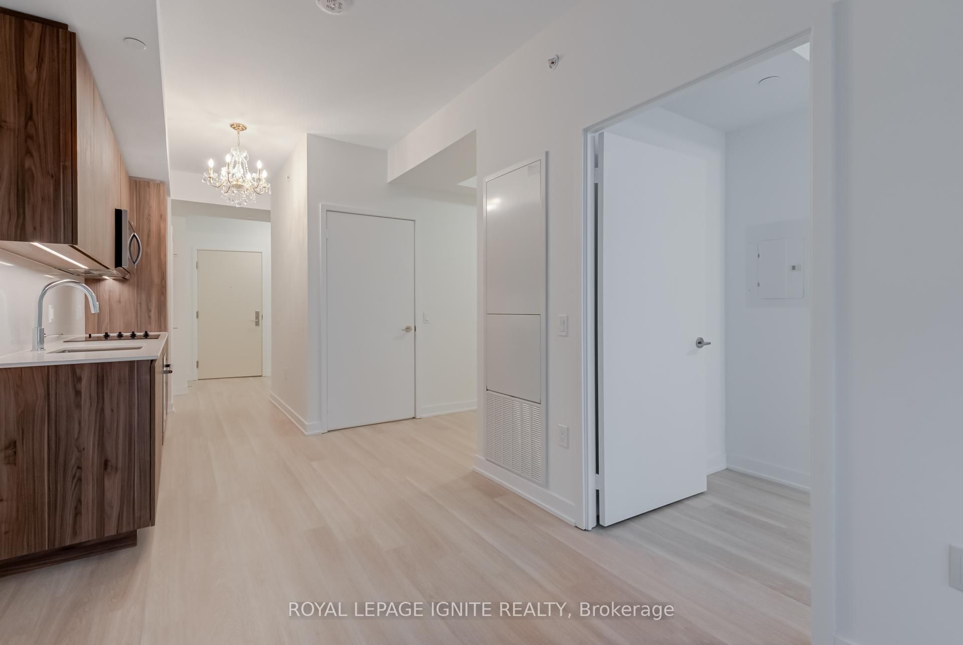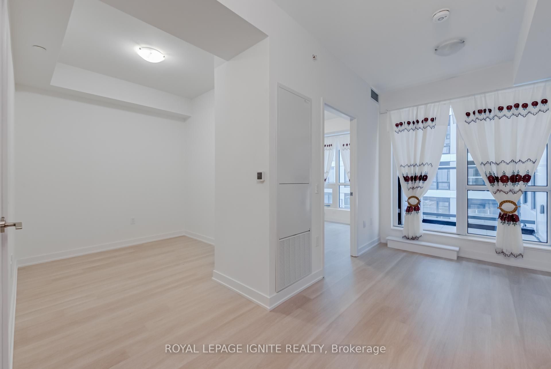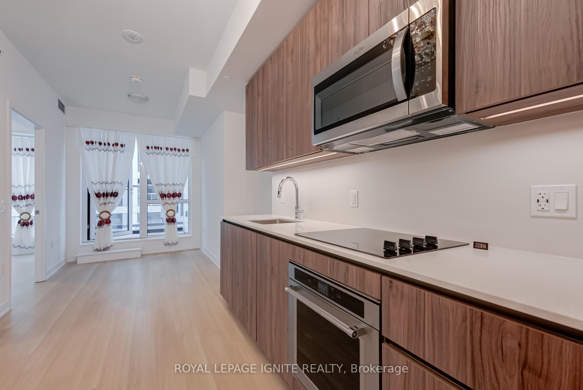 • Spacious one-plus-den unit with a modern living and dining area.