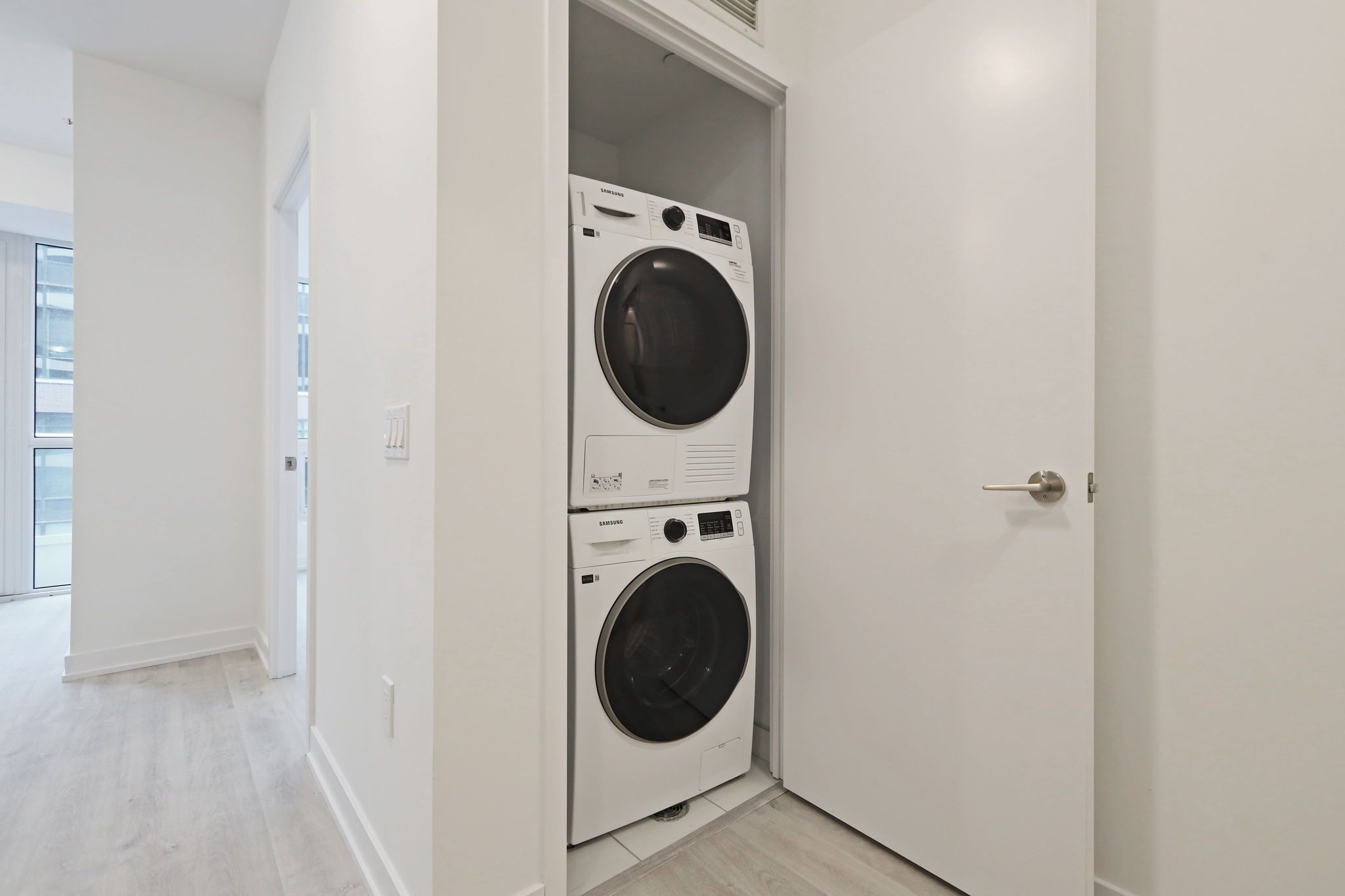 Live steps from sugar beach in this well-planned 2-bedroom, 2-bath condo with parking at 15 richardson st #927. A private entry hallway creates welcome separation before the suite opens into an inviting open-concept living/dining area with southwest light and a juliette balcony. The kitchen delivers a polished, modern look with european-style flat-panel cabinetry, under-cabinet lighting, soft-close hardware, composite stone counters and backsplash, and an integrated appliance package including a built-in fridge with bottom freezer, smooth cook-top, convection oven, panelled dishwasher and microwave hood-fan. Both bedrooms are fully enclosed with real doors, and the second bedroom works easily as an office, guest room or fitness space. Two full baths, in-suite front-loading laundry and secure card-access parking round out the essentials. The building offers 24/7 concierge and security, a fitness centre, yoga studio, co-working spaces, a boardroom and a shared rooftop terrace with bbq. All of this in a south core location that puts the waterfront, lakefront trails, st lawrence market, restaurants, transit and quick highway access within easy reach.