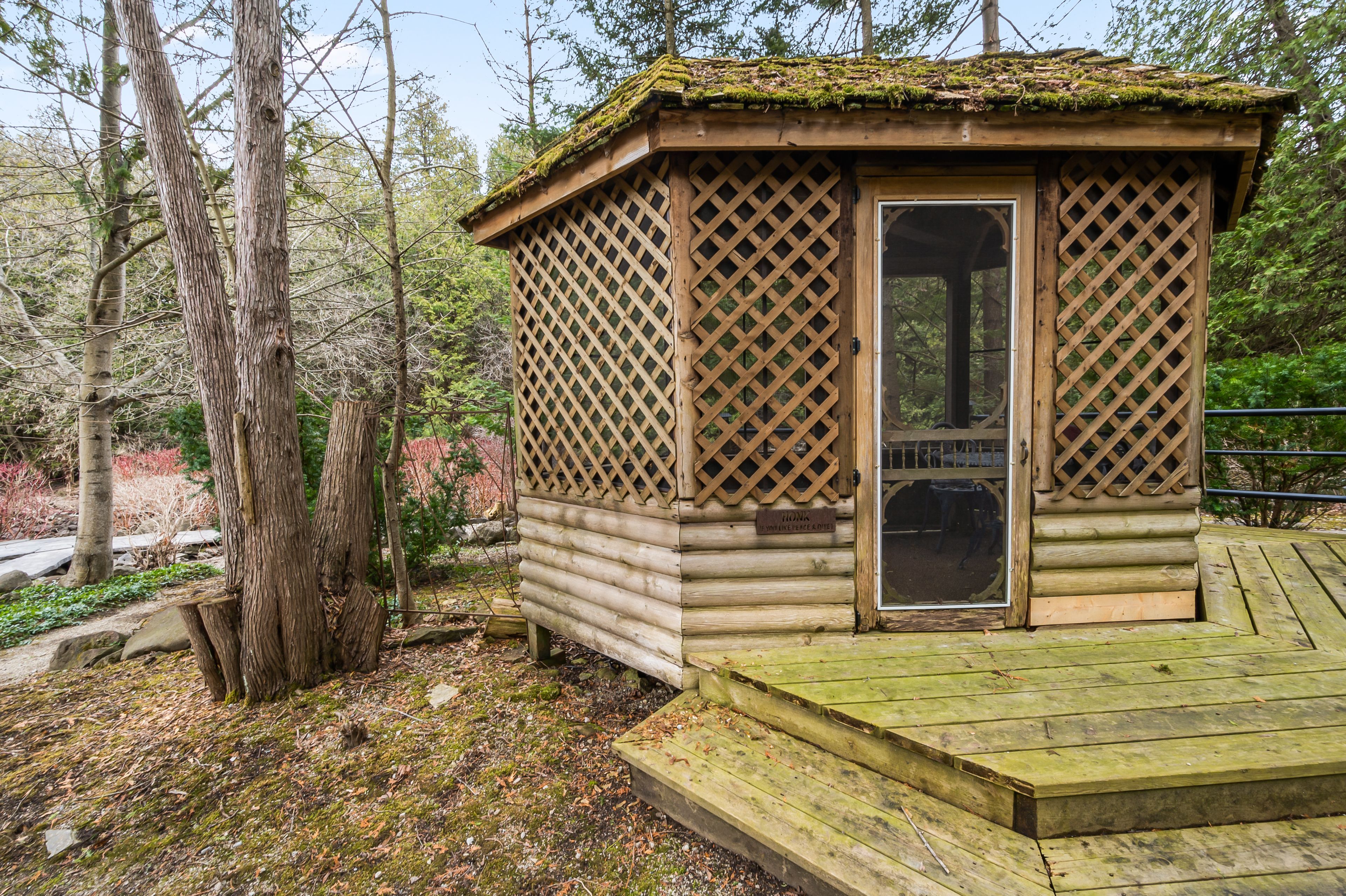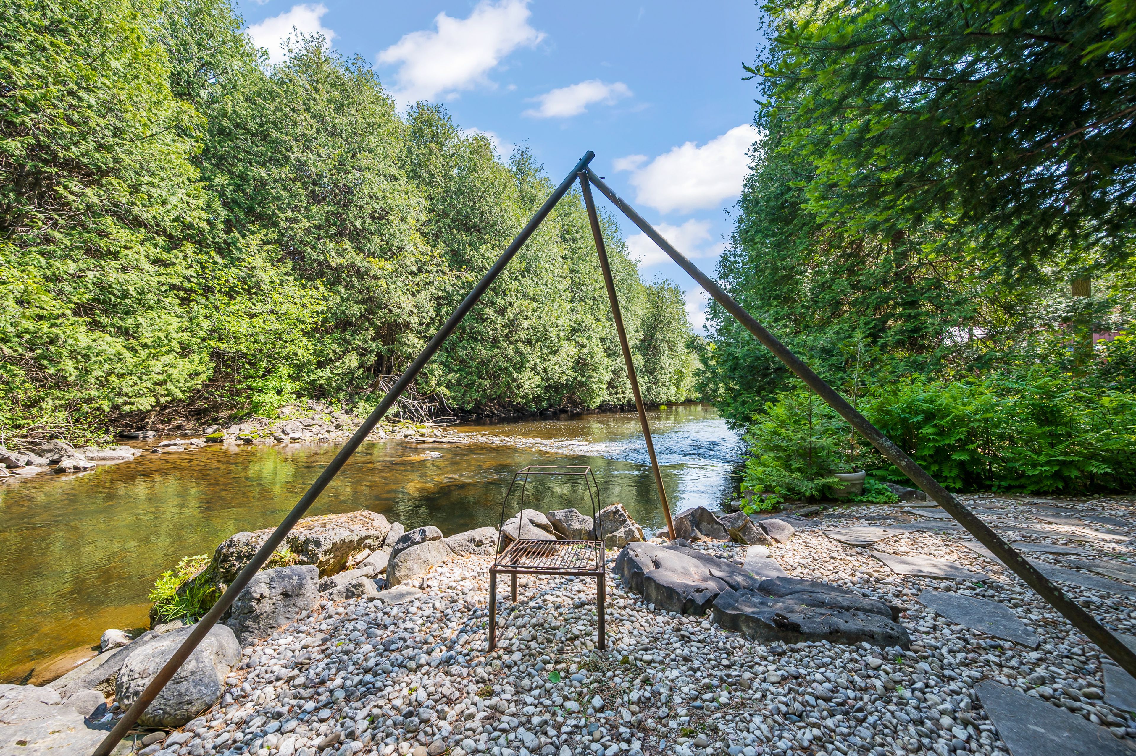 Tucked away on a secluded road, 15 river bluff path offers an extraordinary sanctuary blending natural beauty, creative energy, and quiet seclusion. Set on 13 acres with over 750 feet along the eramosa river, this property presents a once-in-a-lifetime opportunity, with many unique features grandfathered in by the grca. The winding drive leads through a forest of mature trees to an almost otherworldly scene where a breathtaking infinity pool appears to spill into the river, surrounded by tranquil vistas and lush vegetation. Enjoy the scenery from the tiered deck, relax in the indoor hot tub, or watch wildlife such as deer, herons, and turtles. The private trail system leads to whimsical outbuildings, including a screened wooden pergola, a japanese maple zen garden, and an outdoor privy. Once owned by a renowned canadian naturalist, the property brims with creativity and inspiration. Inside, the great room captivates with soaring ceilings, stained glass accents, rustic wood beams, and a dramatic gas fireplace. A wall of windows connects the indoors to the breathtaking river view. The adjoining dining nook is perfect for gatherings, while the spacious kitchen features ample storage, a skylight, and an iconic aga gas cooker. The main floor includes a vaulted-ceiling bedroom, a dressing/hobby room, two three-piece bathrooms (one wheelchair accessible), and a large laundry room. Upstairs, a loft-style theatre room provides an ideal space for entertainment, and two additional bedrooms share an impressive four-piece bathroom with heated floors and a spacious walk-in glass shower. With a two-car garage and an intercom system throughout, this retreat guarantees comfort and connectivity. Despite its privacy, its just minutes from rockwoods amenities and easily accessible to guelph, milton, and pearson airport. 15 river bluff path is more than just a homeits a legacy property rooted in nature and creativity, where every moment feels extraordinary.