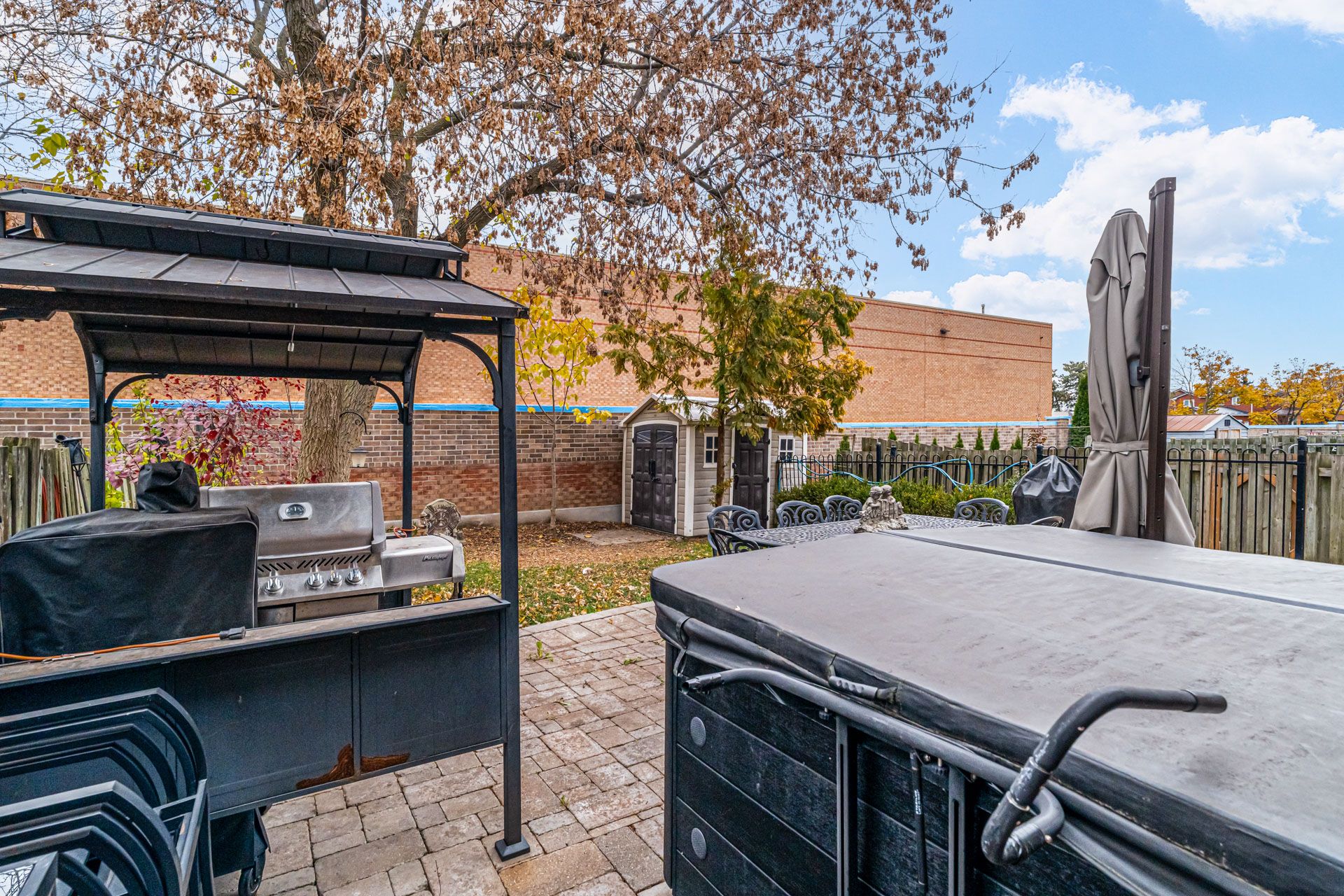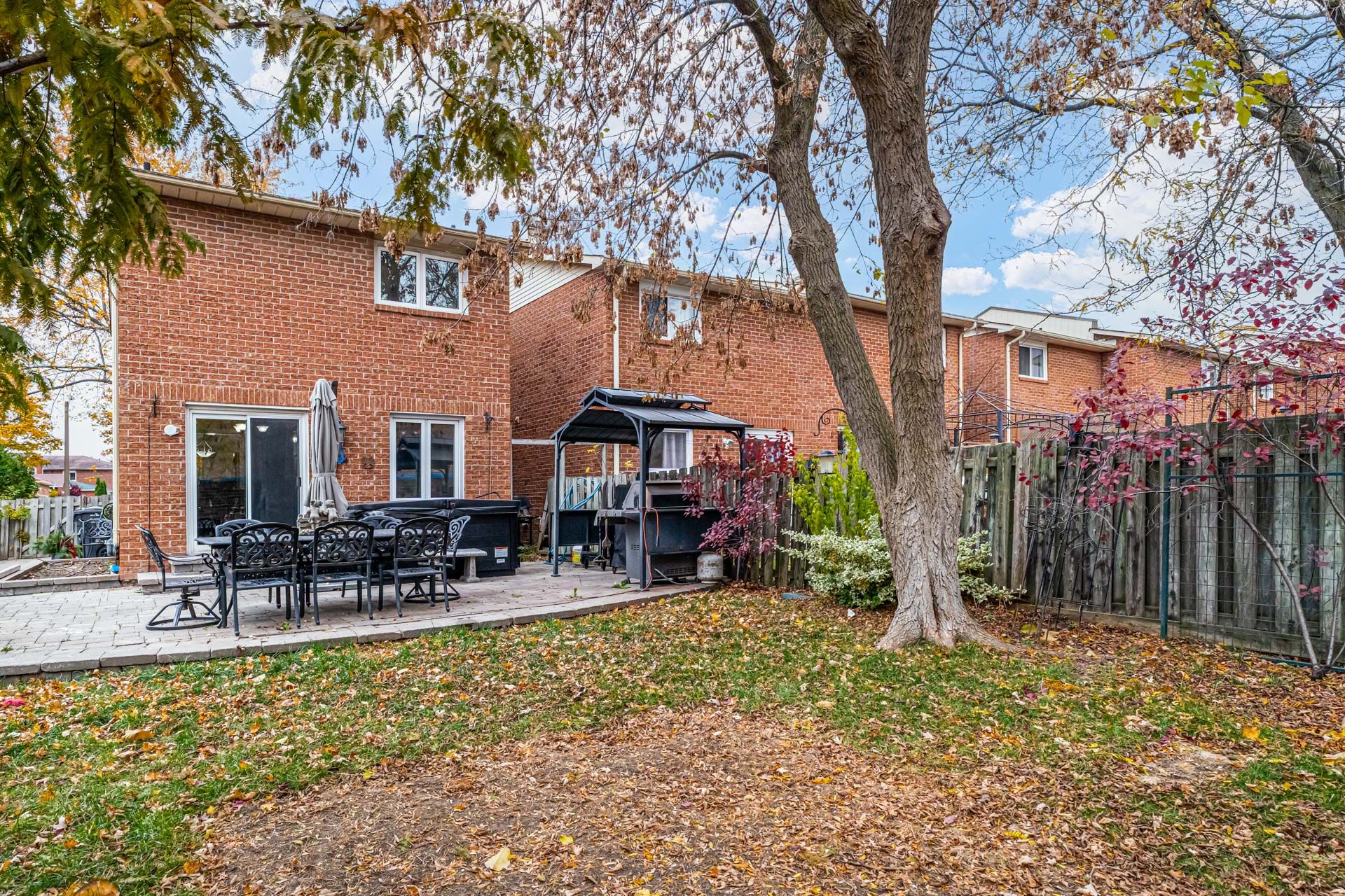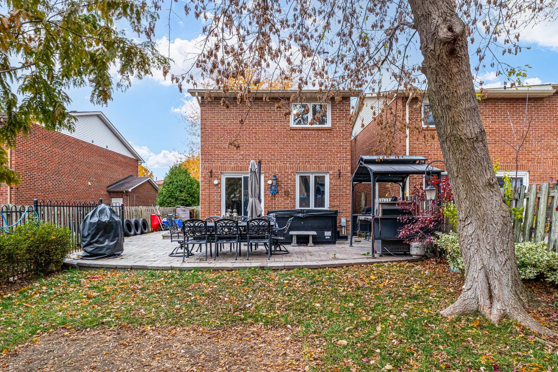 • Large landscaped backyard with a stone patio, great for gatherings.