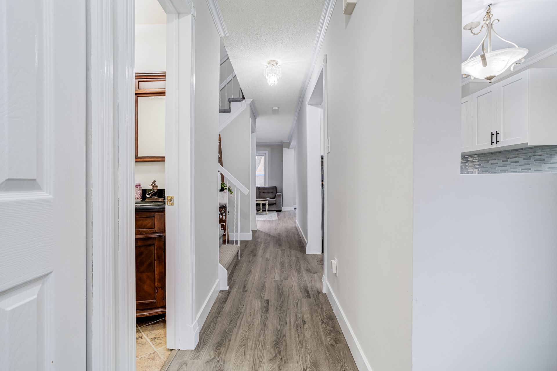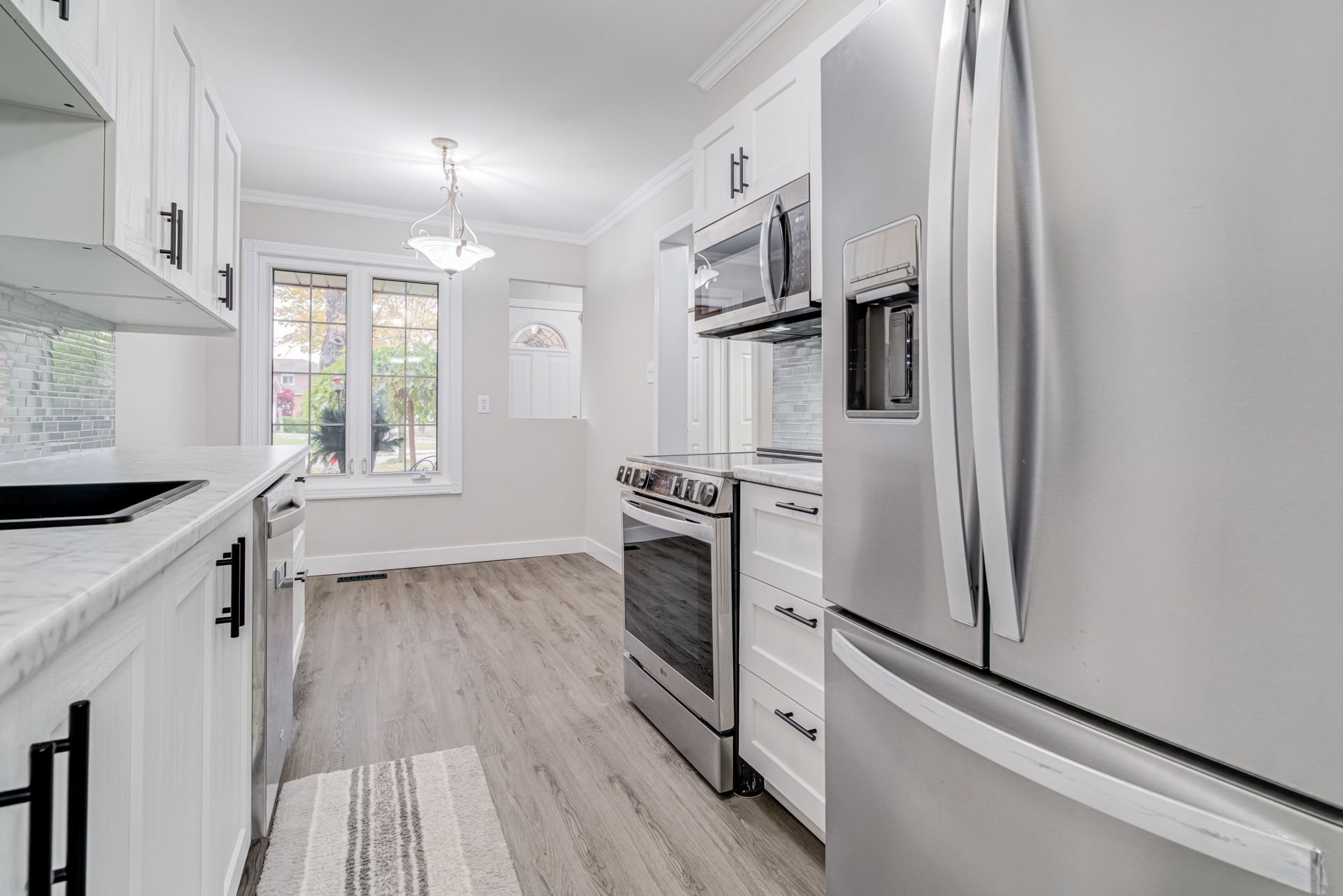 Stunning fully renovated 3-bedroom semi-detached home! Welcome to this beautifully updated two-storey semi-detached home featuring a modern, open-concept design and high-end finishes throughout. Every detail has been thoughtfully considered - from the brand new stainless steel appliances and new flooring throughout, to the elegant crown moulding that adds a touch of sophistication. The bright and spacious living room includes a cozy gas fireplace, perfect for relaxing evenings. The newly finished basement offers additional living space with a cold cellar and laundry room, ideal for family needs and extra storage. Upstairs, the primary bedroom retreat boasts a luxurious new ensuite bathroom with heated flooring, providing comfort and style. Step outside to a large, beautifully landscaped backyard featuring a stone patio, perfect for entertaining or family gatherings. A wide side walkway leads from the front to the rear yard for easy access. Enjoy the convenience of an inground sprinkler system in both the front and backyard to keep your lawn lush and green all season long. This home combines modern elegance with everyday functionality - truly move-in ready and waiting for its next proud owner!