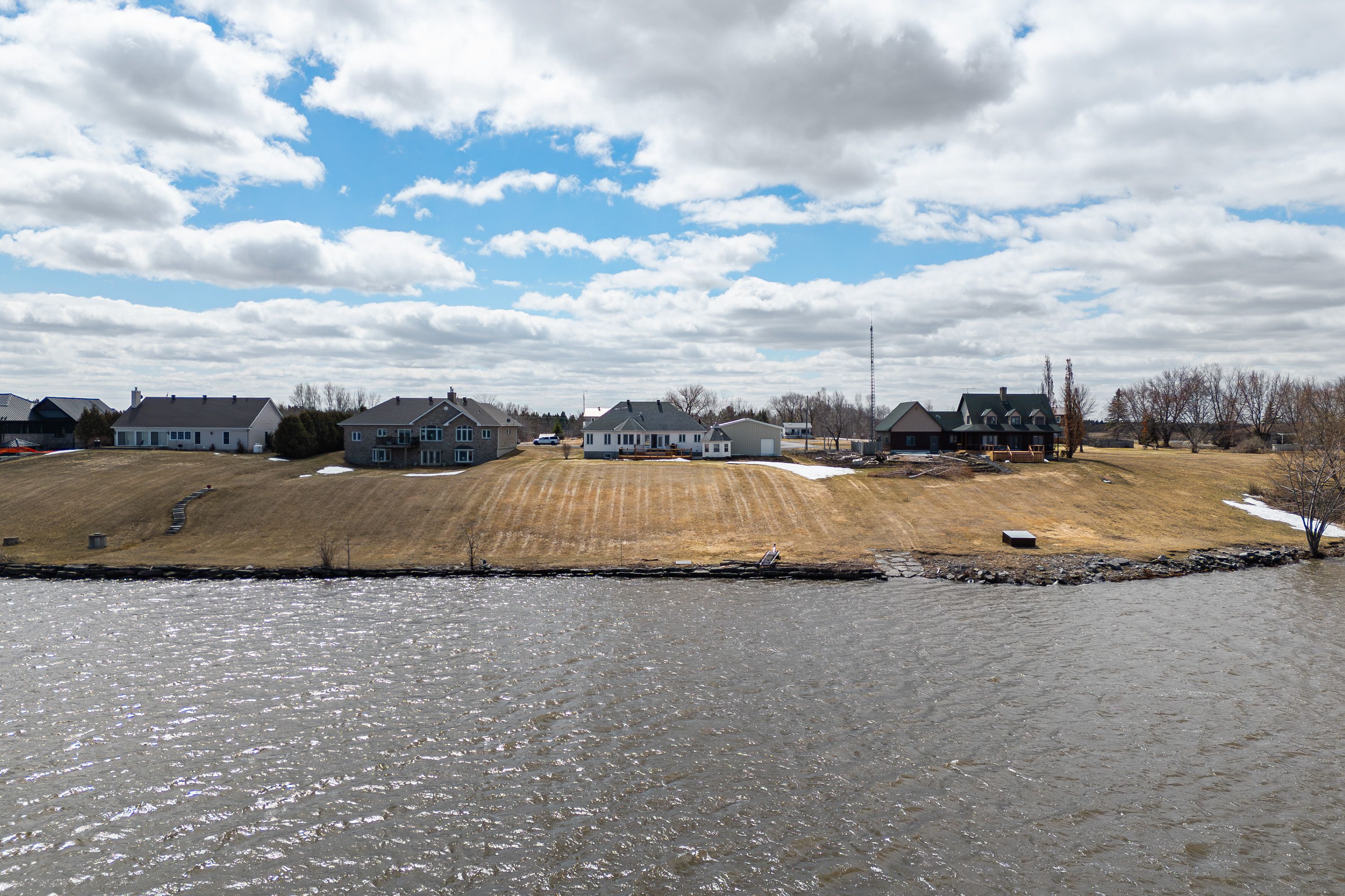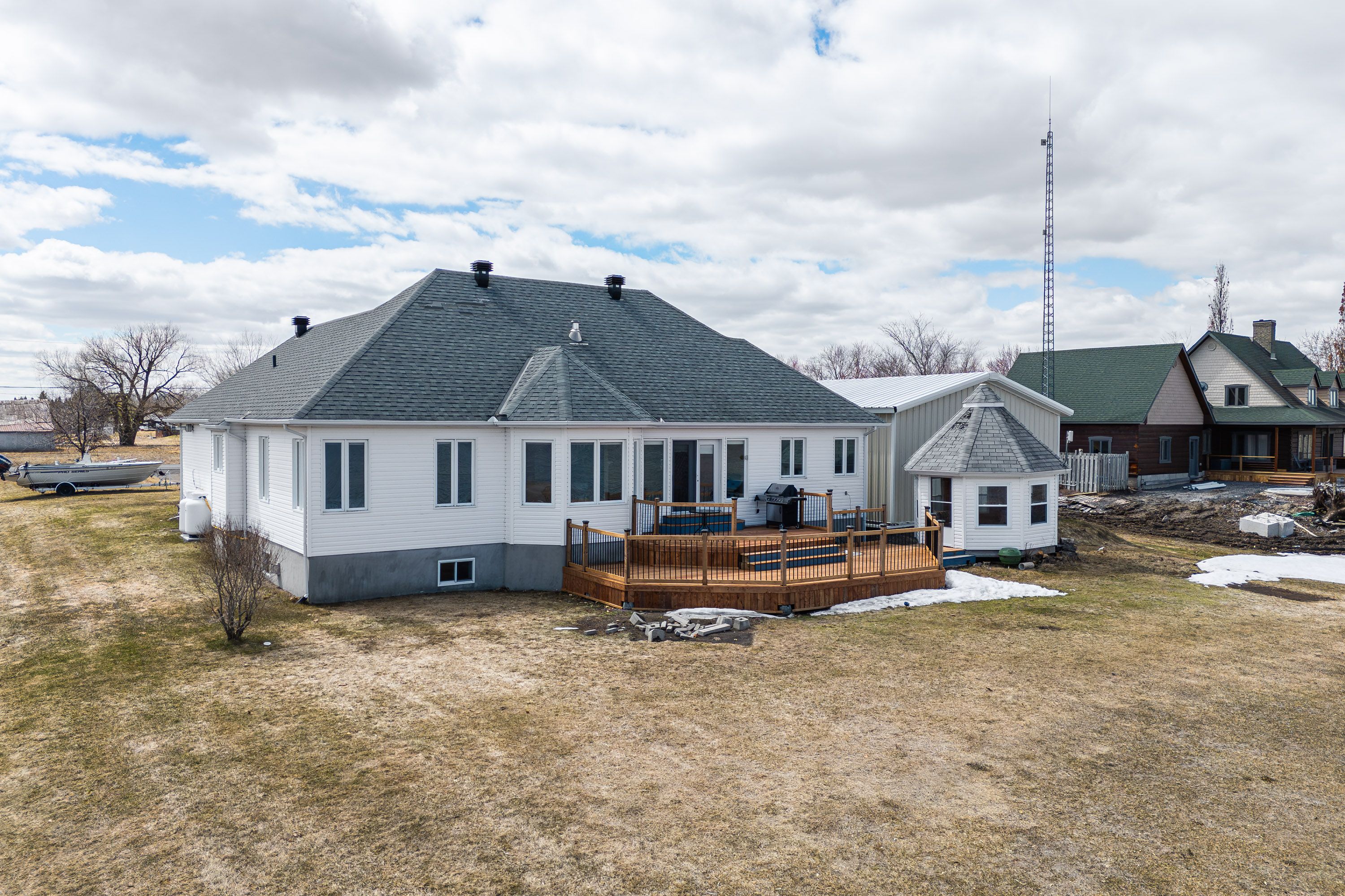 Wake up every morning to stunning river views from this beautifully positioned home, offering the perfect balance of peaceful living and convenience just 20 minutes from grocery stores, shopping, and everyday amenities that hawkesbury has to offer. The spacious main floor is filled with natural light from expansive windows lining the back wall, creating a bright and inviting atmosphere throughout, complete with a cozy fireplace and an eat in kitchen with granite counter tops that overlooks the water. Upstairs features three well sized bedrooms with one being utilized as an office, including a 4 piece ensuite and relaxing soaker tub off the primary suite. The main level branches off into two wings both with its own bathrooms to give even the larger families space and keep the peace. The lower level is ideal for entertaining, offering a large recreation space with a bar, an additional bedroom, bathroom, and another fireplace, along with a huge utility and storage room. Outside, enjoy a new back deck that leads to a matching gazebo sunroom with central air, perfect for taking in the views, along with a large boathouse or shop that is ideal for storage or projects, steel cladded, insulated, has a large steel i beam for hoisting and has hydro. Additional updates include a new water filtration system, new owned hot water tank, making this a well equipped and truly enjoyable waterfront property.