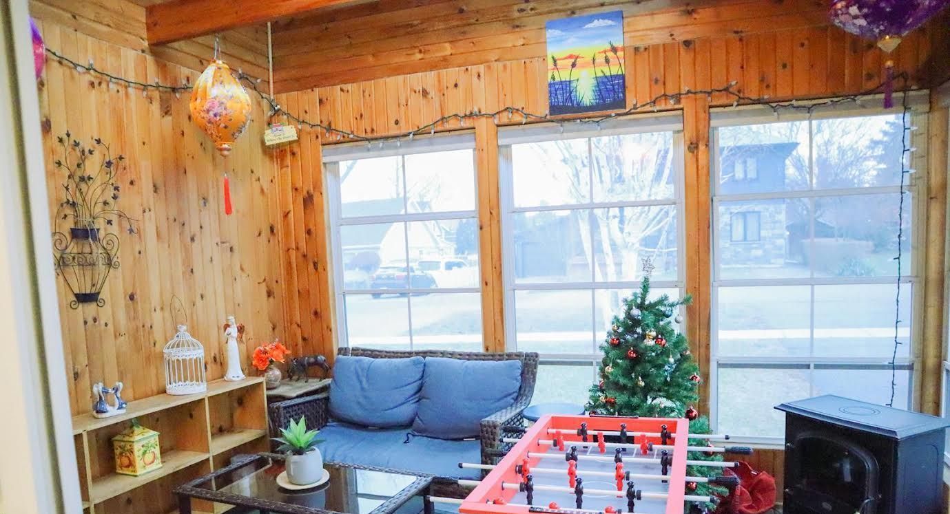 • Bright front sunroom perfect for relaxation and enjoying the scenery.