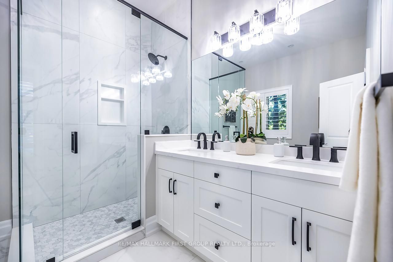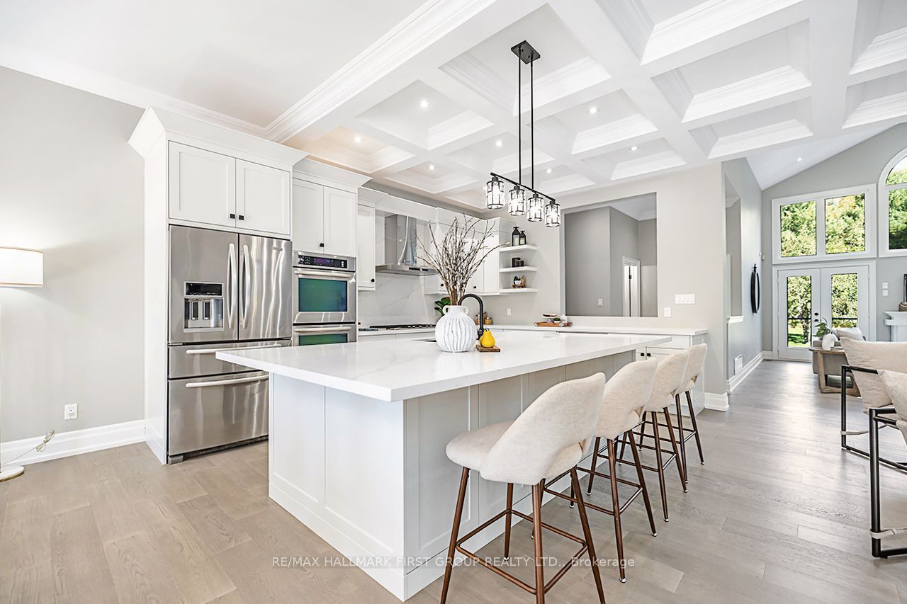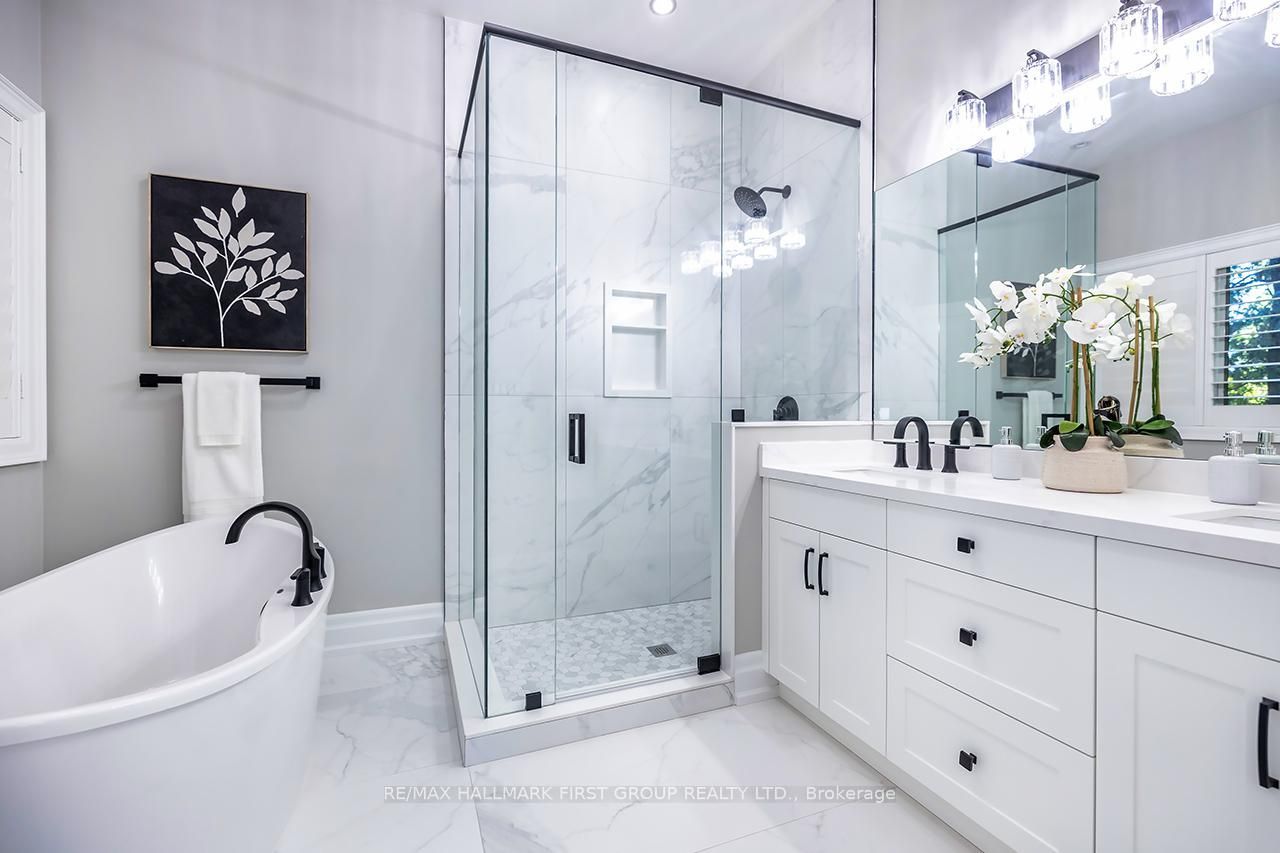Macedonian village opportunity - bungalow living on a premium conservation lot, this custom-built bungalow offers exceptional space, privacy, and long-term versatility on a premium 102. 48 ft x 352. 51 ft lot backing onto the natural beauty of heber down conservation area. Designed for both everyday comfort and multi-generational living, the main level features four spacious bedrooms, each with its own en-suite and walk-in closet, along with 10-ft ceilings, new engineered hardwood flooring, and fresh paint throughout (2025). The great room impresses with a 16-ft cathedral ceiling and gas fireplace, while the updated kitchen showcases stainless steel appliances, waffle ceilings, crown moulding, and california shutters. The primary suite is a true retreat, complete with a custom ceiling, walk-in dressing room, and a 5-piece en-suite overlooking the private backyard and conservation setting. The finished walk-out basement adds outstanding flexibility with three additional bedrooms, a gym, two large recreation areas, a gas fireplace, and a rough-in kitchen ideal for extended family, in-law potential, or future customization. Additional highlights include a main-floor office, laundry room, central vacuum system, and an attached garage with workshop and 60 amp service perfect for a hobby space, studio, or future golf simulator. Outdoors, enjoy a private backyard oasis with an in-ground pool featuring an updated liner, heater, and uv system (aug 2025), along with interlocking landscaping and direct access to nature. With its timeless brick, stone, and stucco exterior, no rental items, and a highly sought-after location, this is a standout opportunity for buyers seeking space, and long-term value in one of whitby's most exclusive communities.