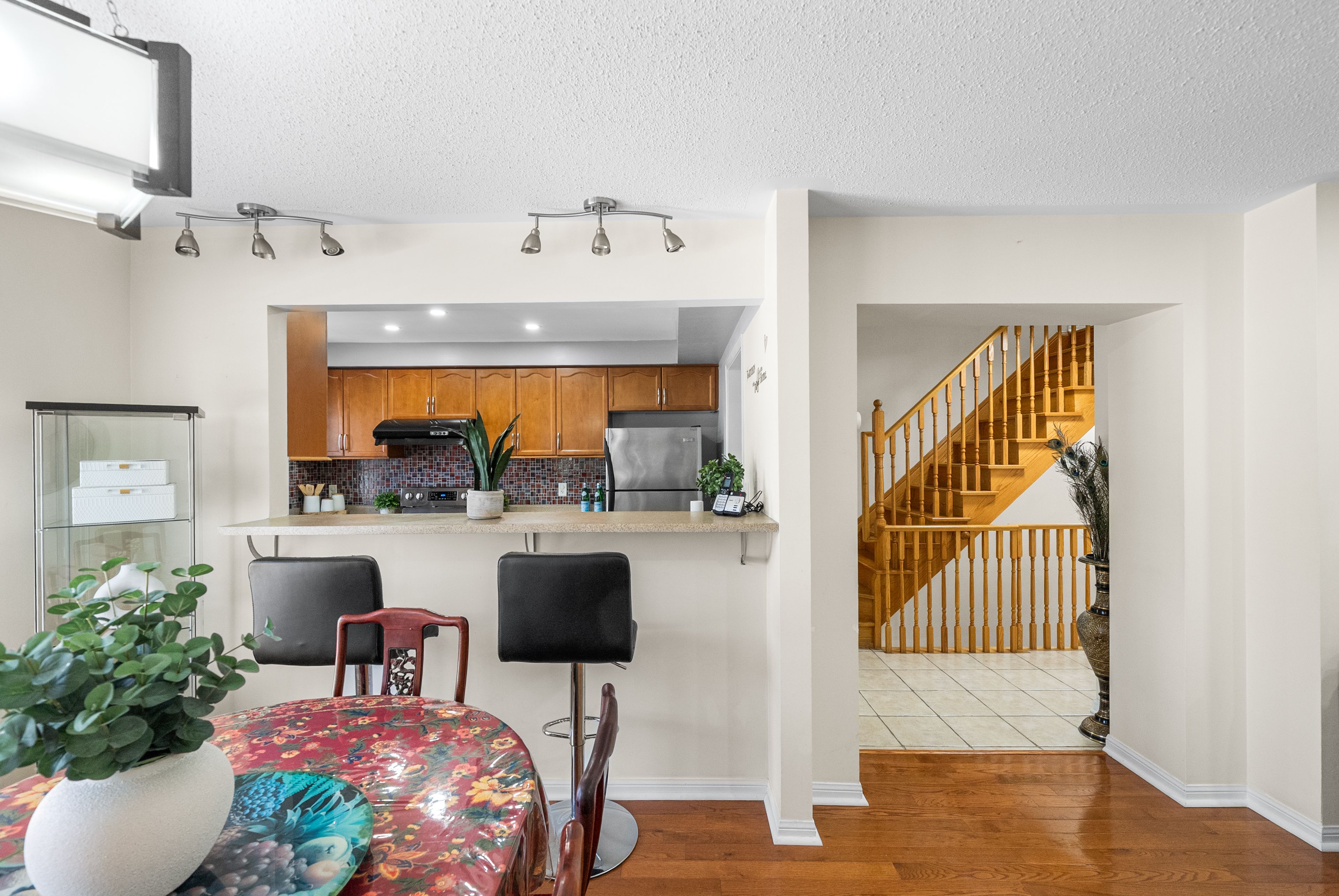 Welcome to 15 snowgoose terrace a beautifully maintained freehold townhome nestled in the heart of the highly desirable rouge park community. Completely freehold, no potl fees! This bright and spacious mattamy-built home offers functional living across three levels, featuring a generous living room with pot lights, a large eat-in kitchen with a breakfast bar and walk-out to a private balcony, and a versatile den with skylight that can easily be converted into a third bedroom or home office. Pride of ownership is evident throughout this immaculate home, with thoughtful updates including: new roof (2019), new central a/c unit (2023), stove, range hood, and kitchen faucet replaced in 2020, and garage door, front door, and exterior front painted in 2023. All faucets throughout the home have also been upgraded, and the newer laminate flooring upstairs adds a fresh, modern touch. Enjoy direct garage access and a well-designed layout that blends space, comfort, and functionality. Located just steps from ttc, scenic rouge park trails, french immersion schools, shopping, and local amenities, with quick access to highway 401, u of t scarborough, centennial college, pan am sports centre, and the toronto zoo. Truly move-in ready this is an exceptional opportunity to own a home where pride of ownership shines in one of scarborough's most vibrant and family-friendly neighbourhoods.