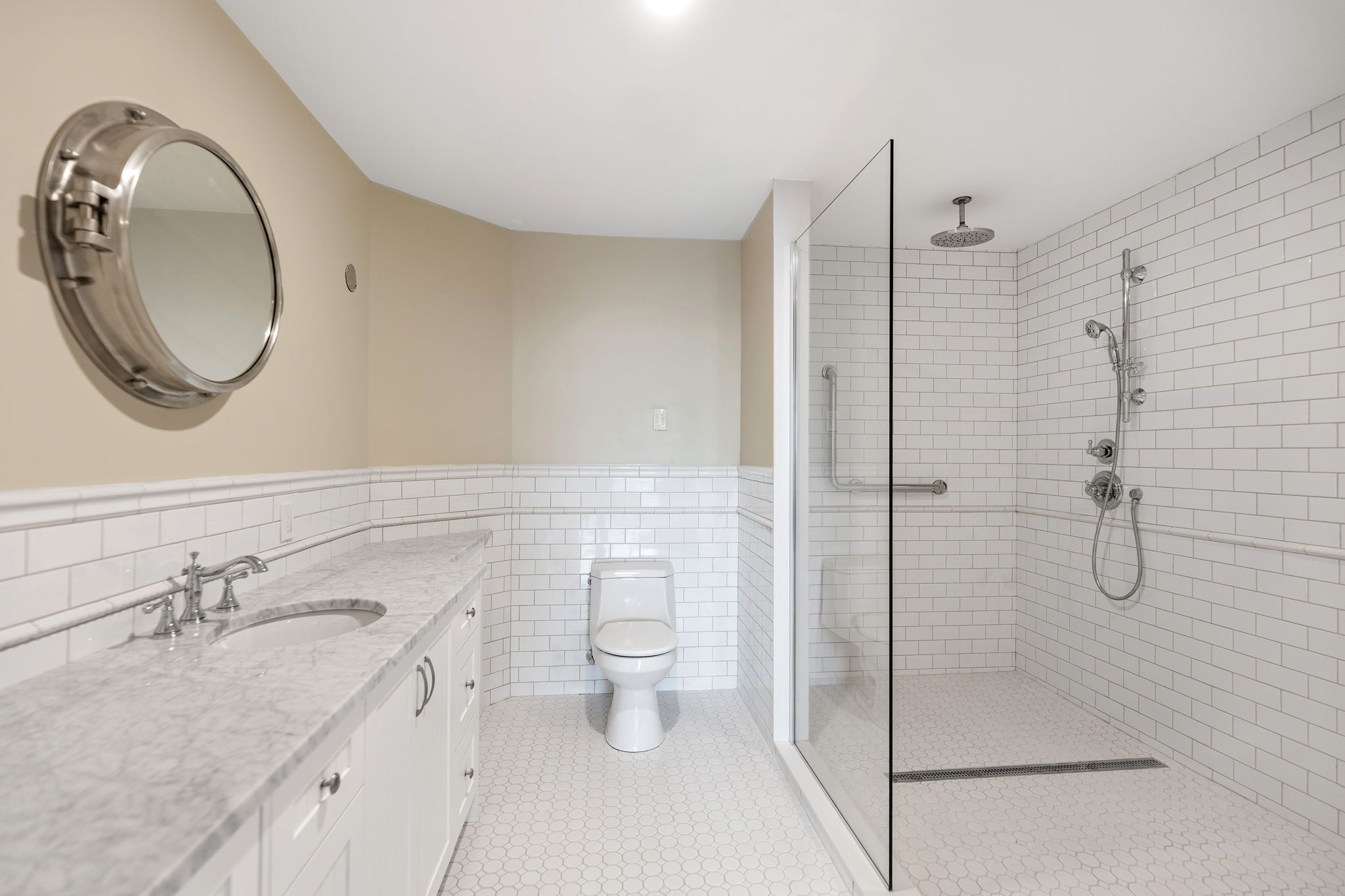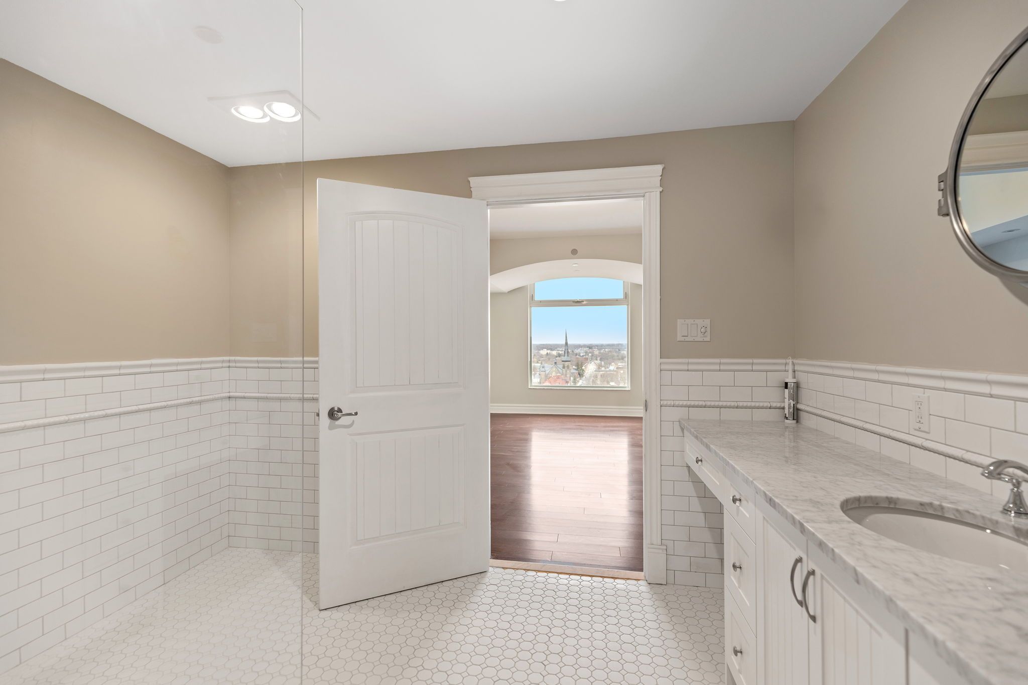 • Custom features like coffered ceilings and barrier-free ensuite shower.