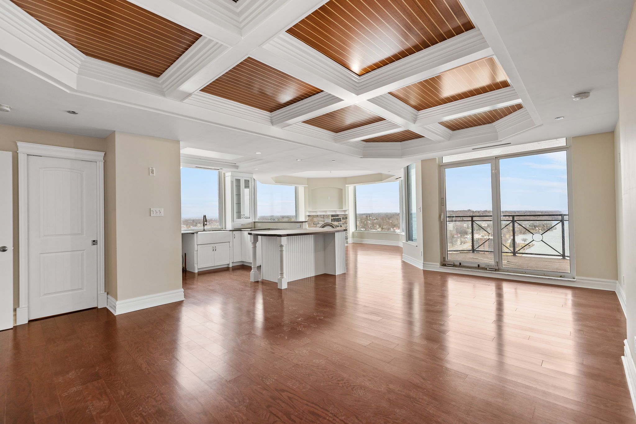 Live in historical brockville, the gateway to the world famous 1000 islands. Living at tall ships not only means access to one of the most beautiful waterways in the world, it also means incredible amenities at your fingertips. Discover the casual elegance of living in a lookout condo, with the famous 1000 islands at your doorstep. Located along the st lawrence river, this spectacular resort-style waterfront development sits along the 1000 islands region. Enjoy leasing this unique custom developer's owner suite with stunning views of sunsets and sunrises on this corner. This large 2 bedroom, 2 bathroom condo that features 9' custom coffered teak and holley yachting ceilings, granite fireplace surround, oversized windows, and an abundance of natural light throughout the space. This brand new unit features an open plan layout for the kitchen, dining and living room as well as 2 full baths (of which the primary ensuite custom shower is barrier free), in suite laundry/storage room, and balcony with a stunning view of the river. Long term lease available directly from the developer. Book your tour today!