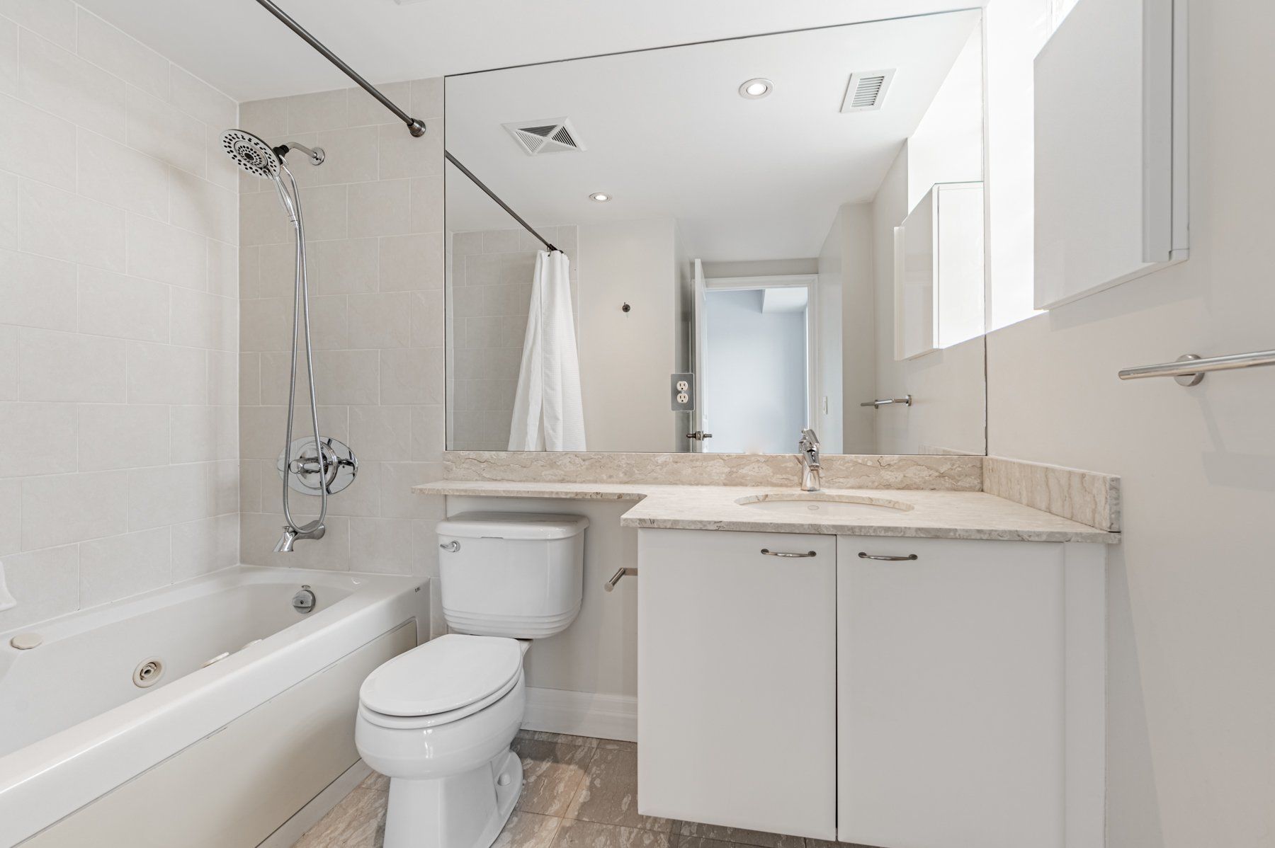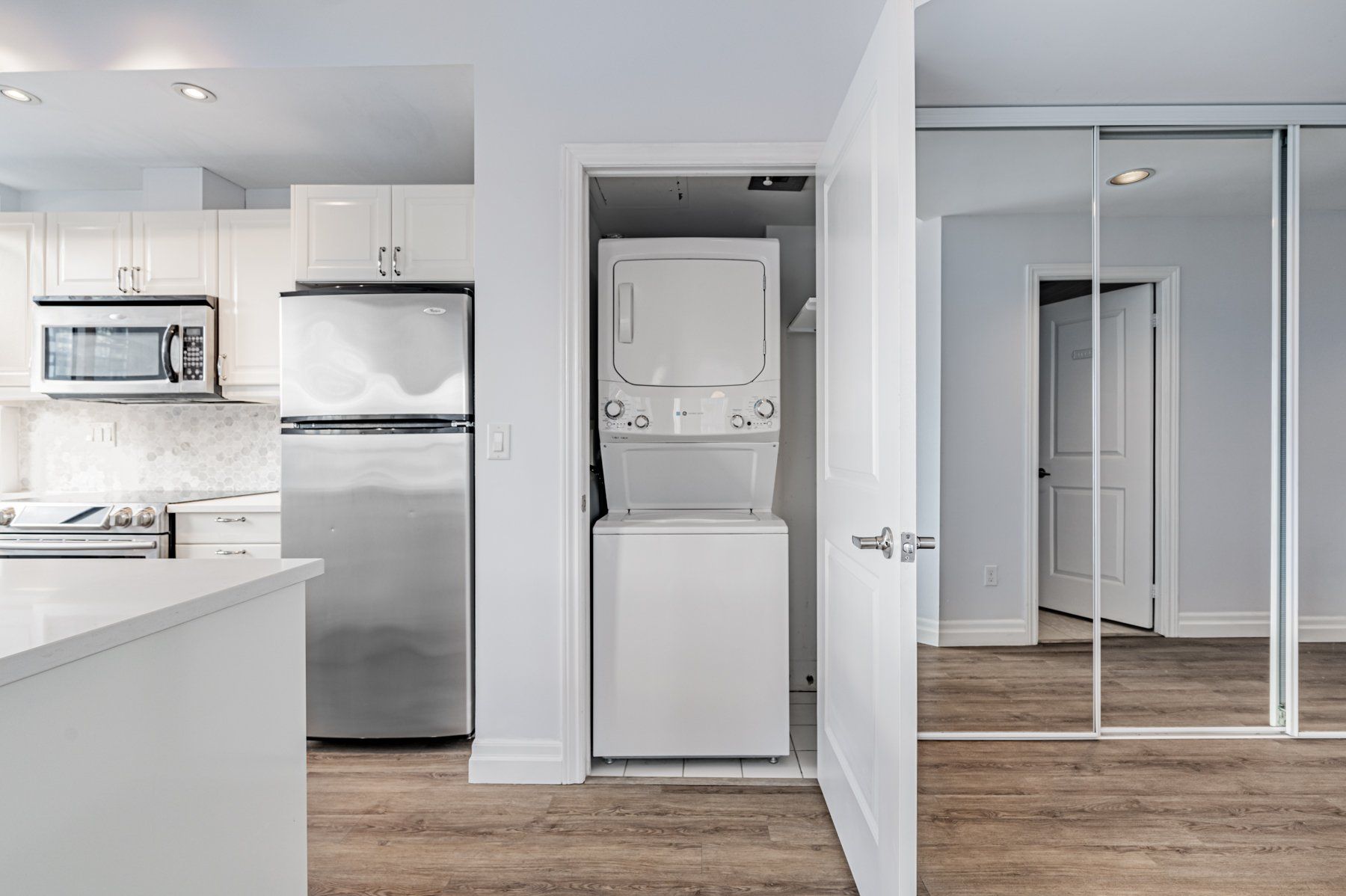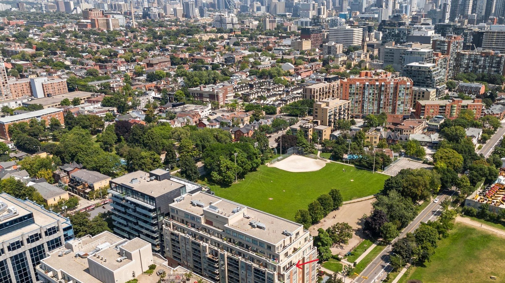 Corner suites at wellington on the park are rare. This one has terraces on both sides! Lower penthouse corner unit - 719 sq ft inside, 200+ sq ft across two separate terraces, one on each side, almost seamlessly connected. Floor-to-ceiling windows on two exposures with four walkout points means the light here doesn't compare to a standard unit. It fills the place all day. Cn tower and city skyline views from multiple angles, even a piece of the water. 9' ceilings, open-concept layout, recently renovated kitchen with quartz counters, centre island, and stainless appliances. Spacious bedroom with 4-piece ensuite and private terrace access. Second bathroom for guests (or couples who need their own space in the morning). Wellington on the park is a boutique building - not a 600-unit tower. Steps to trinity bellwoods, stanley park, king west, and the bentway trails. Parking, locker, gym, party room, games room, and landscaped courtyard included. Condo fees well below average for what you're getting here.