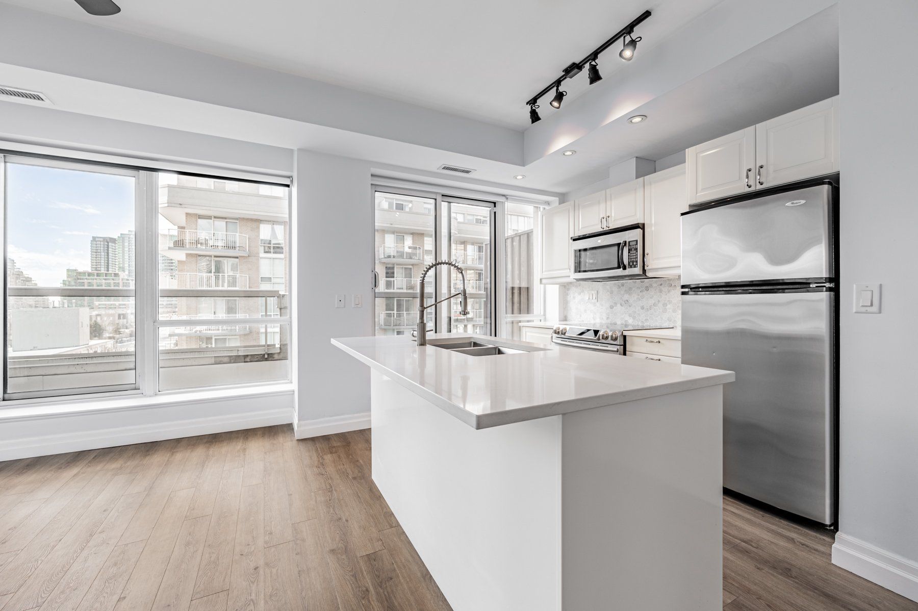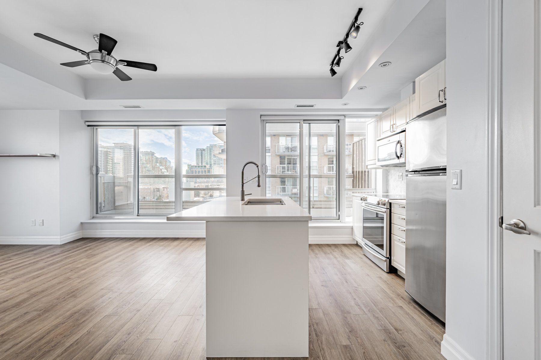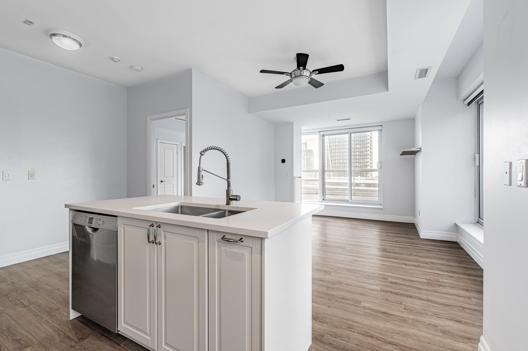 Corner suites at wellington on the park are rare. This one has terraces on both sides! Lower penthouse corner unit - 719 sq ft inside, 200+ sq ft across two separate terraces, one on each side, almost seamlessly connected. Floor-to-ceiling windows on two exposures with four walkout points means the light here doesn't compare to a standard unit. It fills the place all day. Cn tower and city skyline views from multiple angles, even a piece of the water. 9' ceilings, open-concept layout, recently renovated kitchen with quartz counters, centre island, and stainless appliances. Spacious bedroom with 4-piece ensuite and private terrace access. Second bathroom for guests (or couples who need their own space in the morning). Wellington on the park is a boutique building - not a 600-unit tower. Steps to trinity bellwoods, stanley park, king west, and the bentway trails. Parking, locker, gym, party room, games room, and landscaped courtyard included. Condo fees well below average for what you're getting here.