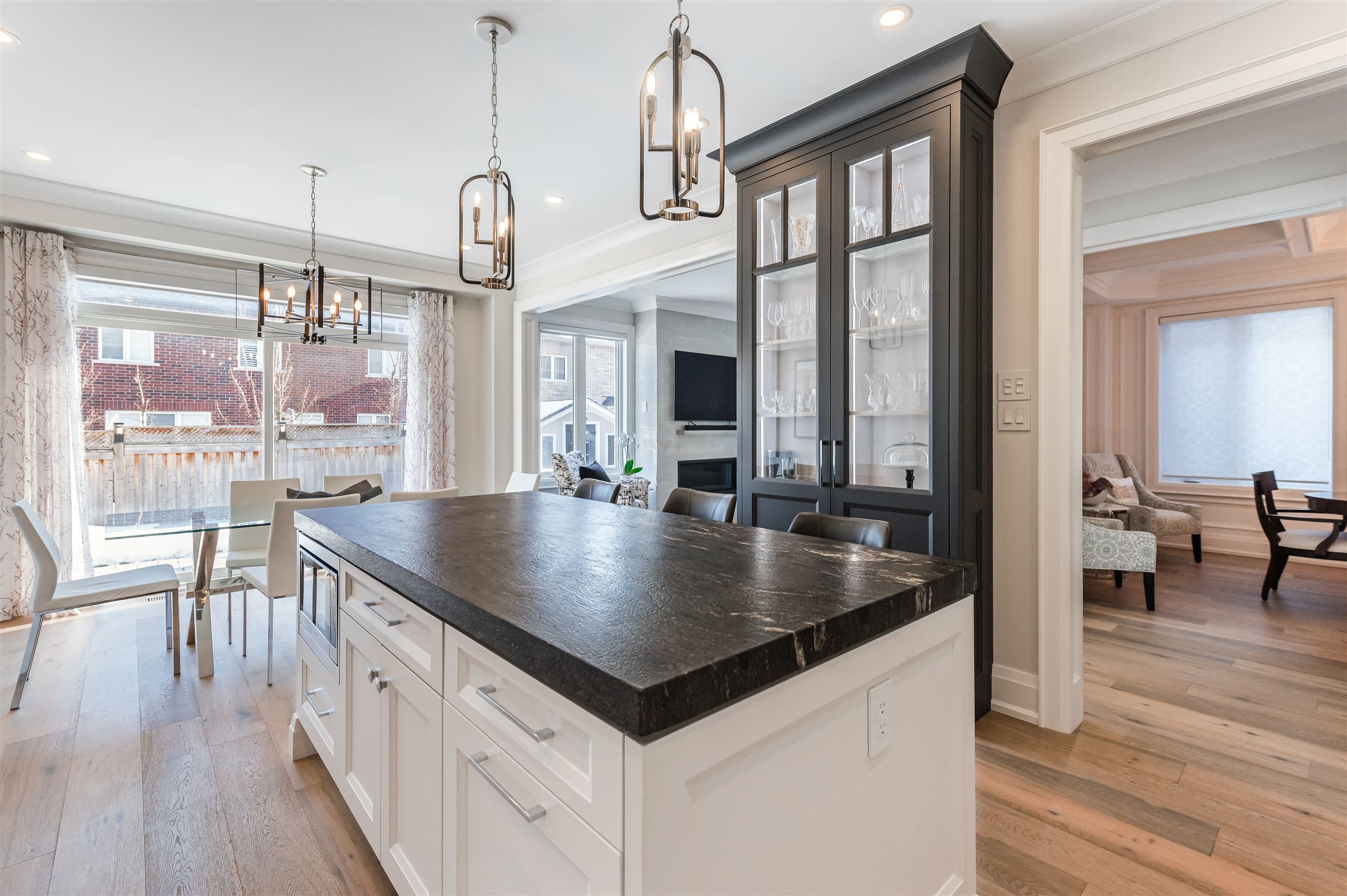 Welcome to 15 stormont trail, situated in the sought-after cold creek estates neighbourhood located in the vellore village community of vaughan. This is a rare opportunity to own a home on a premium lot fronting the lawford-cannes greenway walking trail that connects to open conservation space, parks, and schools. Tastefully renovated with an emphasis on craftsmanship and family living, this property is move-in ready. The upgraded entry doors open to a stunning two-storey foyer. The main level includes custom millwork, engineered white oak flooring, a formal dining room, kitchen, and family room. The high-end custom kitchen features interior cabinet upgrades, under- and upper-cabinet lighting, a custom canopy, a large island with leathered-finish granite, and premium appliances including an induction cooktop, built-in wall ovens, and a built-in microwave. For entertaining friends and family, a fully panelled dining room with coffered ceilings adds sophistication. The main floor laundry room features custom cabinetry, counters, and a sink, and offers an access door directly into the garage, plus service stairs to the basement. Upstairs are four generously sized bedrooms, each with access to an ensuite bathroom. Two bedrooms have their own private ensuites, while the other two share a jack-and-jill ensuite, ideal for large or extended families. The upgraded primary ensuite offers a bright, luxurious feel and features a freestanding bathtub, a separate shower with frameless glass doors, and a custom double vanity. A fully finished basement with a separate entrance via the laundry room service stairs offers flexible living space for a recreation room, gym, or home office. It also includes an additional three-piece bathroom, bar/kitchen area, organized dry pantry, built-in custom shoe closet, and a cold room. Excellent location with access to commuting corridors including hwy 400, 407, 427, and the vmc subway.