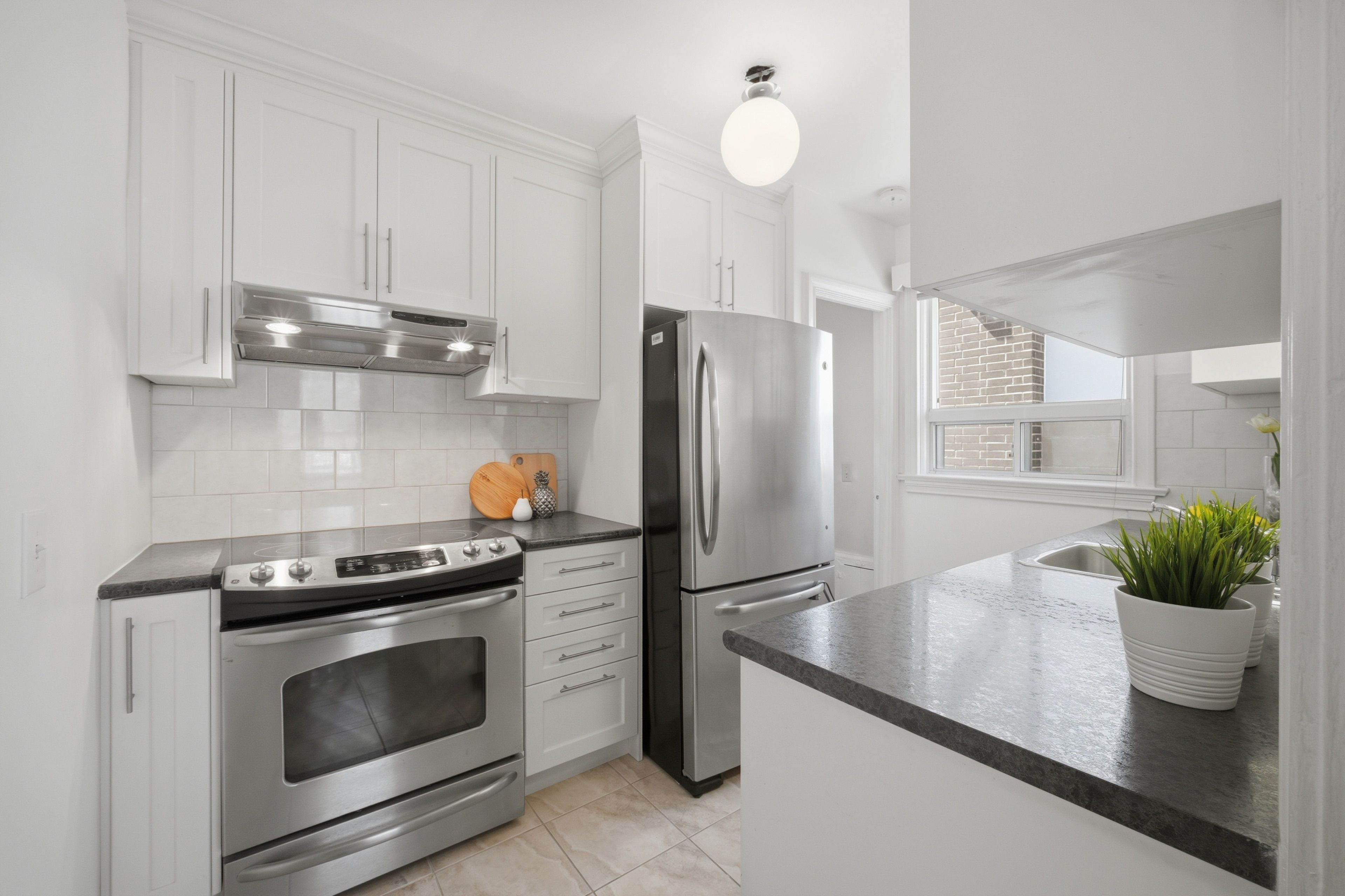 • Updated kitchen with stainless steel appliances for modern convenience.