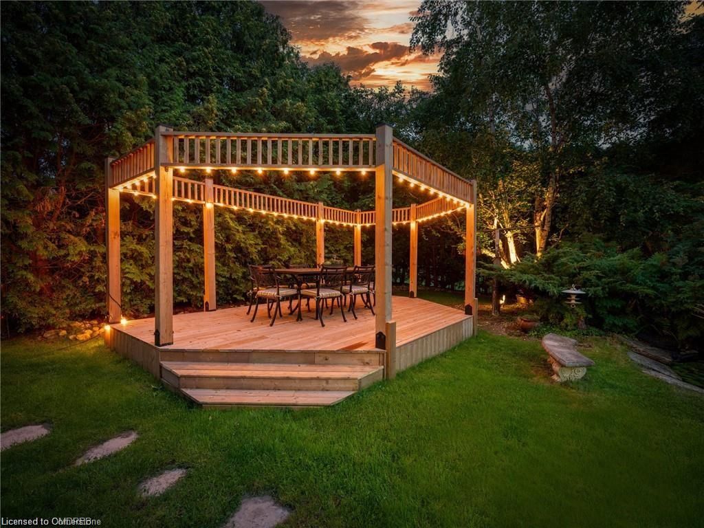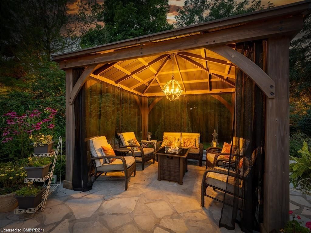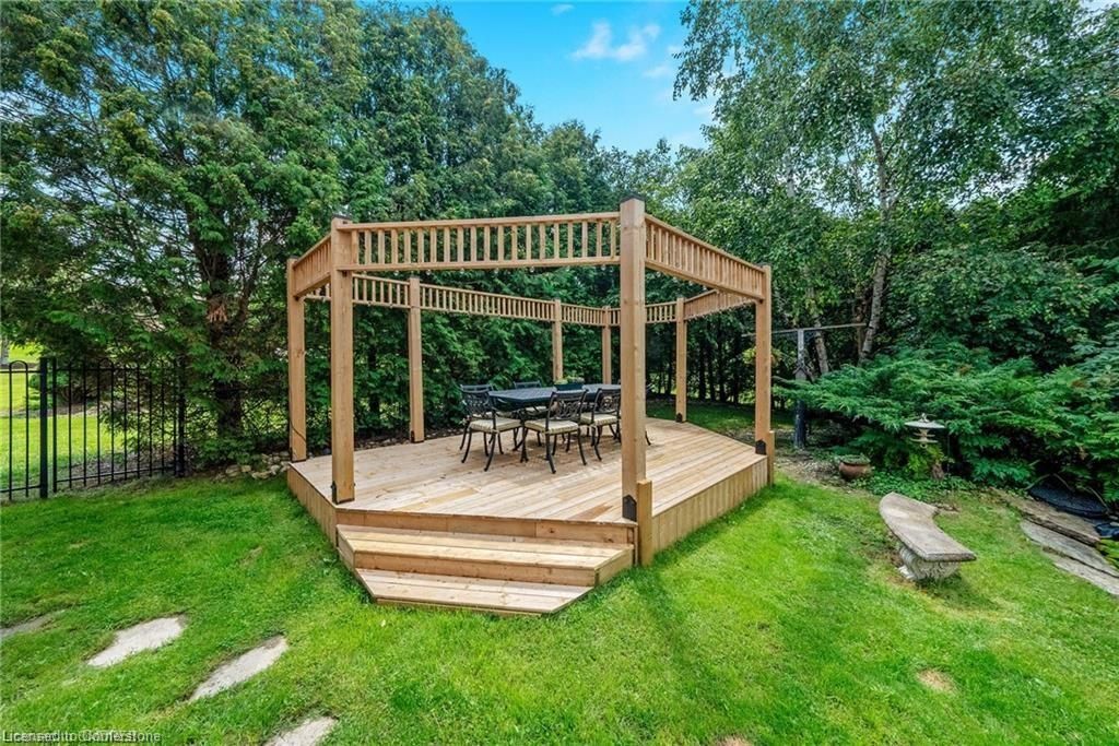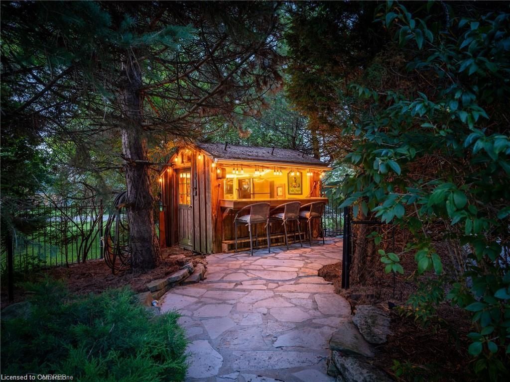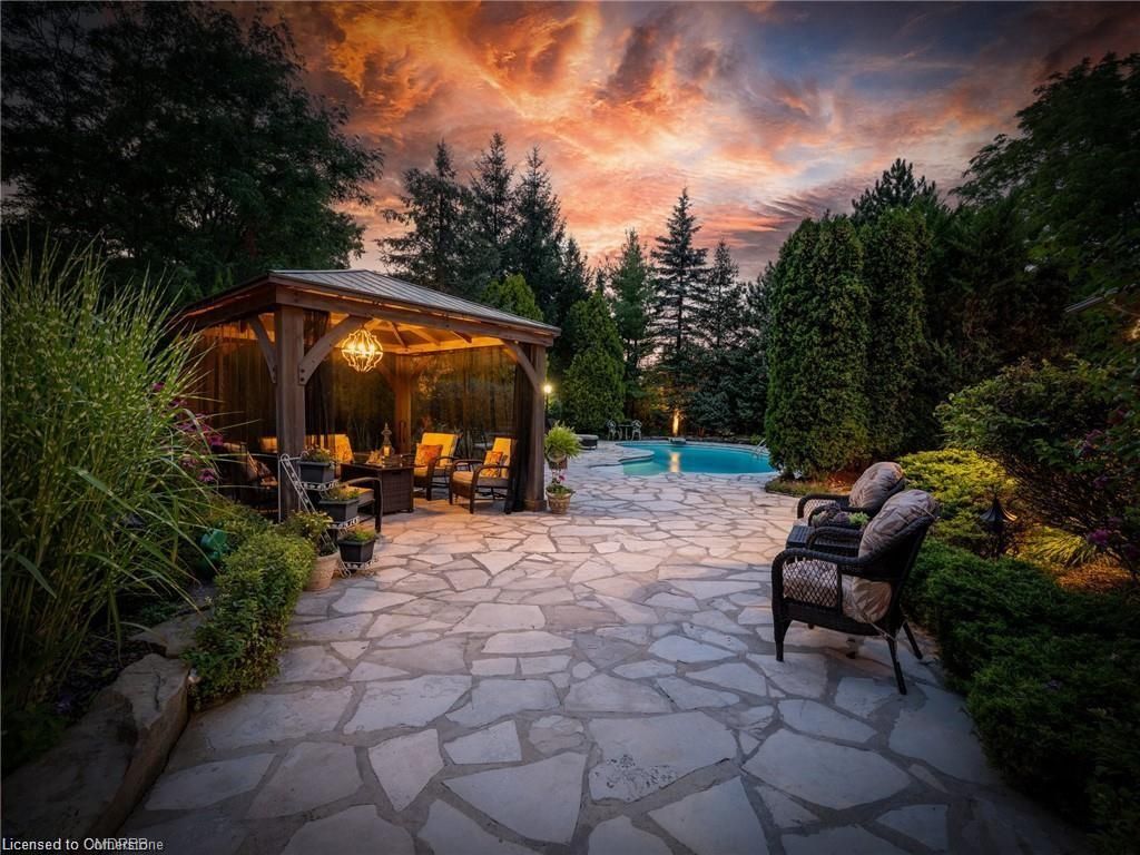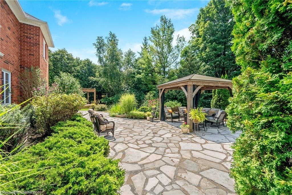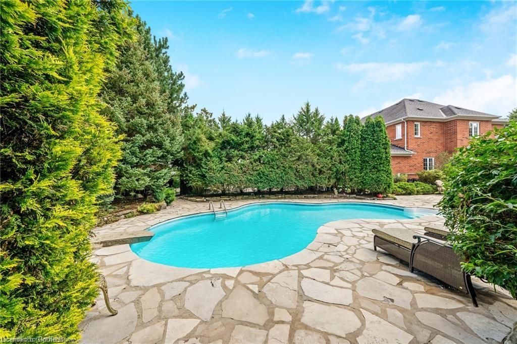 Welcome to this ultra-private secret garden - a rare executive country estate property backing onto blue springs golf club (home of pga canada) w/ the most stunning yard that will rival any luxury resort. This prestigious all-brick home features open concept living + fully finished basement. It is nestled on a stunning 1. 38-acre lot (including a beautiful side lot for added privacy) in a quiet enclave of distinguished executive homes. There is a sense of space as you enter the grand foyer w/ its 9' ceilings and curved staircase. The heart of this home is the gourmet ei kitchen which overlooks the wo to the stunning yard and living room w/ vaulted ceiling, fireplace and additional wo to the yard. There is a main level office located off the front entrance and convenient main level laundry w/ tub. The upper floor has 3 generous bedrooms (there were 4 - can easily convert back), one being the primary bedroom w/ his/her closets and 5-pc ensuite. The basement features an over-sized 4th bedroom, ri for bathroom, a 2nd office, gym, family room and workshop. The dream yard will take your breath away and includes a pavilion for dining al fresco, heated pool, koi pond w/ waterfall, golf-themed bar, screened-in pergola, extensive hardscaping (2000+ sf of flagstone installed on 3 of concrete for stability) and professional low-maintenance landscaping - the ultimate space for entertaining. Additional features: 3-car garage, parking for 10+ in the driveway, garage entry to home, replaced exterior doors, no rentals, energy efficient gas pool heater (2018), new pool liner and cover (2025), furnace (2017), well pump (2024); water softener, uv system, hwt all owned; all windows replaced and home re-insulated, extensive ug sprinklers (including side lot), 12 x 16 double-sided pine mennonite-built shed. Peaceful location close to golf, trails, lake, 15 minutes to 401. This is your opportunity to finally make a luxury move to the country. Thank you for showing our listing!