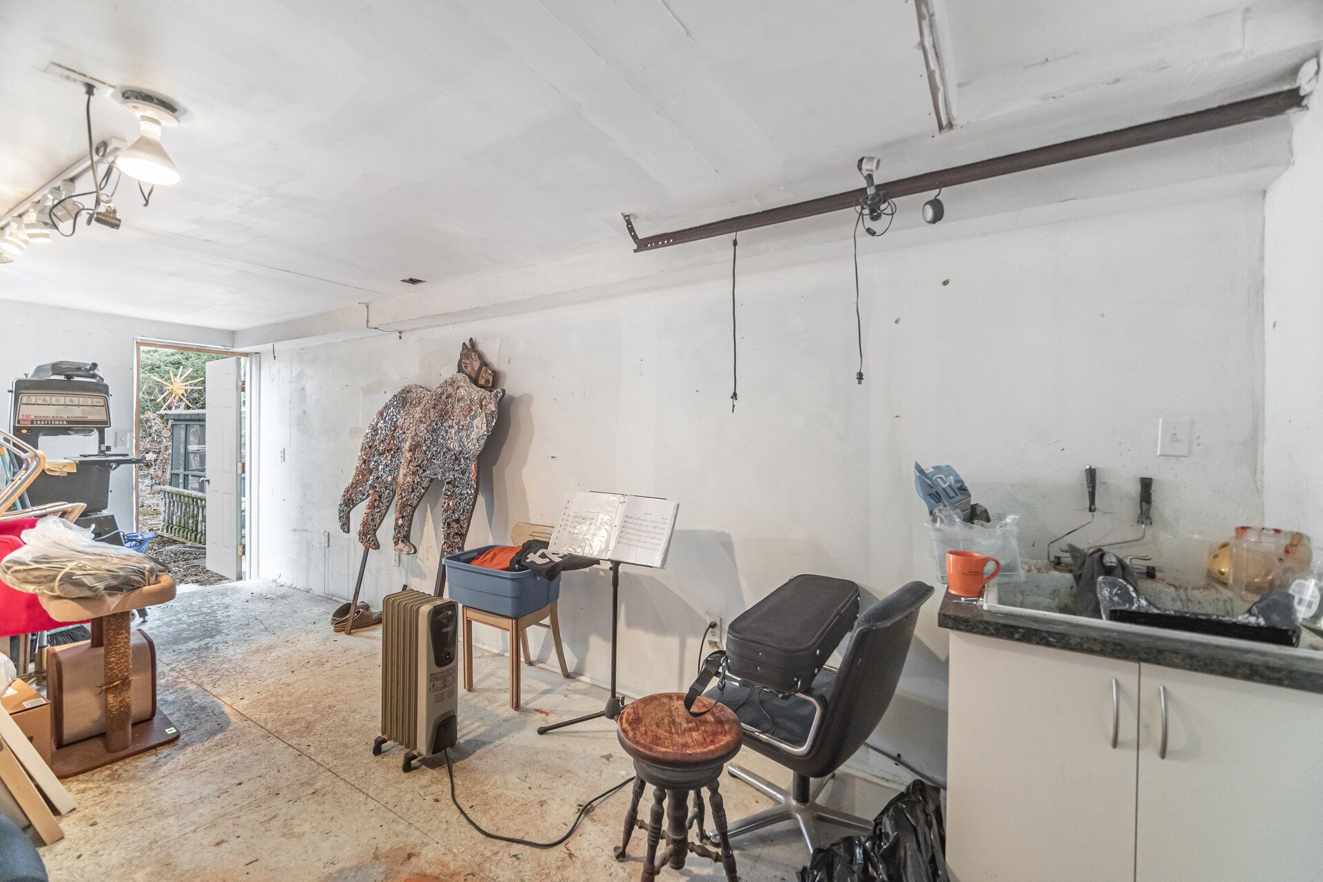 • Attached garage converted into versatile studio space.