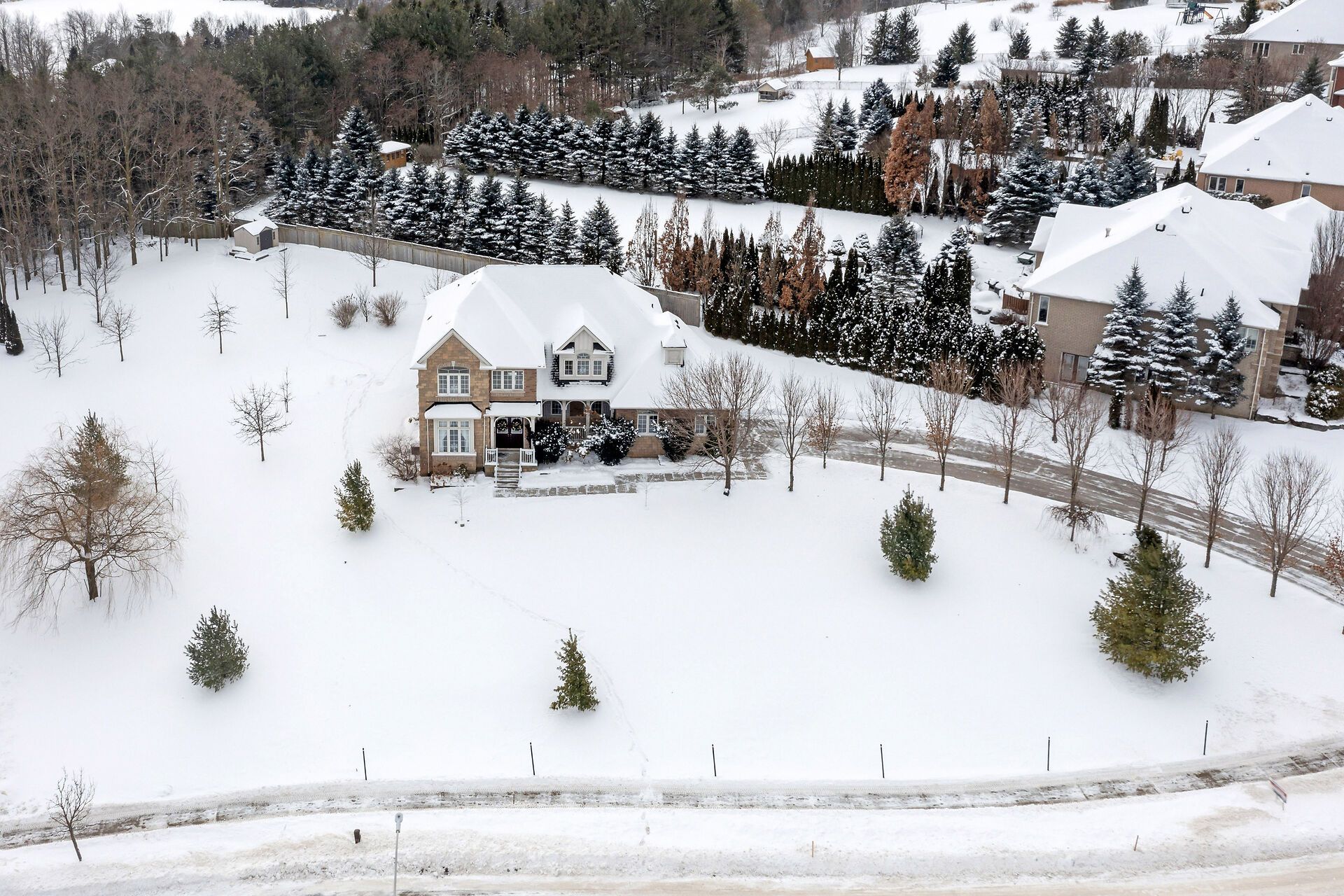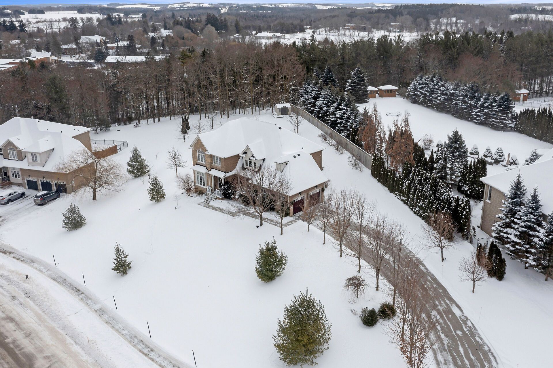 If space is what you are looking for, then look no further! Drive up the long driveway into this huge 0. 8-acre lot, full of privacy and lovely landscaping. Wander up the front walkway to the double door entrance and walk into over 2,900 square feet of above grade space. Floor to ceiling windows bring in all the warm sunlight with 9-foot ceilings for open, airy living. Open combination of dining and living room with gleaming hardwood floors. Kitchen is as functional as it is beautiful with quartz counters and stainless-steel appliances. Lots of room for a kitchen table that walks out to the patio or into the warm, cozy family room. Also on the main floor is a powder room, laundry and mudroom to garage. A super cool private little porch is accessed from the front hall. Upstairs is an enormous primary and ensuite, plus walk-in closet. 3 more generous bedrooms and a full bath. The basement is just ready for your creative juices to flow. Perched up high in this family friendly neighborhood, only 40 minutes to the gta and 20 to the go train. Small town living in a big space! **extras** ac (2023), freshly painted throughout (2024), roof (2022), quartz countertops in kitchen (2016), deck (2015)