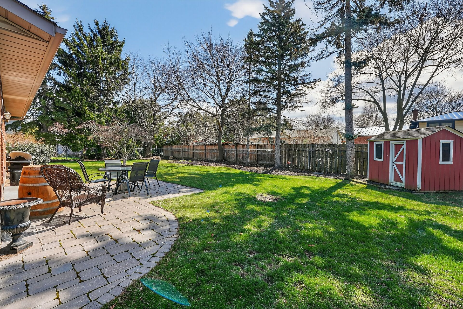 • Generous lot with a garden patio for outdoor enjoyment.