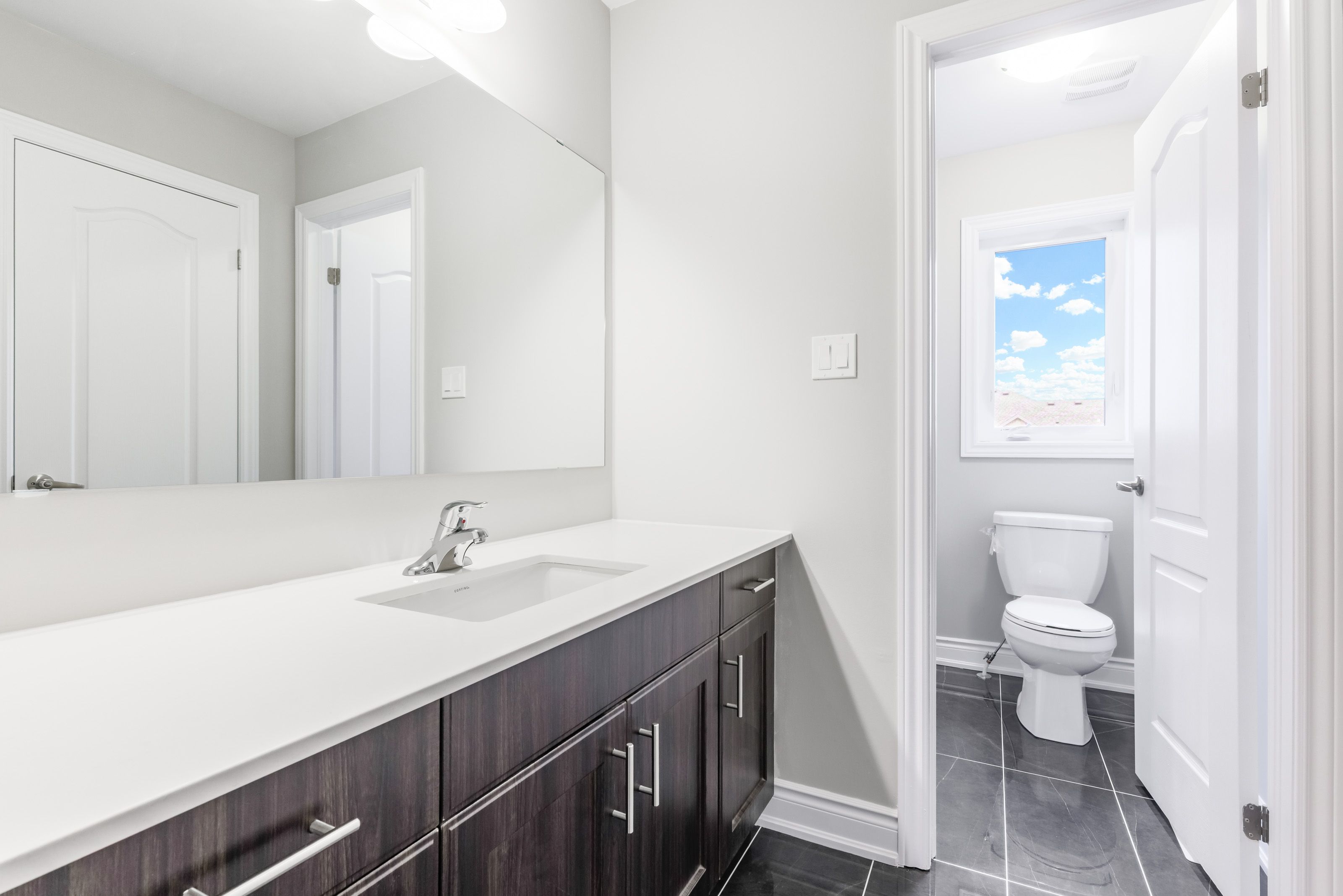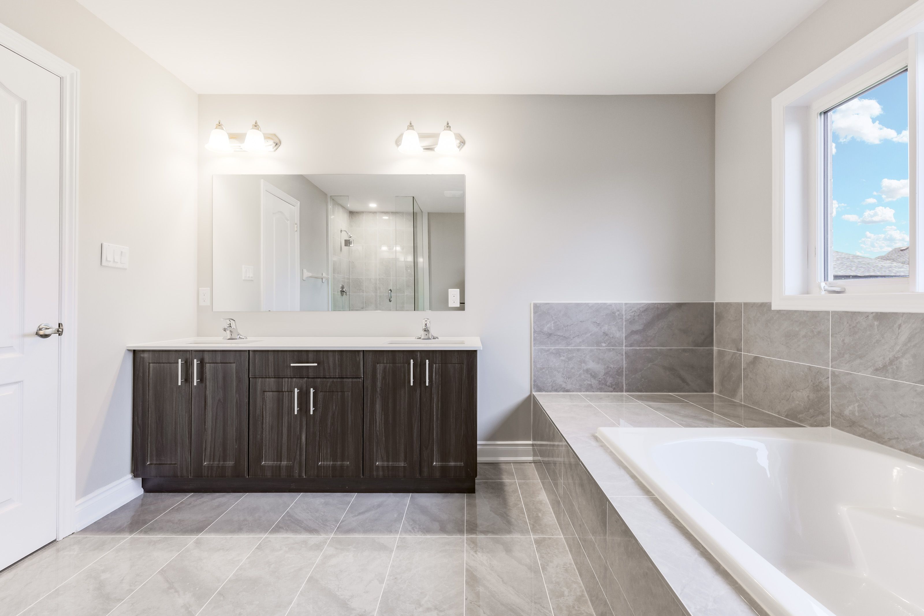 • Finished bathroom in lower level ready for personalization and design.