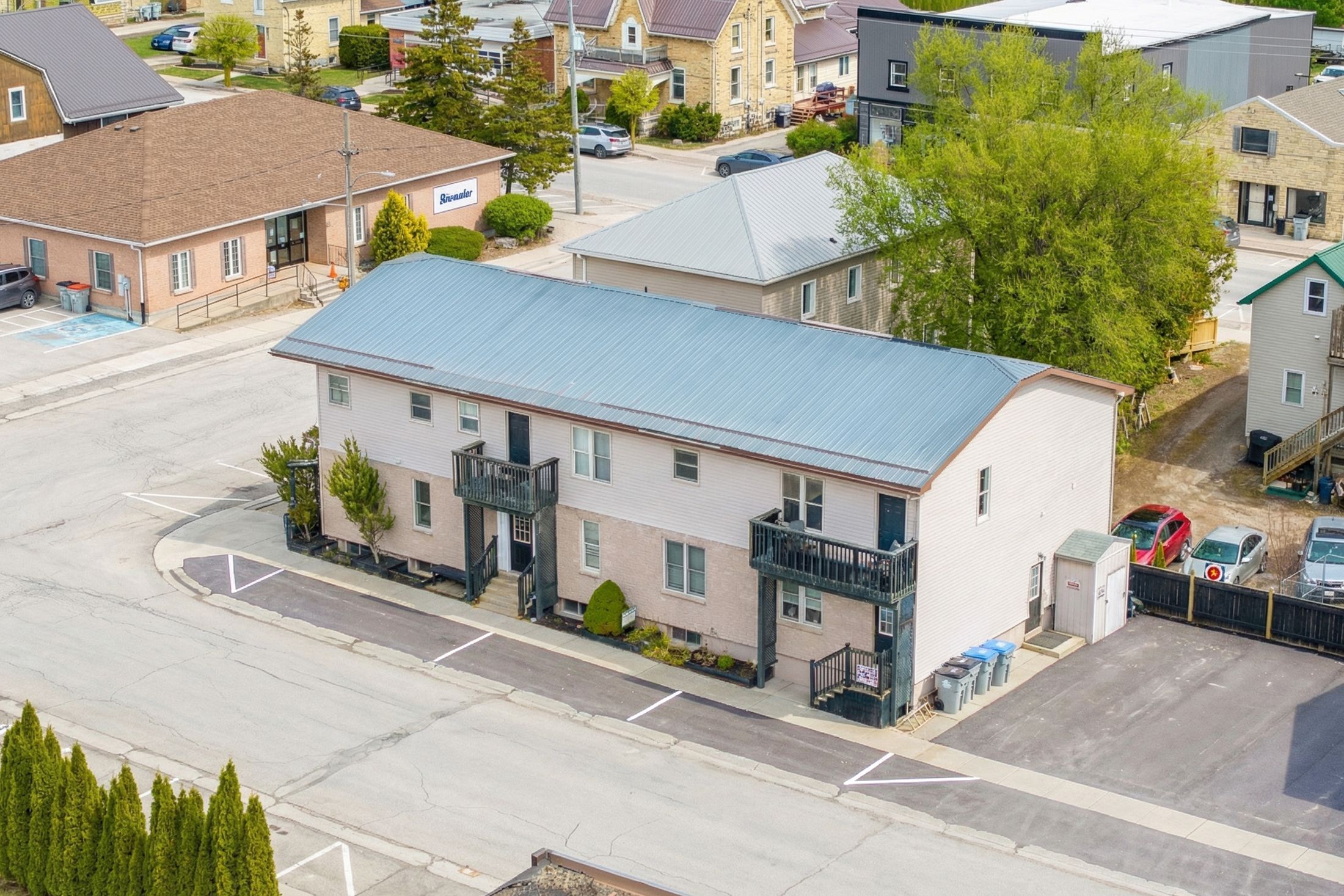 Attention investors! Exceptionally easy to manage 6-cap 8-plex opportunity generating approximately $120,000 in annual net income: a true huron county money maker just minutes from grand bend, exeter, and bayfield, and one of the most effortlessly run rental properties along ontario's west coast! This 9-unit multiplex consists of 8 residential apartments plus a superintendent's workshop unit with plumbing, all in excellent condition and fully functional in terms of fixtures and chattel. Currently, 7 units are occupied by long-standing, happy tenants, with one vacant 2-bedroom unit ideal for owner occupancy or immediate lease-up. In total, the building offers six 2-bedroom units, two 1-bedroom units, plus the workshop unit, along with multiple storage rooms and a dedicated meter room. All nine units are separately metered for hydro, simplifying management and expenses. The thoughtfully designed layout includes a 1-bed and 2-bed unit on the ground level, a 1-bed and two 2-bed units on the main level, and three 2-bed units with balconies on the upper level. Every unit is equipped with owned appliances, including in-suite washers & dryers, a fan-favorite feature among tenants. Two large owned hot water heaters are also included. Tenants pay hydro, and operating costs are remarkably low at approximately $15,000-$17,000 annually, resulting in strong and reliable net income for an 8-plex plus workshop unit. All fire code requirements are up to date, the metal roof and insulbrick/vinyl exterior are in excellent condition, and both landscaping and maintenance are refreshingly simple. All debentures have been paid! Located in the heart of zurich, ontario, just five minutes from beautiful lake huron beaches, this property represents incredible value when compared to today's replacement construction costs. As a turnkey, mindless money-maker and a rare 6-cap income property that stands out among recent multi-plex sales in huron county, this opportunity will not last long.