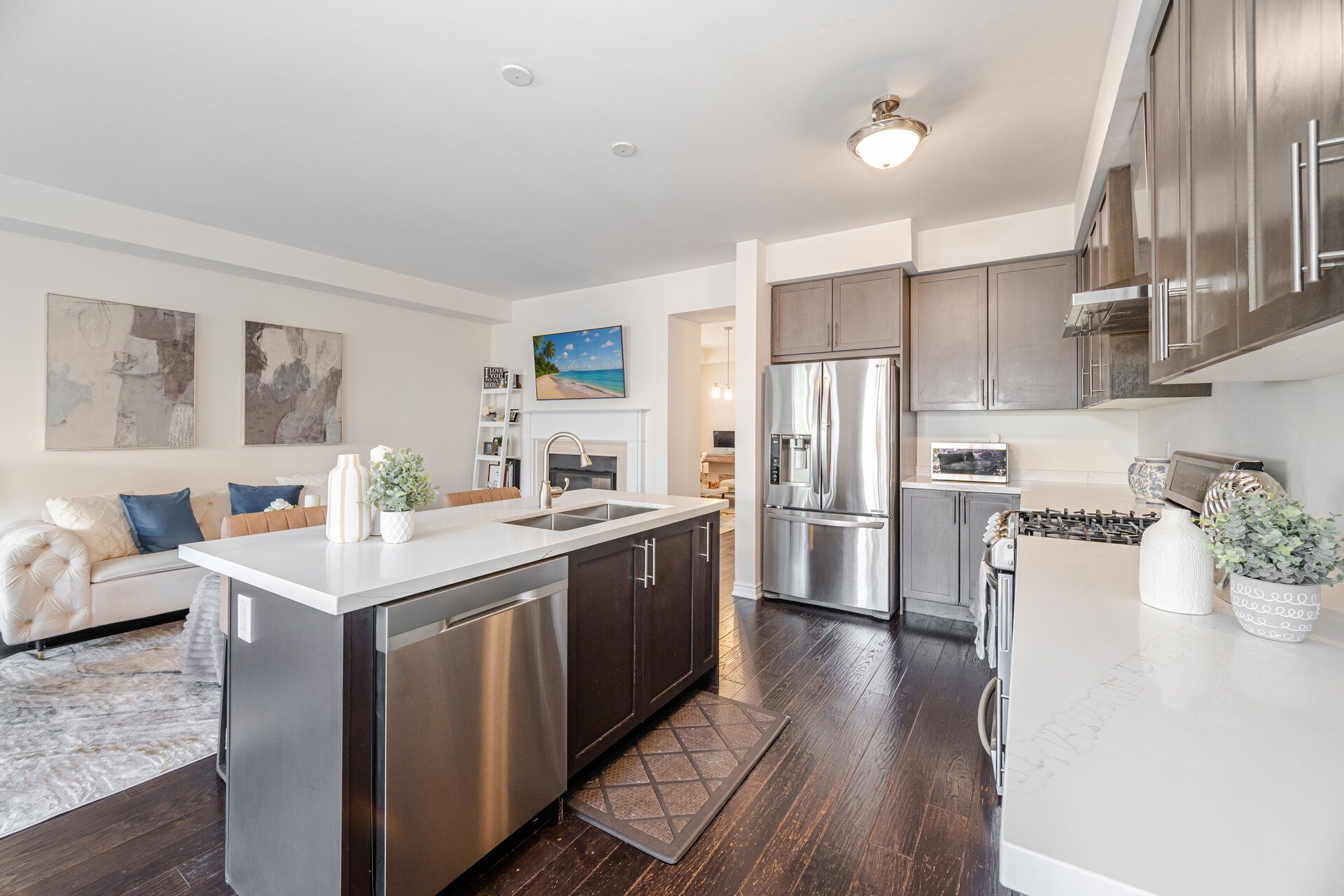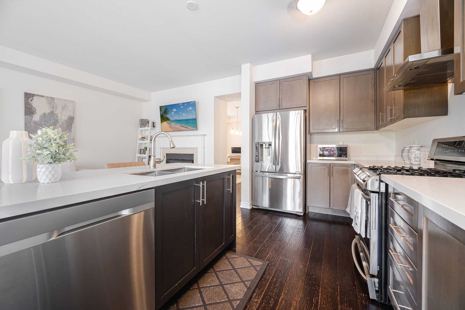 • Upgraded kitchen with maple cabinets and new quartz countertops.