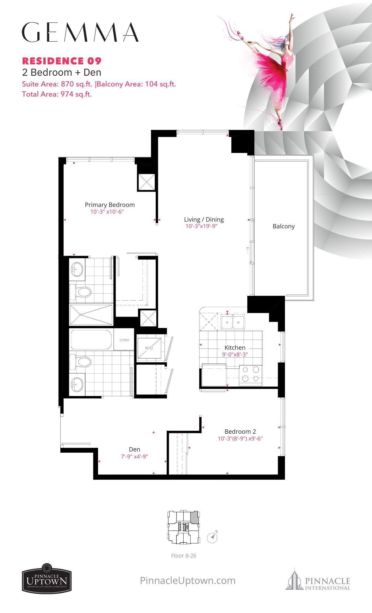 • Brand new spacious 2-bedroom corner suite with a large den.