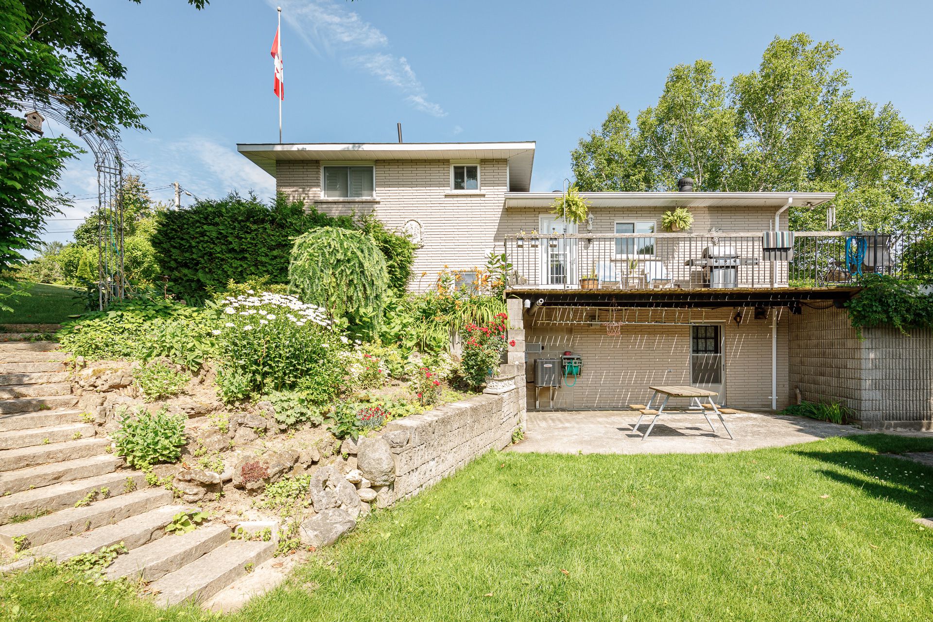 Lovingly built and cherished by the same family for over 50 years, this is the first time this wonderful thornbury home has been offered for sale. Set on a generously sized corner lot in one of thornbury's most desirable neighbourhoods, the property is surrounded by mature trees, lush gardens, and natural privacy-a true in-town oasis. This four-bedroom family home is ready for its next chapter. The spacious driveway offers parking for the whole family, along with an attached garage for convenience during winter months. Inside, the four-level back split layout provides functional and flexible living spaces for every stage of family life. The main level features inside access to the garage and a large, inviting family room with expansive windows-perfect for a rec room, kids' hangout, or cozy movie nights. Upstairs, the second level includes a generous bedroom, a modern 3-piece bath with glass shower, laundry room, and plenty of storage space. The third level opens up to a bright and welcoming living room with a beautiful bay window overlooking the treetops, creating a warm, elevated atmosphere. Step out to the spacious outdoor terrace above the garage-ideal for morning coffee or evening entertaining. An updated kitchen with timeless white cabinetry, ample storage, and an eat-in dining area completes this level. On the top floor, you'll find three excellent-sized bedrooms and a generous 4 pc bath. Each room enjoys generous natural light and views of the surrounding greenery. Outside, the property shines with mature landscaping, vibrant gardens, and a charming garden shed for tools and toys. Located in a highly sought-after neighbourhood, you're just steps from downtown shops and restaurants, georgian bay, parks, schools, and trails. A rare opportunity to own a beloved family home in the heart of thornbury - ready for new memories to be made.