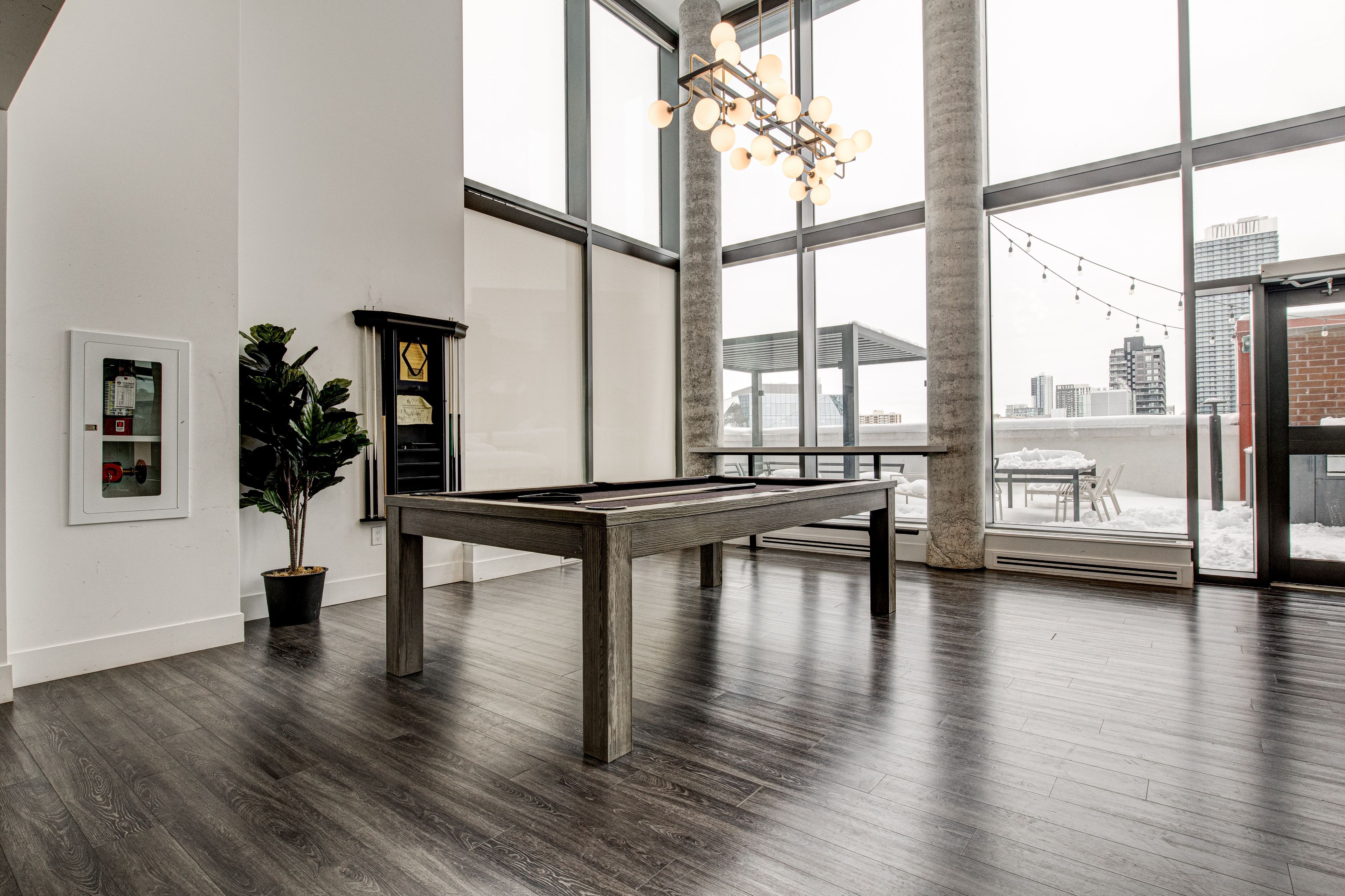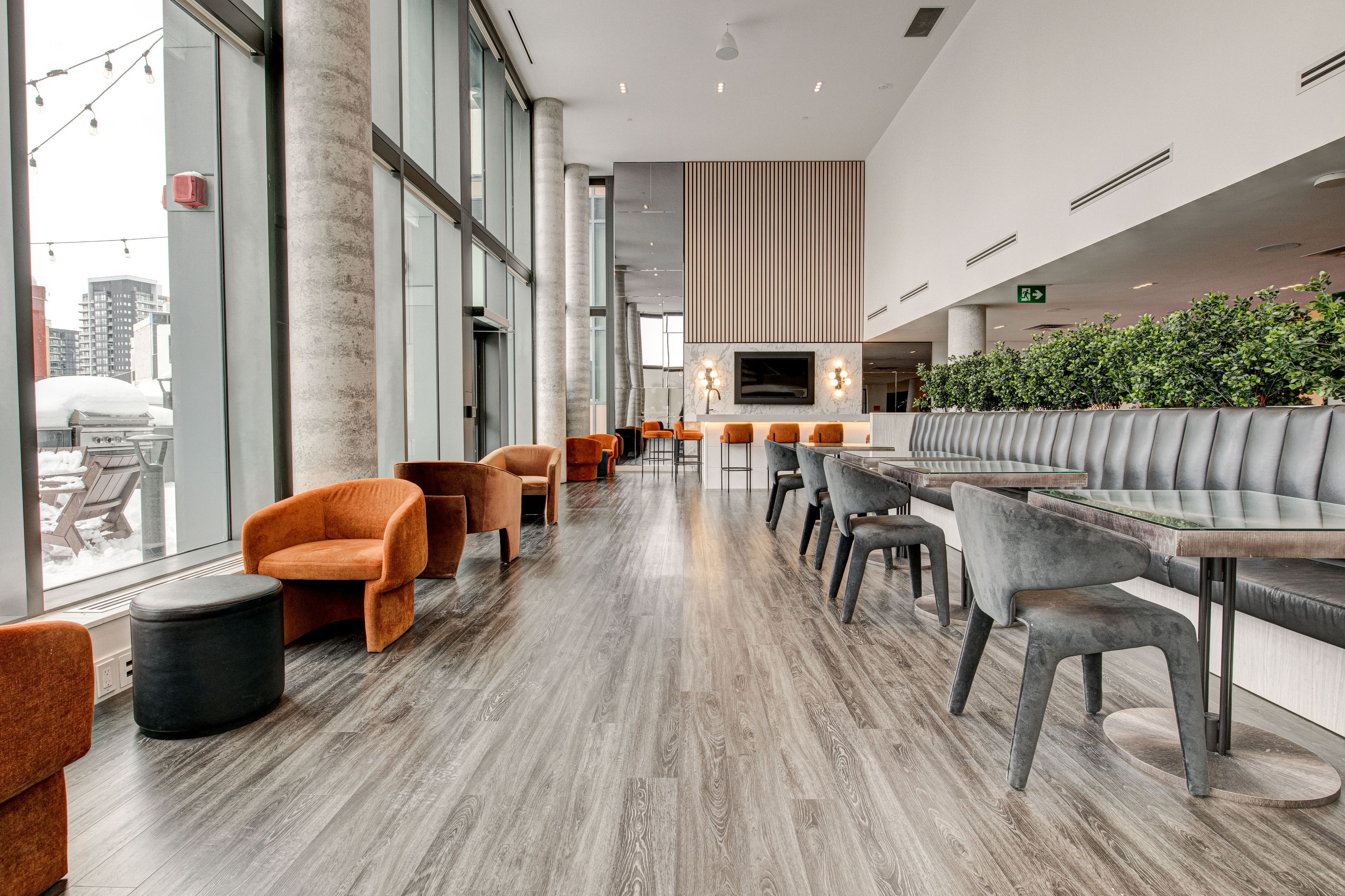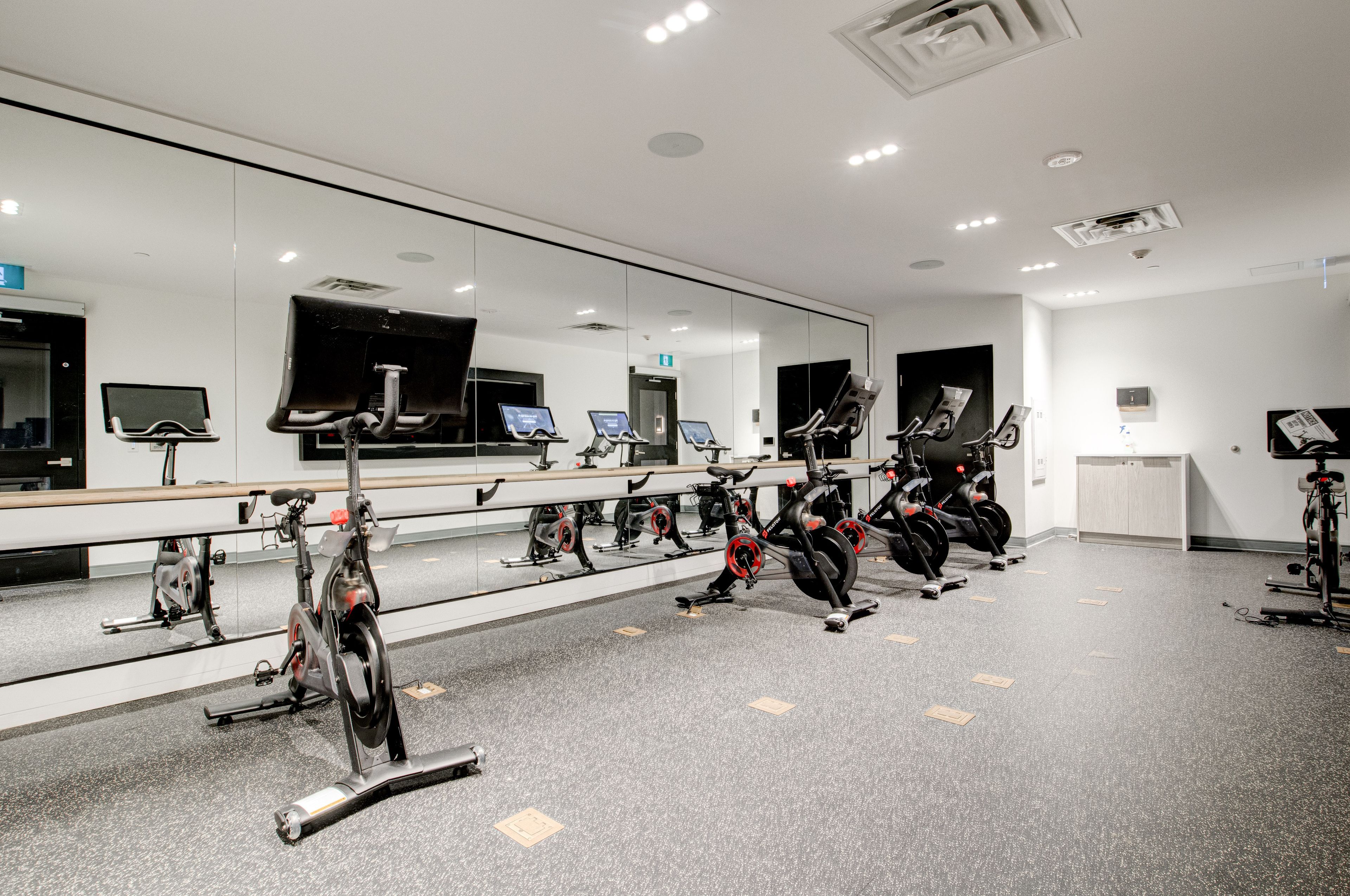 • Building features a fully equipped gym and yoga/Pilates spaces.