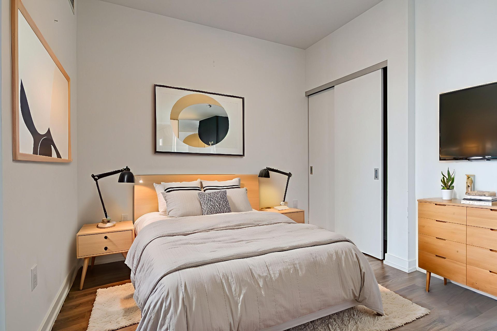 • Modern 1-bedroom unit with about 595 square feet of well-designed space.